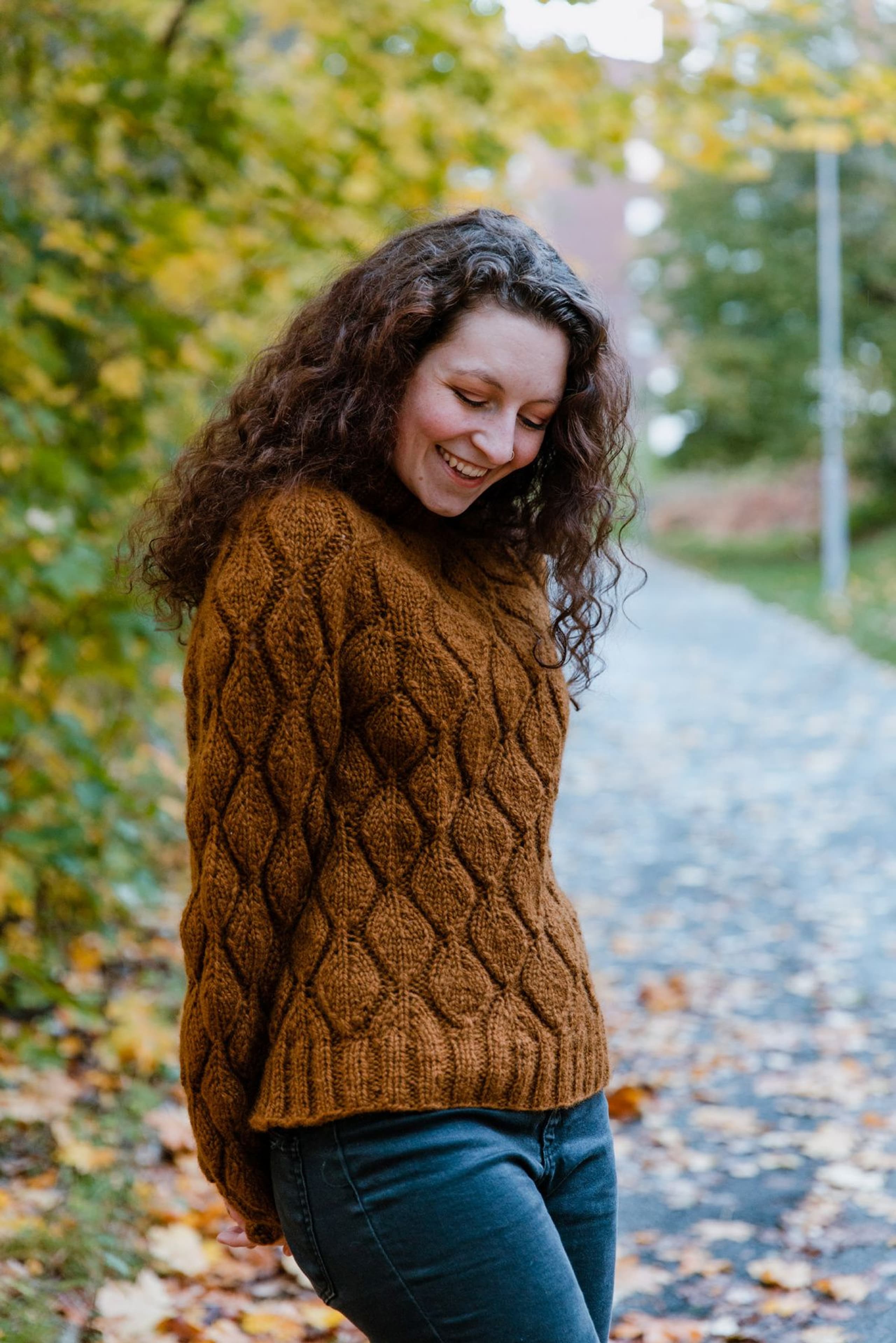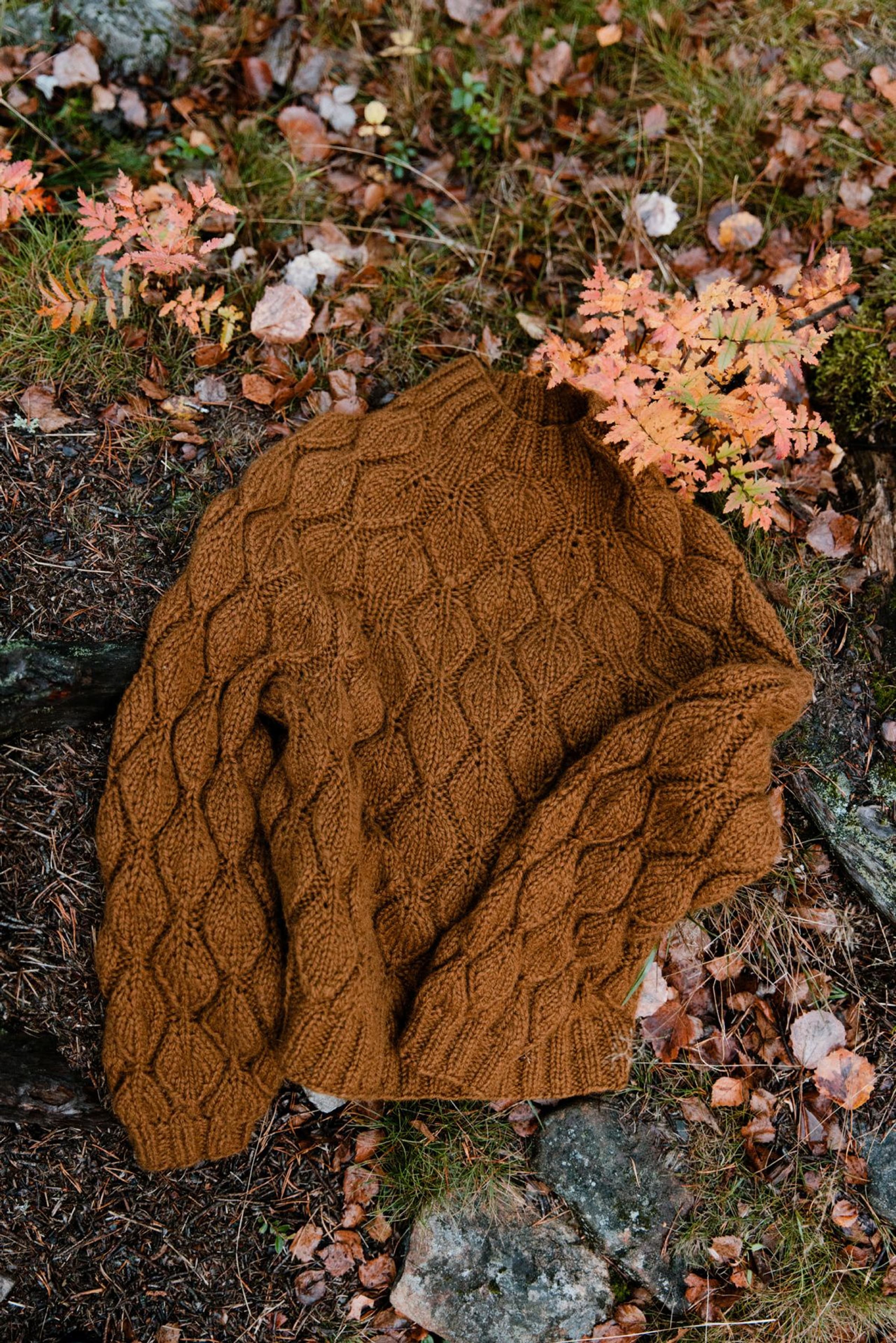 Genseren strikkes ovenfra og ned, med rundt bærestykke. Det strikkes strukturmønster over hele genseren og mønsteret smyger seg sømløst fra bærestykket og ned rundt bolen og ermene. Obs: Sjekk brystvidden på oppskriften før du velger størrelse. Beregn en bevegelsesvidde på ca 8-13 cm. Det er stort sprik mellom noen av størrelsene pga mønsterrapportene. Tips: Om du ønsker en størrelse midt mellom, strikk størrelsen som er litt for stor, men bruk strikkefasthet 15 m istedenfor 14 m pr 10 cm. **Kjøp magasinet uten garn her:** [Fremstrikk](https://www.raumagarn.no/produkt/tilbehor/fremstrikk)