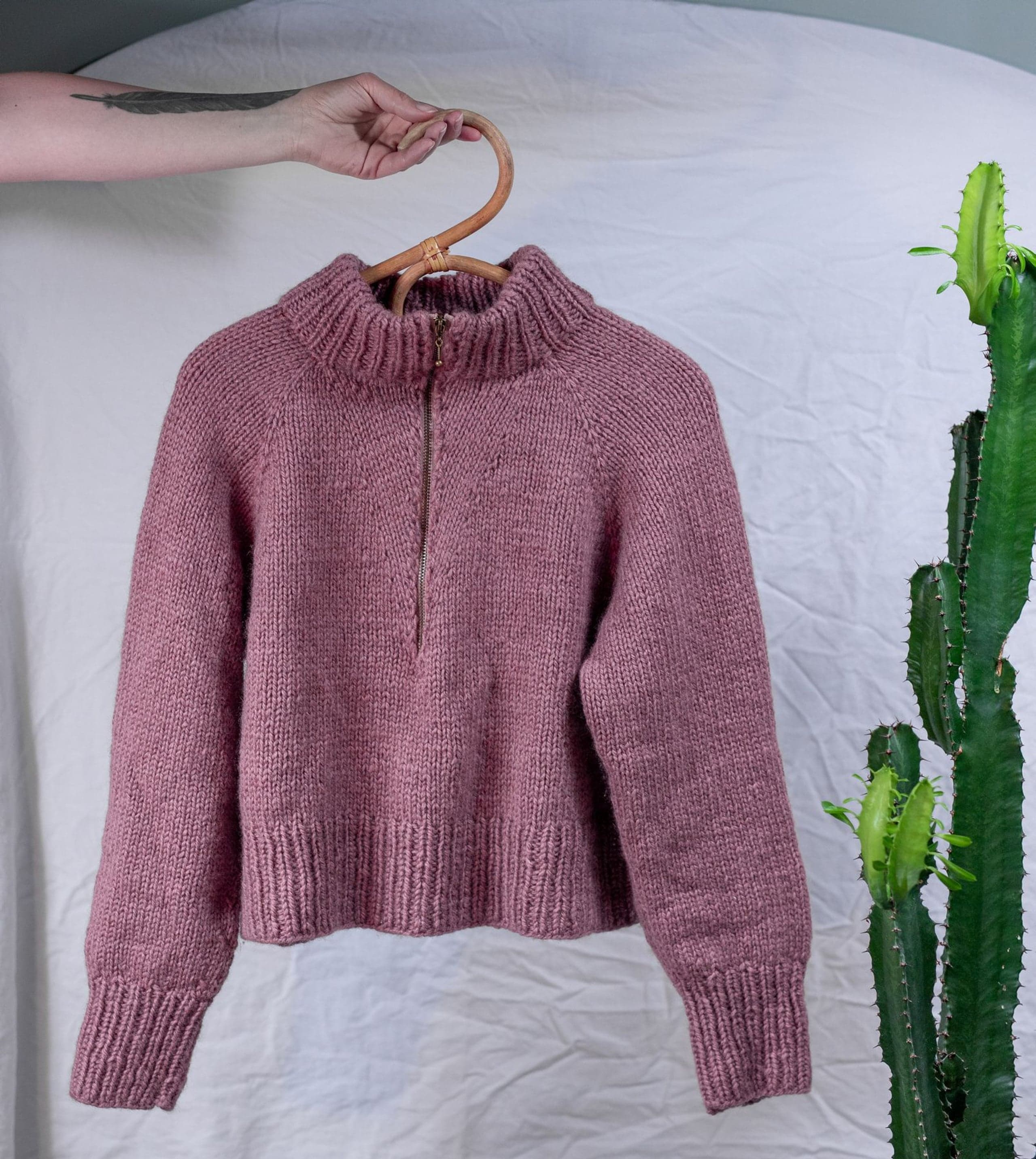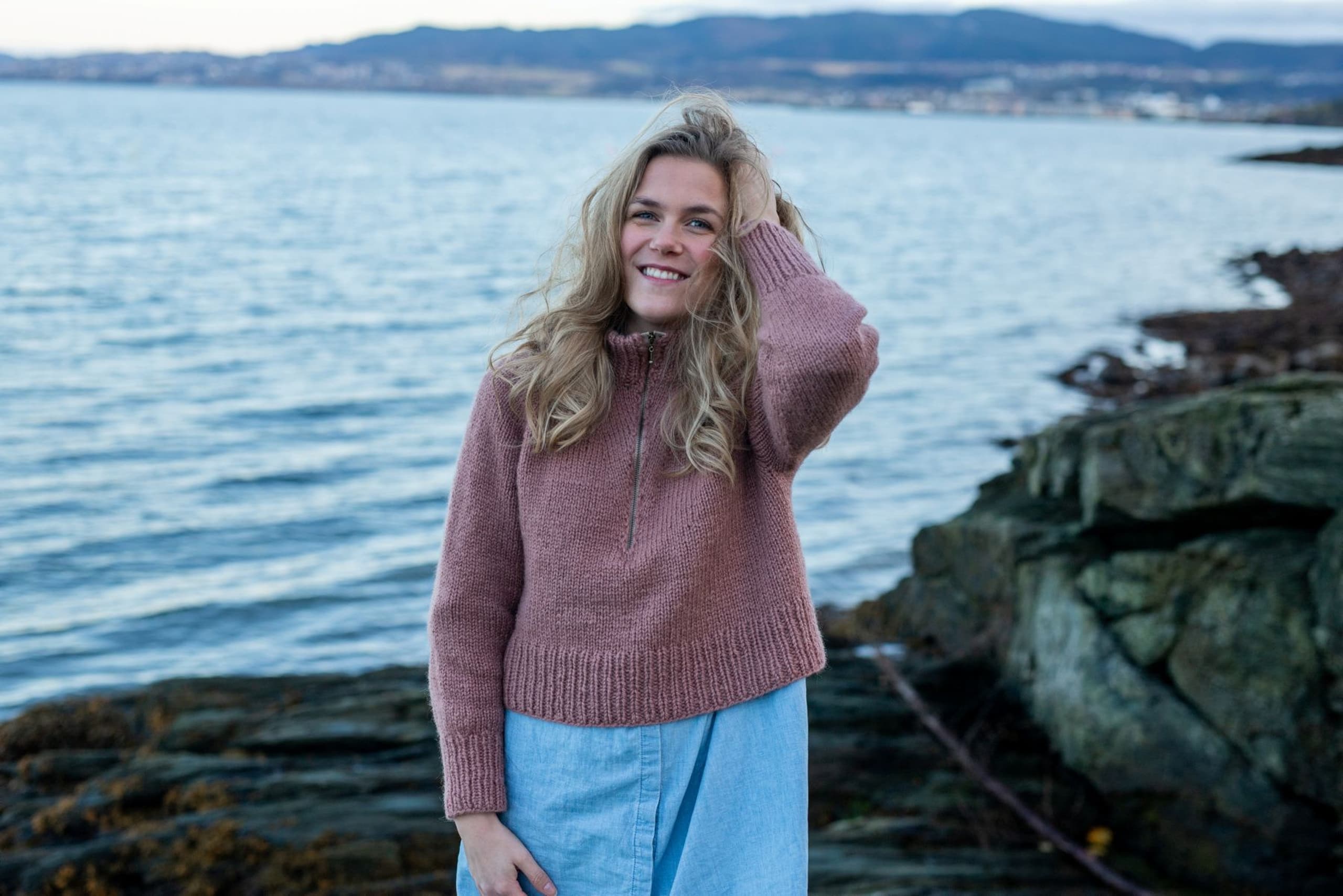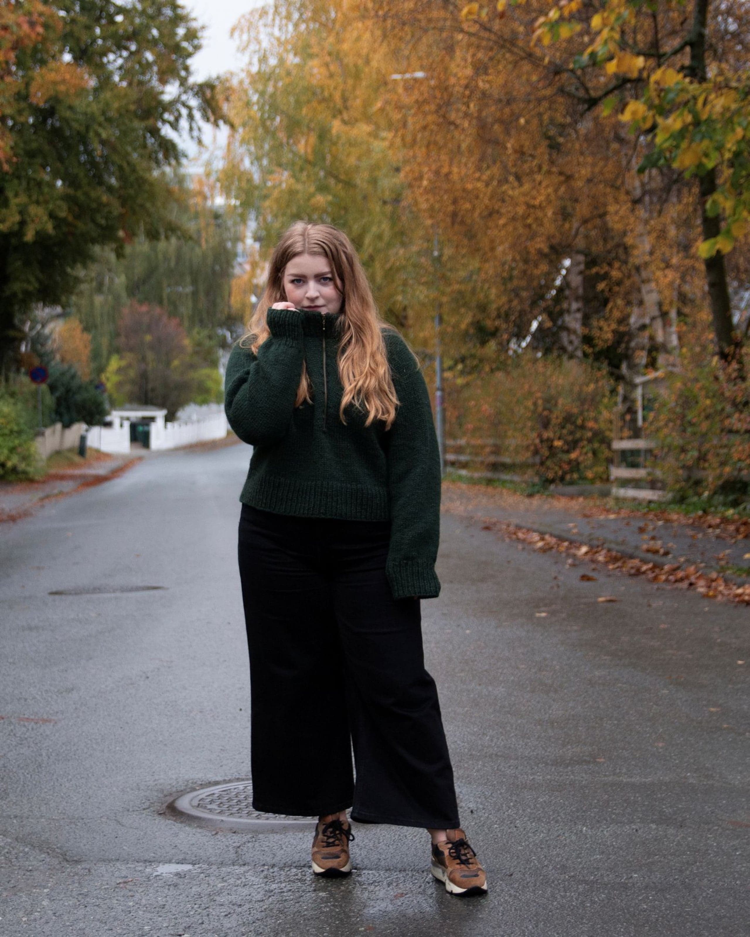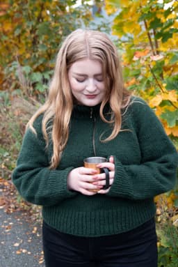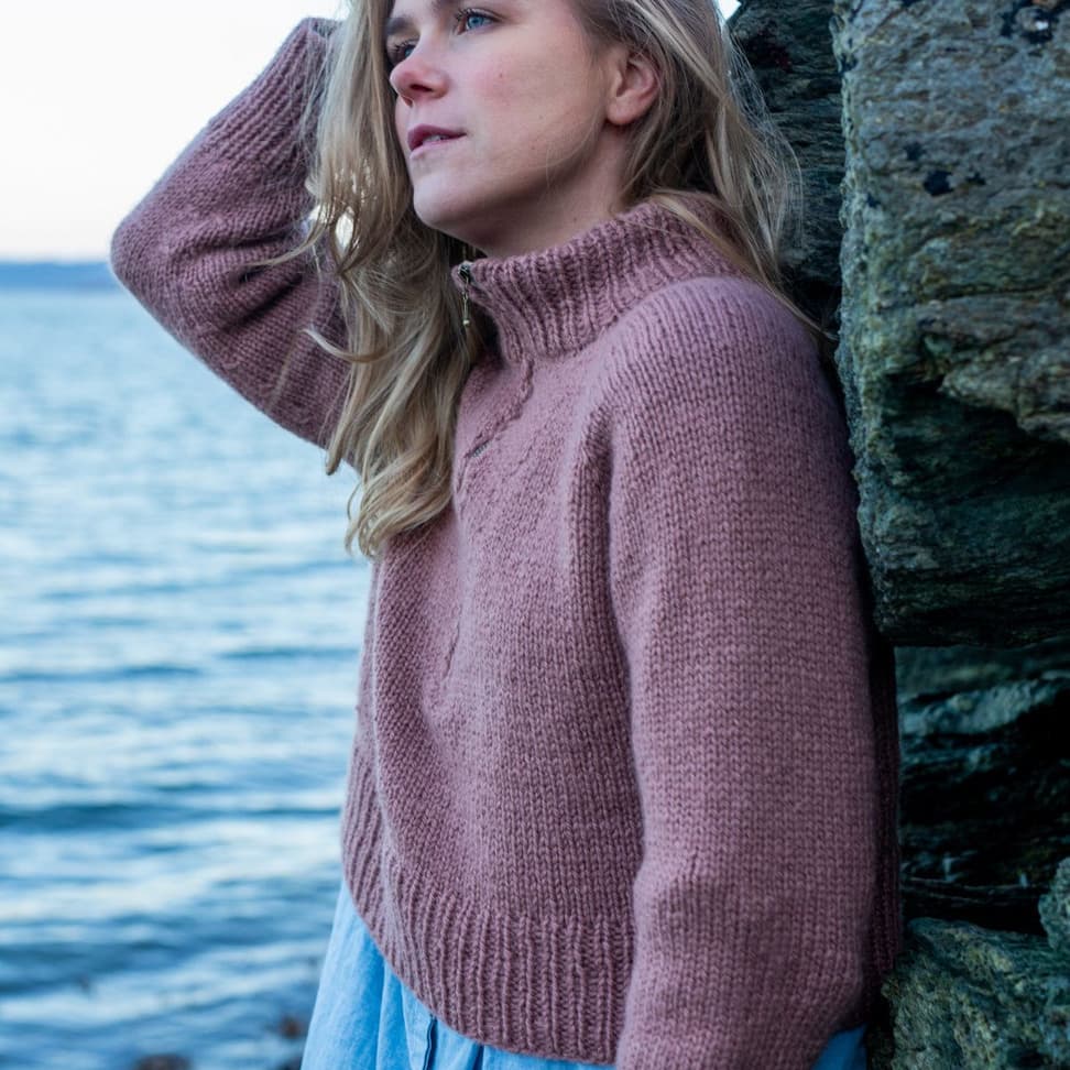 Frostluftgenseren er en deilig høstgenser med høy tjukk hals og glidelås. Genseren strikkes ovenfra og ned med vendepinner i utringningen og med raglanøkninger. Glidelåsen sys i for hånd, og ut over det er det ingen annen montering. Frostluftgenseren er kort og litt oversized med en bevegelsesvidde på rundt 16 cm. Siden den er strikket ovenfra, kan du prøve genseren på underveis og tilpasse den til egne mål og preferanser. **Kjøp magasinet uten garn her:** [Fremstrikk](https://www.raumagarn.no/produkt/tilbehor/fremstrikk)