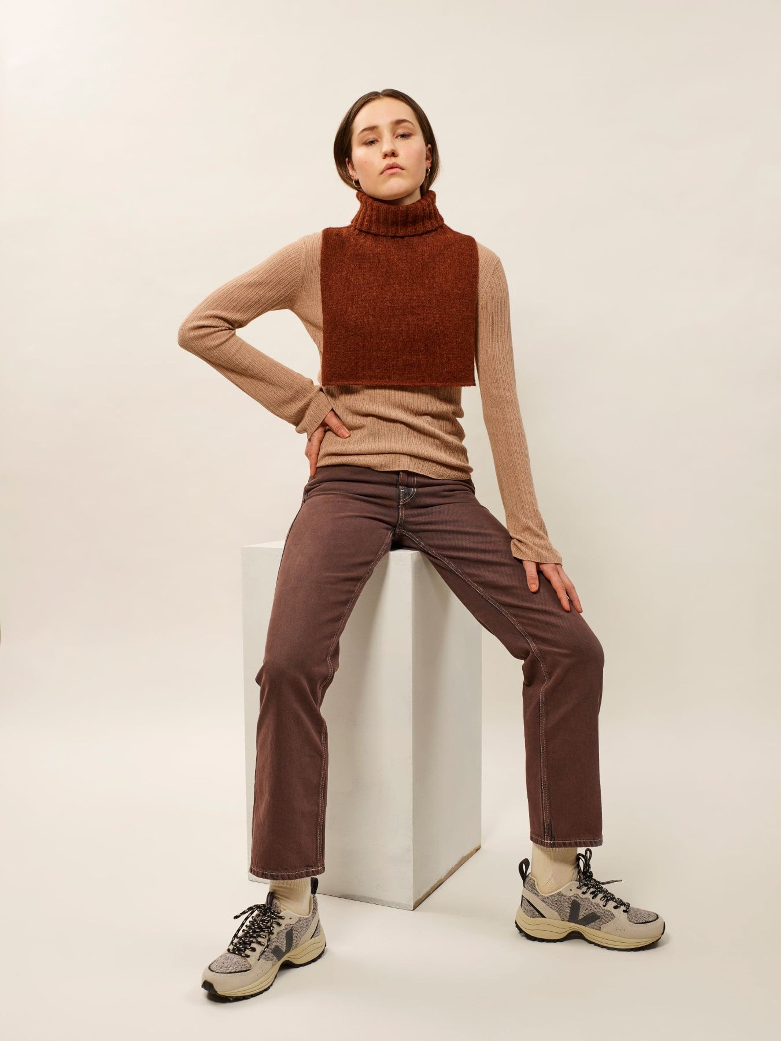 Puno Petit er utgående. Viola hals strikkes ovenfra og ned. Først strikkes halsen i ribbestrikk og deretter strikkes for- og bakstykket i glattstrikk. Bakstykket er litt lengre enn forstykket. Halsringningen formes med vendepinner og skuldre strikkes skrå ved å øke på hver side av to skulder-m.