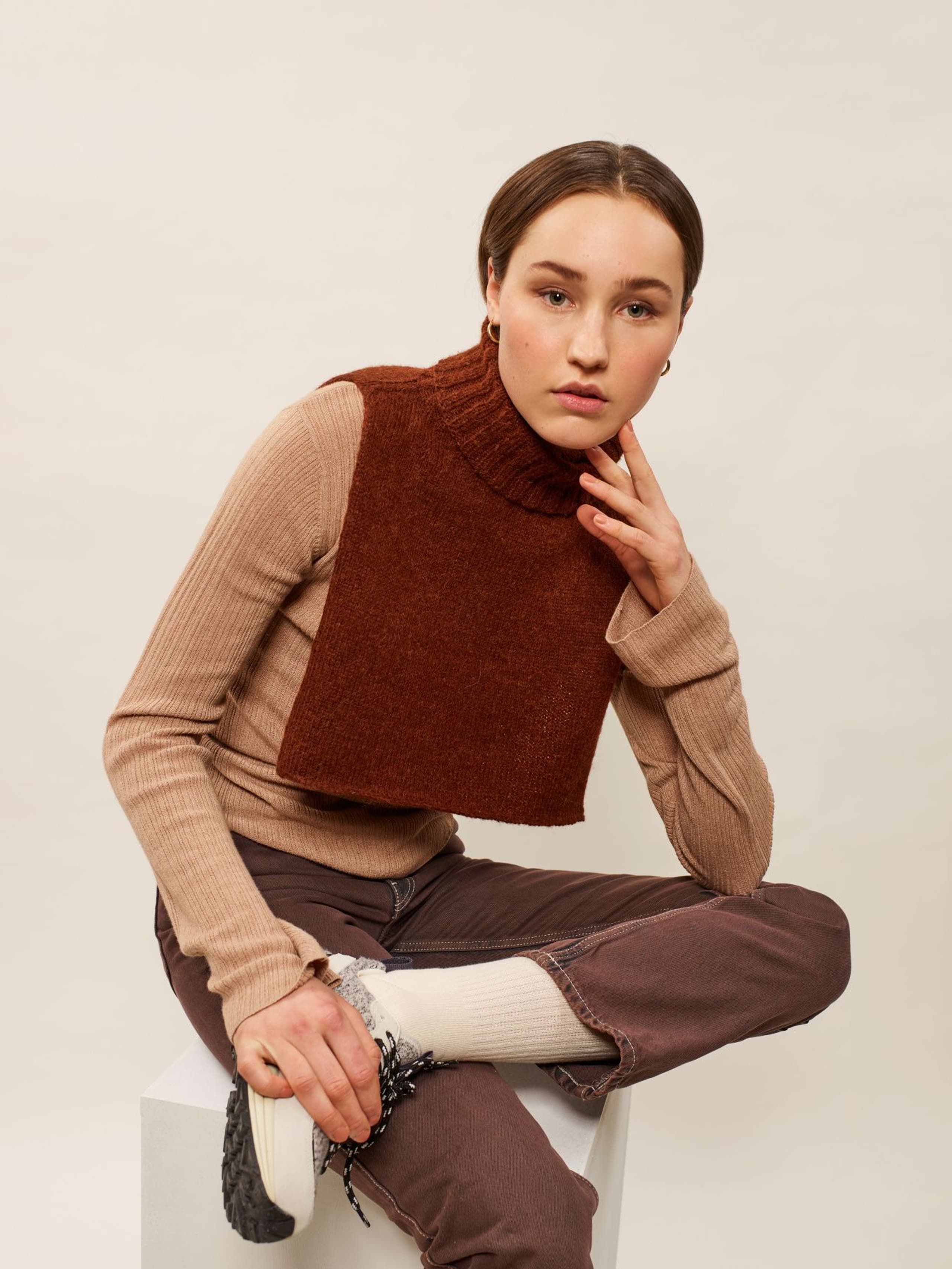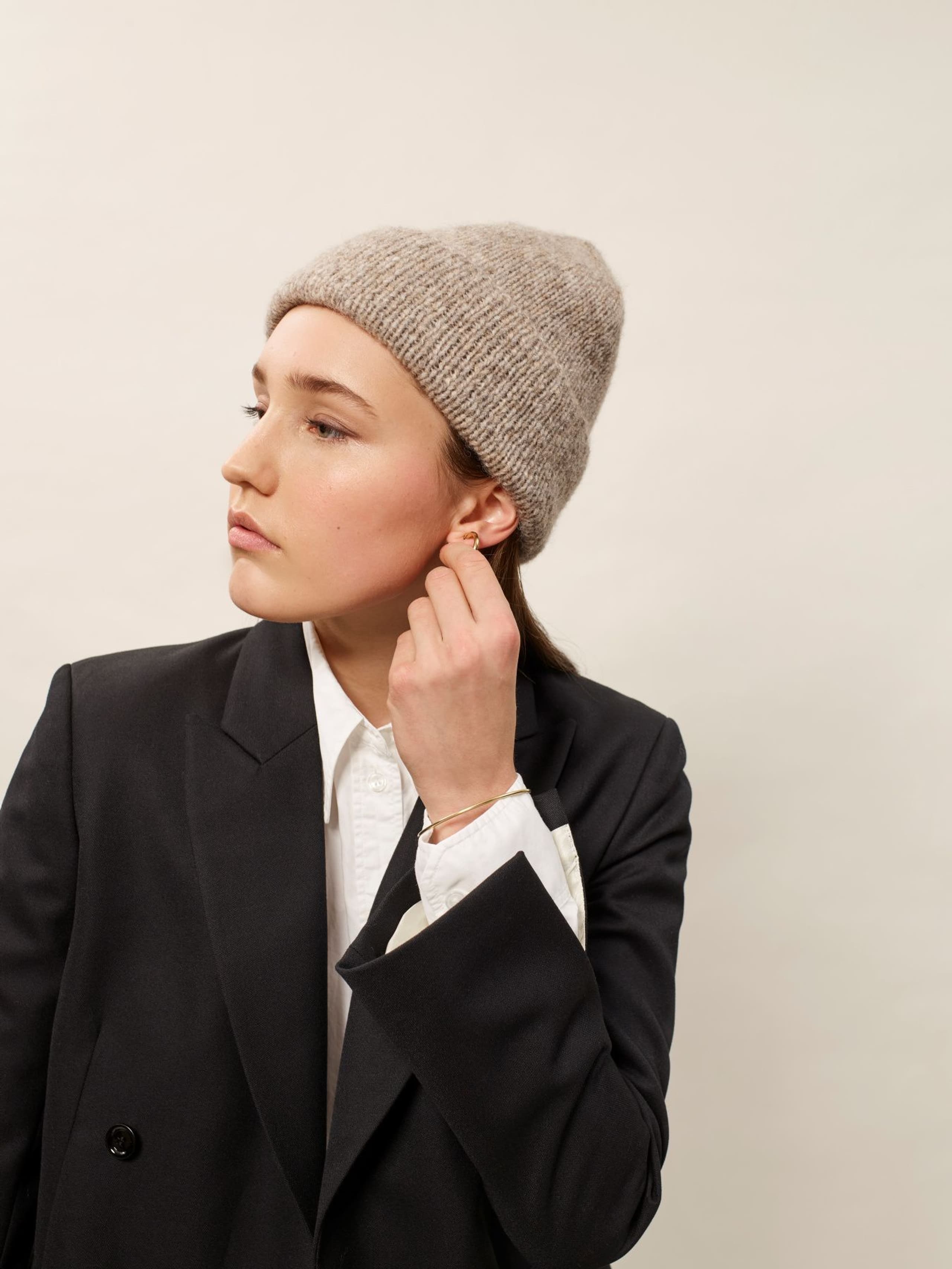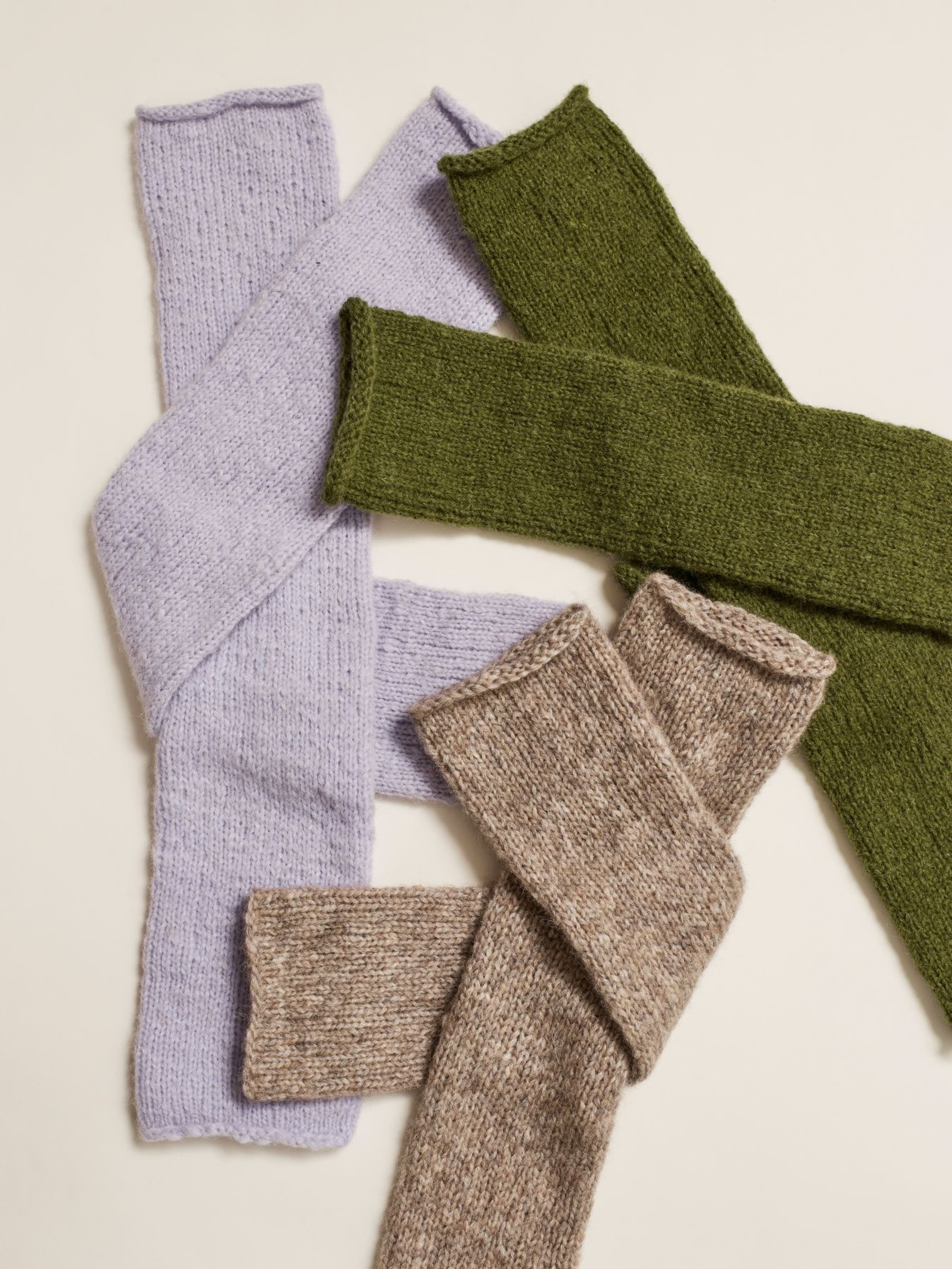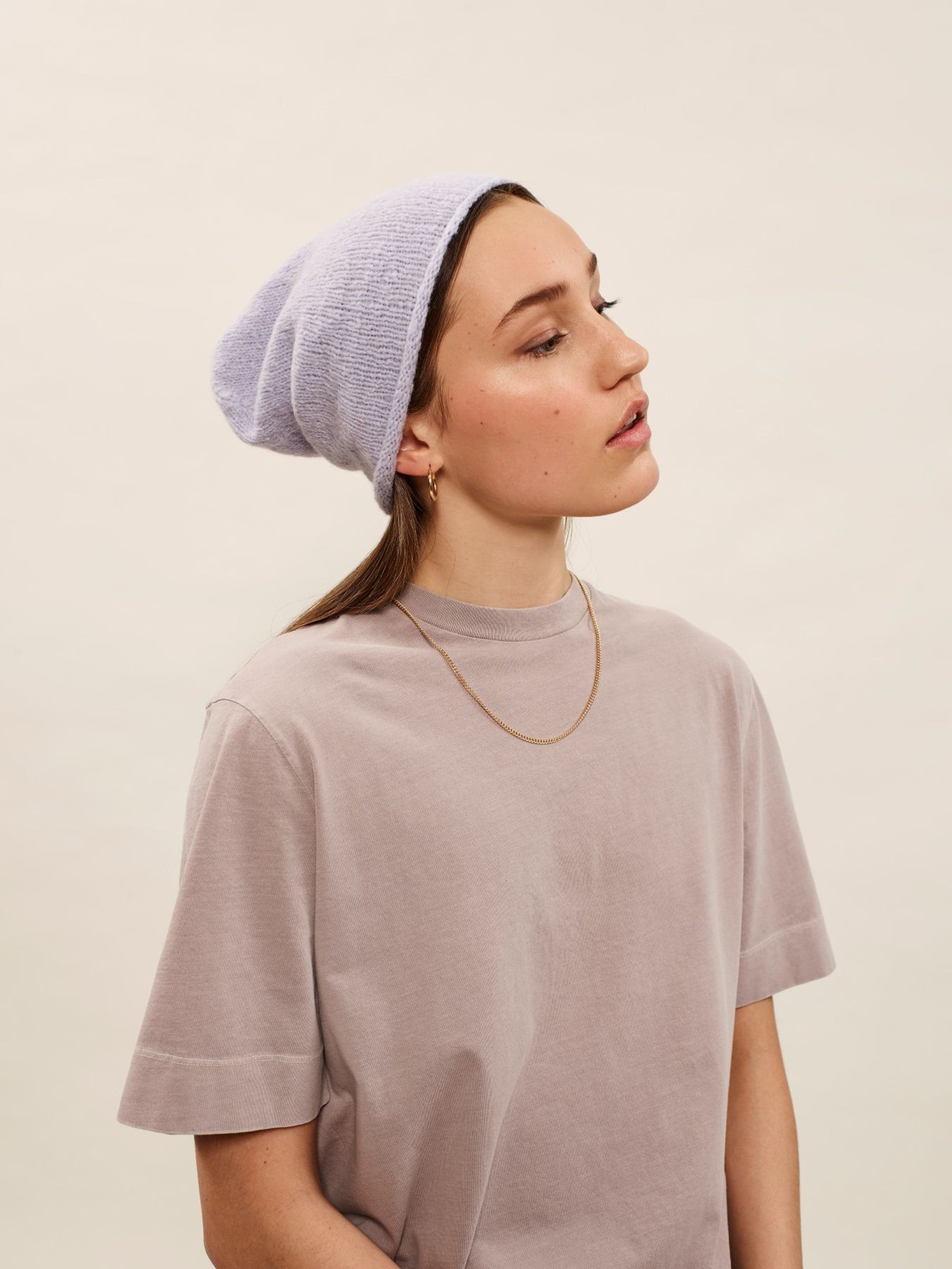 Viola lue og votter er enkle tilbehør i ribbestrikk og glattstrikk. Begge er gode prosjekt for nybegynneren. Viola ribbelue strikkes i ribbestrikk. Den har en bred dobbel oppbrett og en firedelt felling på toppen. Viola votter strikkes i glattstrikk. De har kiletommel og ribbestrikket kant. Kiletommelen formes ved å øke ved 2 kile-merker. Toppen på tommel og hånd formes ved å felle i sidene. Oppskriften inneholder ribbelue og votter.