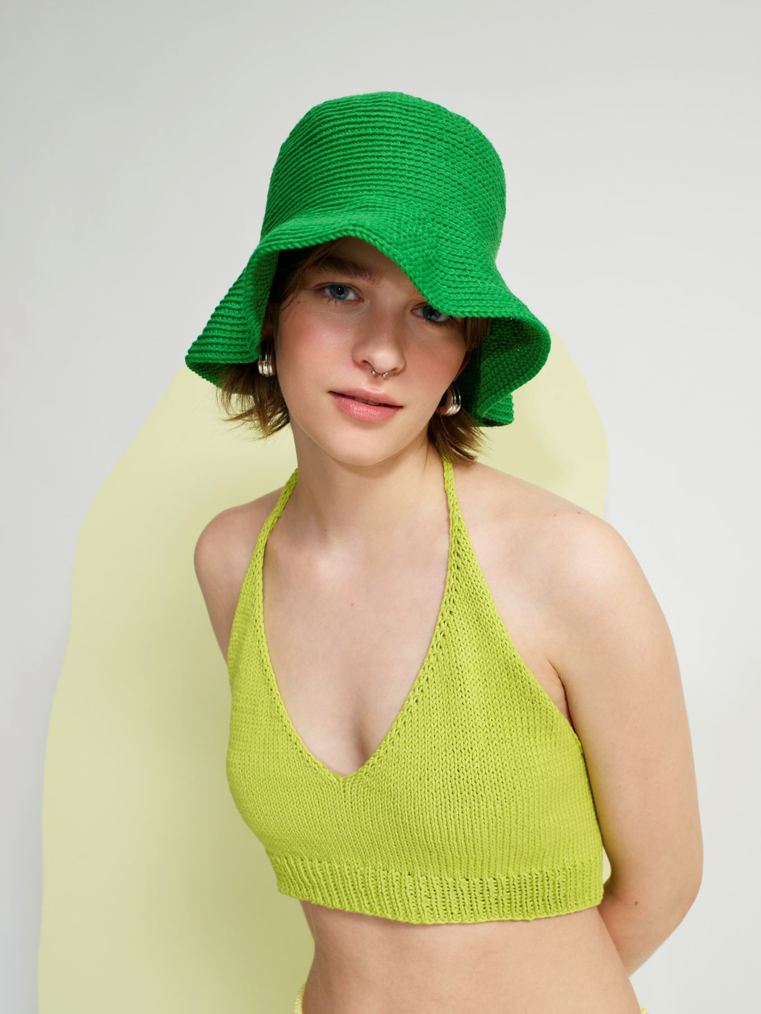 Lind solhatt er en heklet hatt med rund topp og bred, bølgete brem. Hatten hekles ovenfra og ned, fra midt på toppen og ned til bremmen. Hele hatten hekles i fastmasker, rundt i spiral. Vær nøye med å markere starten på omgangen så det blir lettere å orientere seg i arbeidet.
