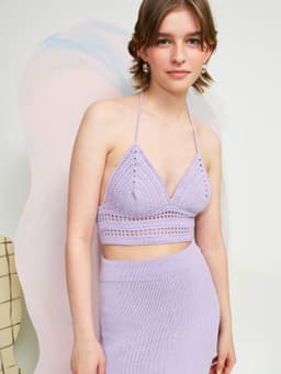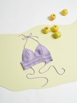 Krokus soltopp er en kort heklet topp med knyting i rygg og nakke. Toppen er tettsittende med ca 10 cm åpning i ryggen. Først hekles de to skålene til brystet fra midten og utover. Deretter legger man opp m til hver side av livet og hekler på samme rad kanten på oversiden av skålene. Videre hekles livet ferdig frem og tilbake under skålene og i de nye m i sidene. Til slutt hekles knytesnorer til rygg og nakke. For å finne riktig størrelse, les tips under.