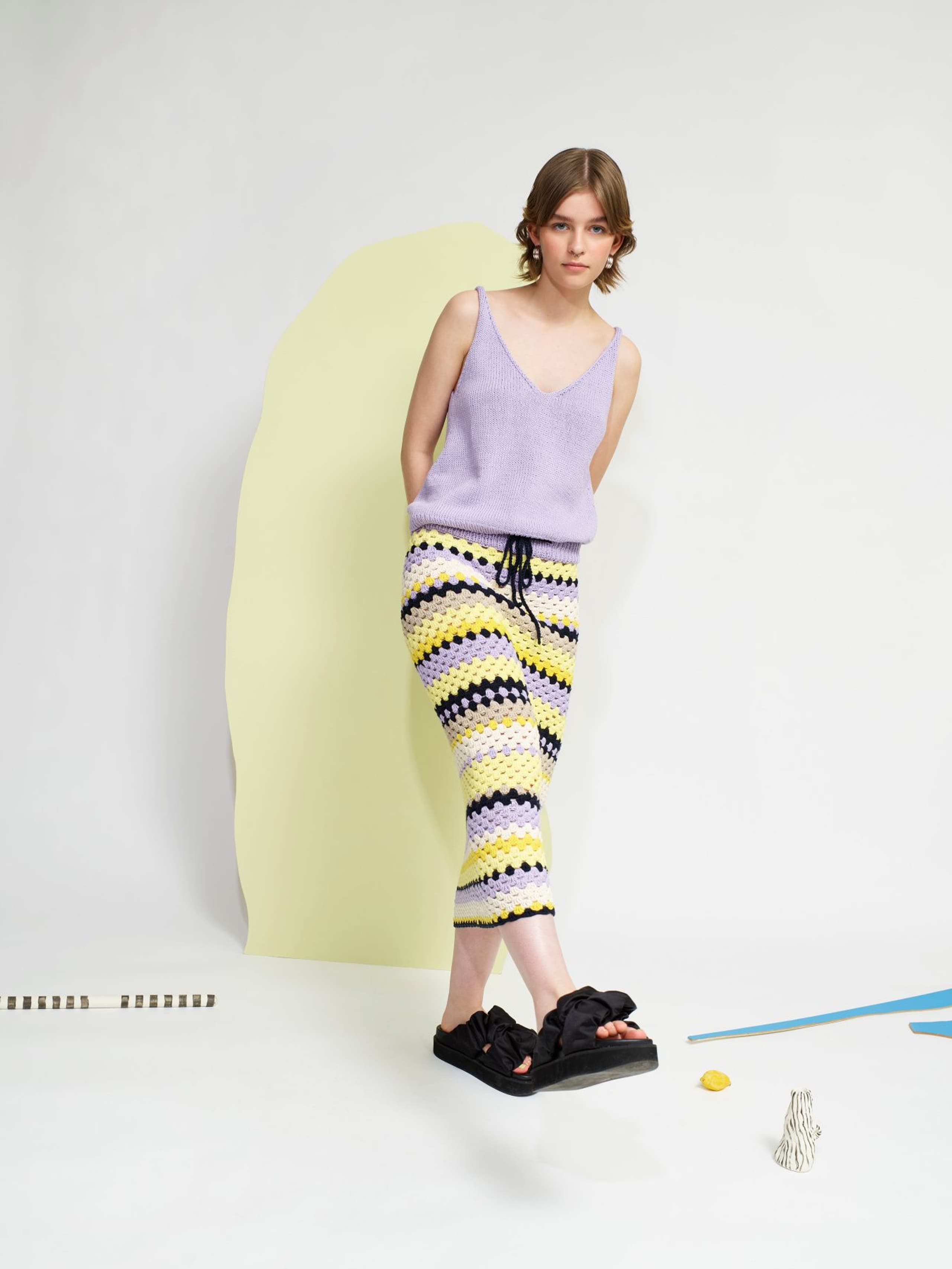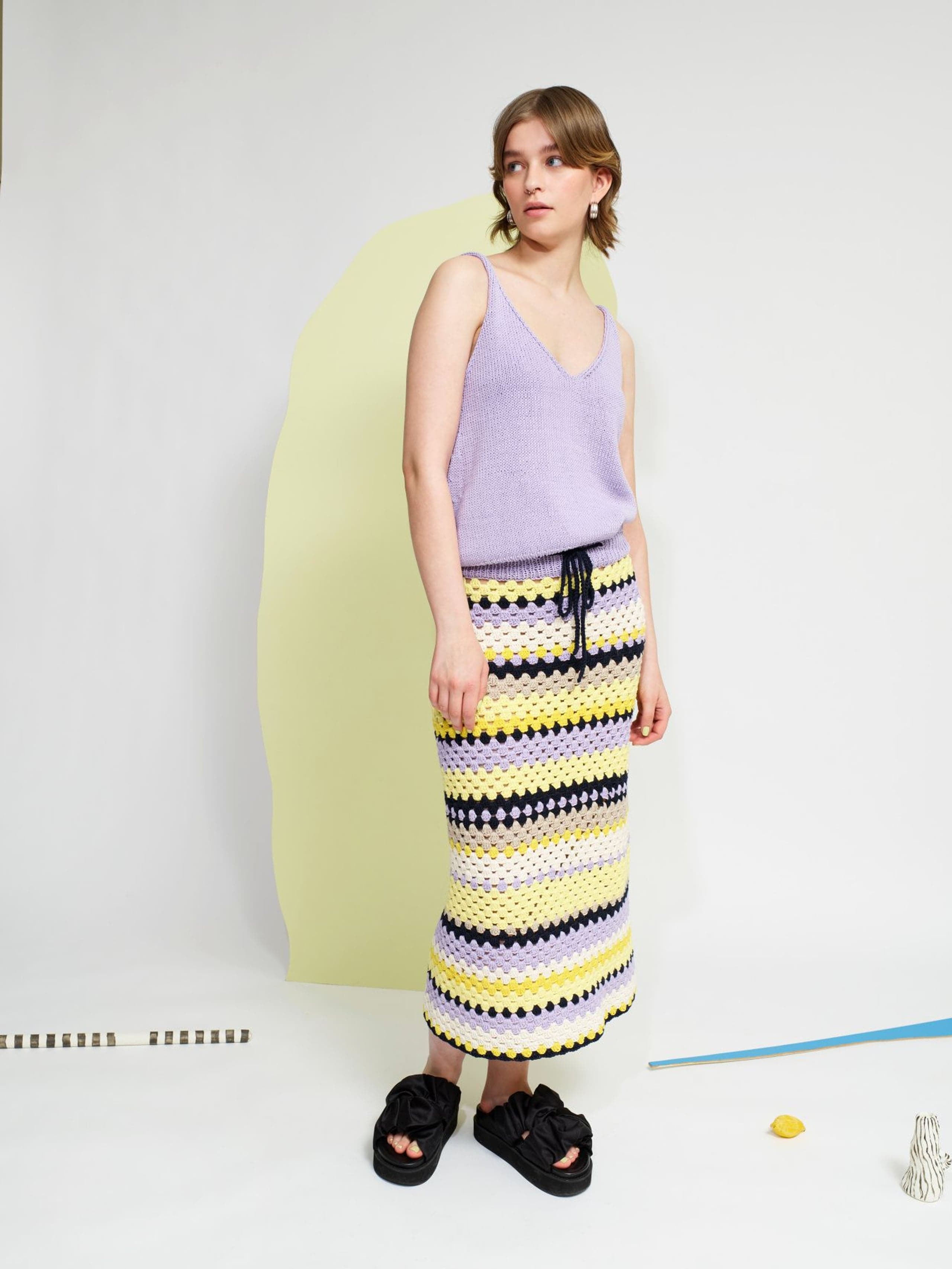Kløver sommersinglet er en glattstrikket singlet med v-utringning både foran og bak. Singleten er tettsittende over bysten, og skråner lett ut under bysten slik at den sitter noe løsere rundt livet og hoftene. Den strikkes nedenfra og opp. Først strikkes bolen rundt og det felles i sidene. Deretter deles arbeidet i fire like deler som formes til utringning og ermehull. Til slutt sys skulderstroppene sammen med maskesting. Velg en størrelse som har en brystvidde som er like stor eller noen cm mindre enn brystvidden din.