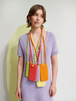 Lind mobilveske er en liten heklet veske med hempe og knapp til lukking. Vesken hekles fra bunnen til toppen rundt med fastmasker. Hanken hekles med dobbel tråd. Vesken finnes i 3 størrelser. Mål på din telefon for å finne rett størrelse.