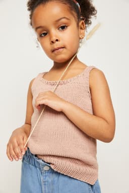 Noor singlet har rund hals, er tettsittende og strikkes nedenfra og opp. For å få en tettsittende fasong, velg en størrelse som har en brystvidde som er like stor eller noen cm mindre enn barnets kropp.