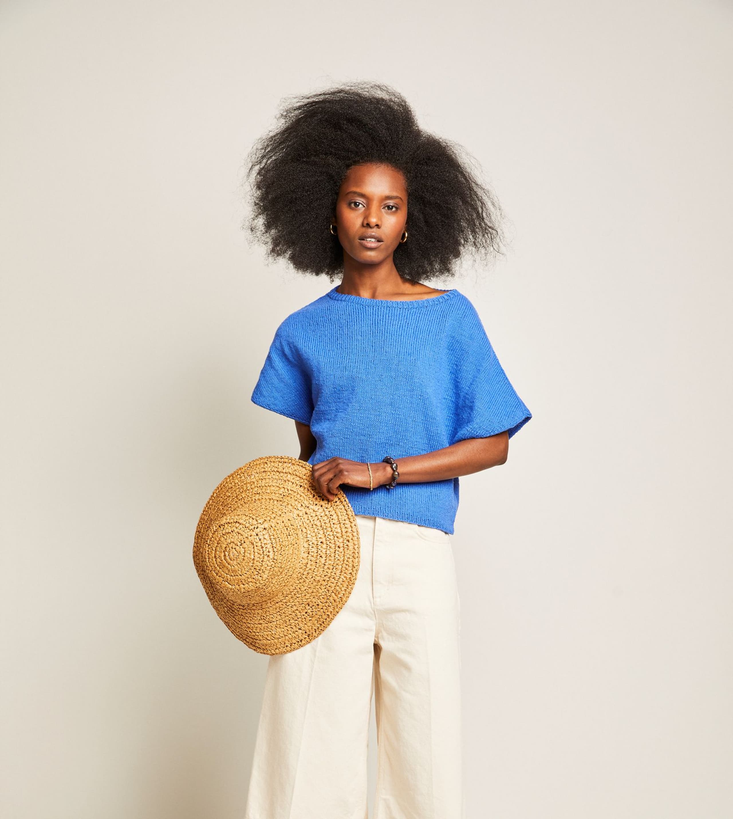Claudinetoppen er en sommerlig glattstrikket topp med romslig flaggermusfasong. Den har brede skuldre og vid ribbestrikket halsåpning. Claudinetoppen strikkes ovenfra og ned. Skuldrene formes ved å øke på hver side av en skulder-m. Bolen formes under ermehullene ved å felle på hver side av en side-m. Kanten nederst på bolen strikkes i ribbestrikk. For å få en ledig fasong, velg en størrelse som har en brystvidde som er 14-18 cm større enn din egen.