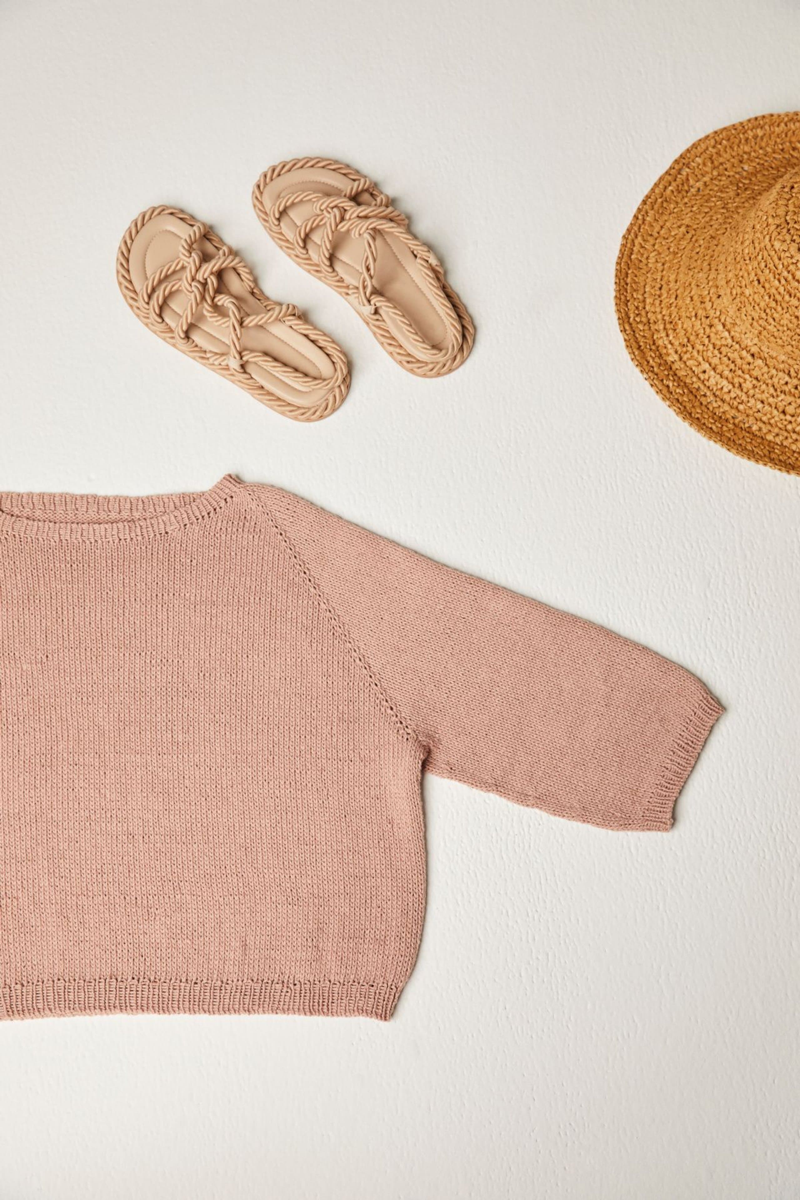 Fevengenseren er en romslig raglangenser med ½-lange ermer. Genseren strikkes ovenfra og ned i glattstrikk og med ribbestrikkede kanter. For å få en romslig fasong, velg en størrelse som har en brystvidde som er 8-16 cm større enn barnets kropp.