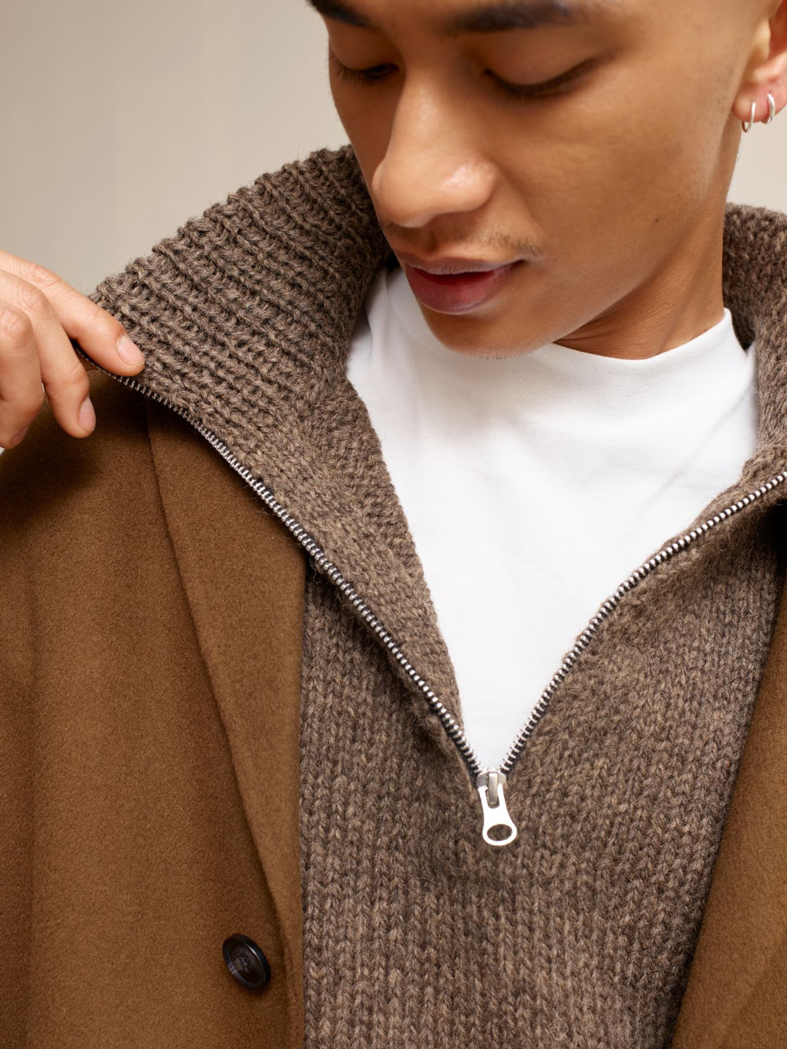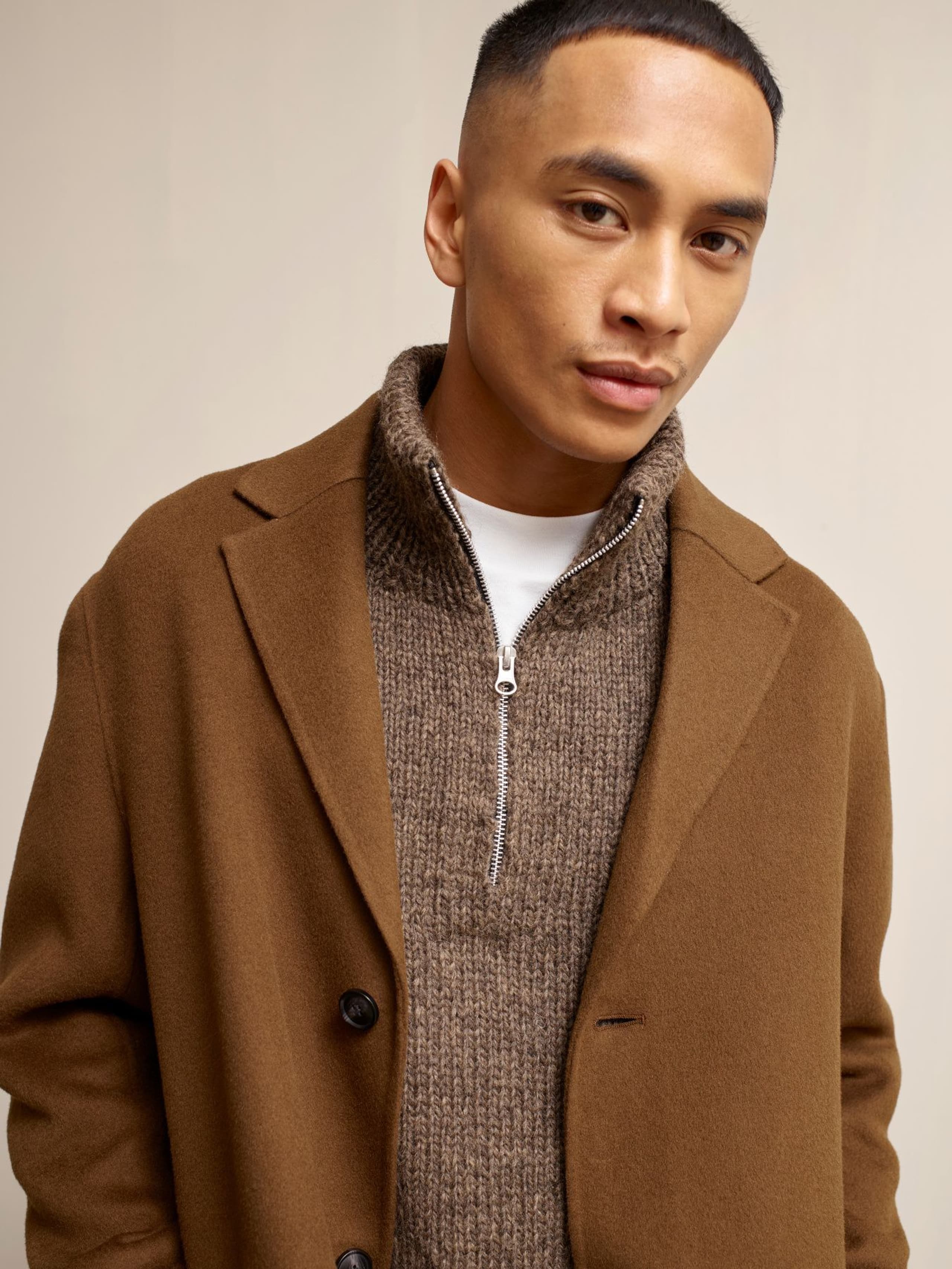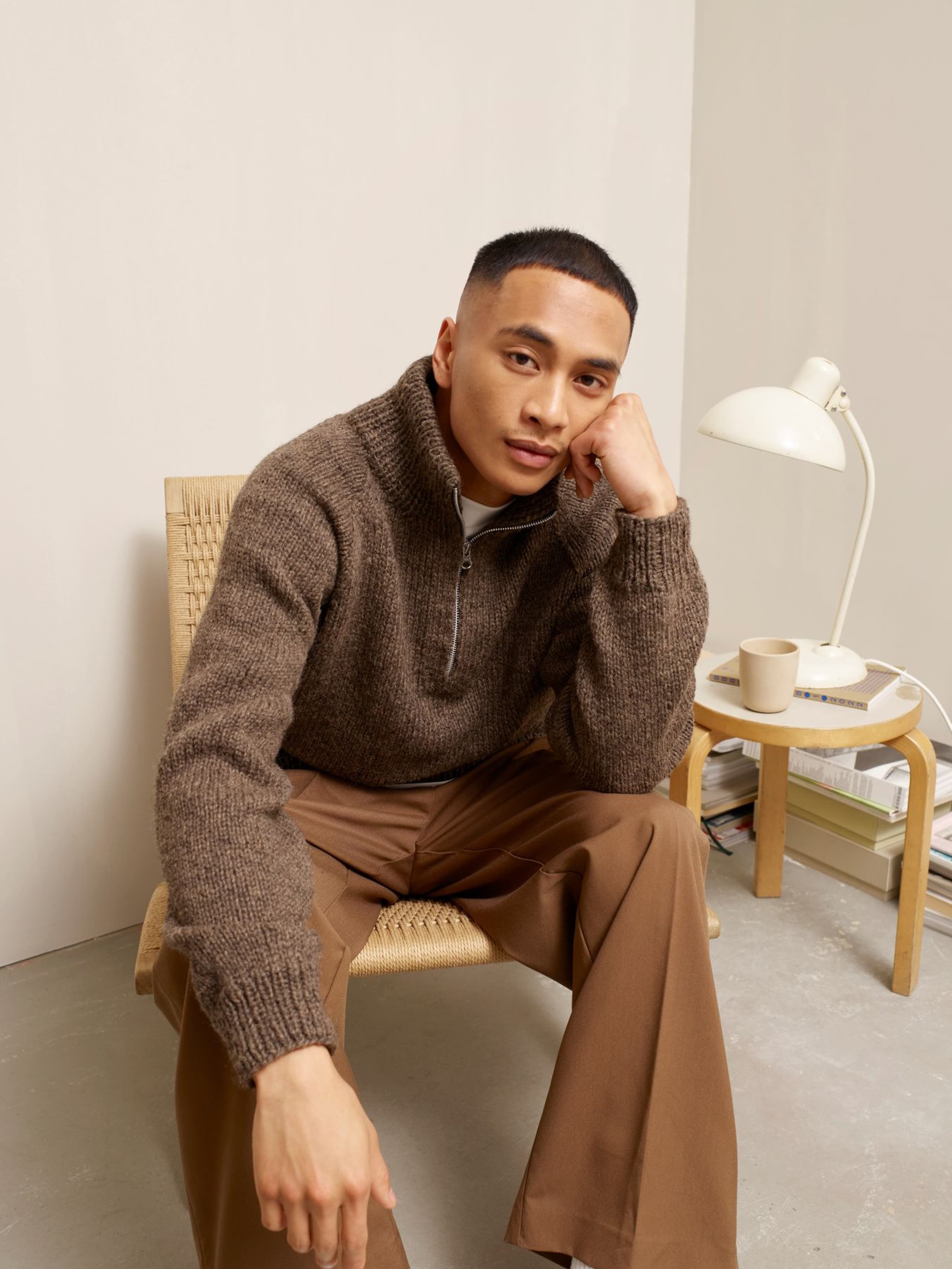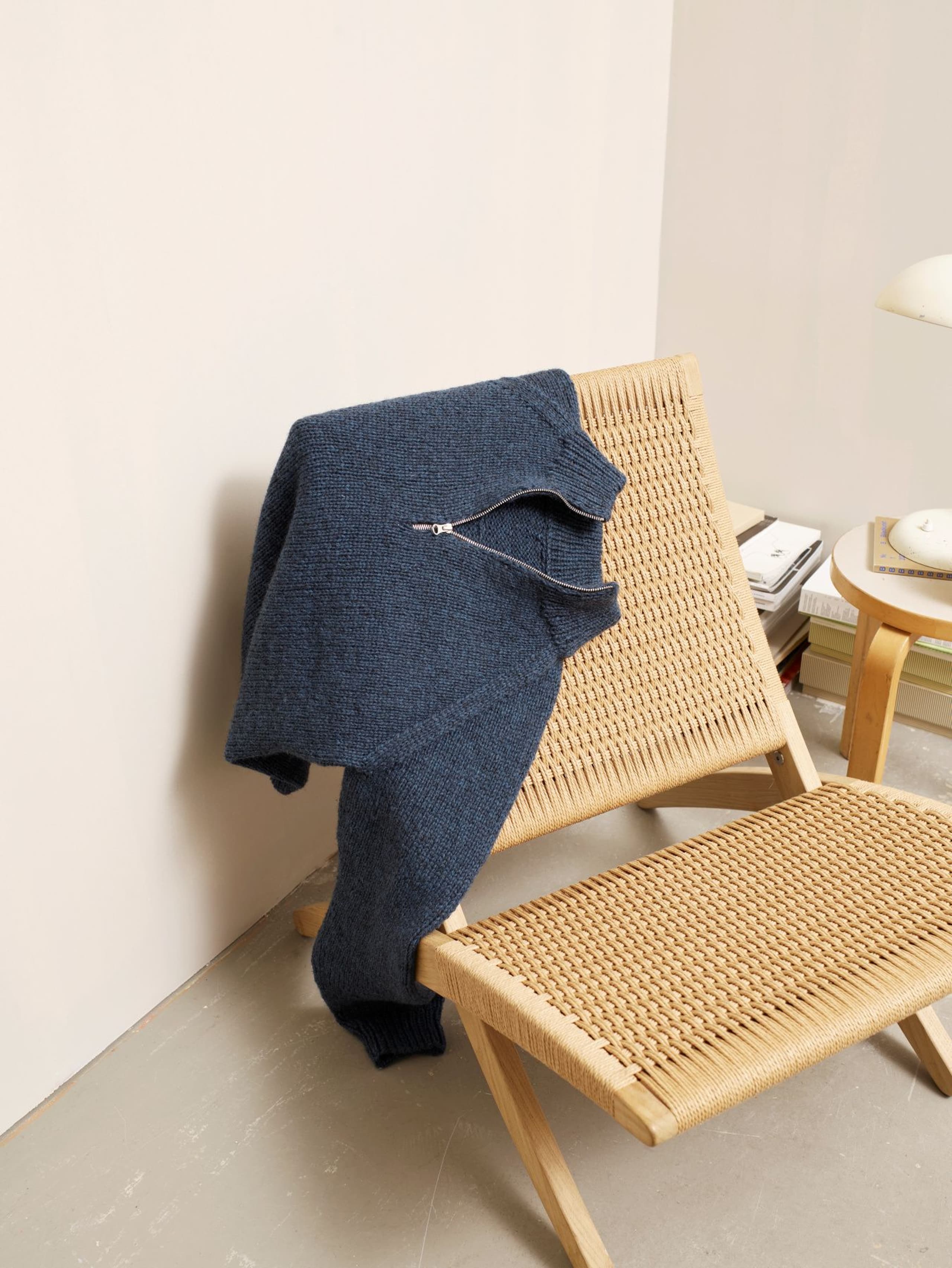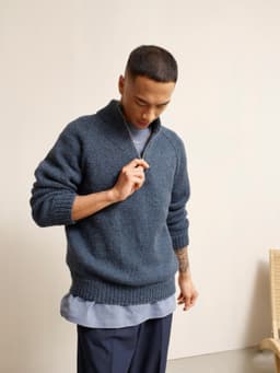 Olle glidelåsgenser er en glattstrikket genser med høy hals og glidelås-åpning foran. Den har en rett og klassisk passform med raglan og ribbestrikkede kanter. Genseren strikkes rundt, nedenfra og opp. Bærestykket strikkes først rundt for så å deles til splitt til glidelås midt foran. Deretter strikkes det videre frem og tilbake. Halsringningen formes ved å strikke vendepinner og halsen strikkes høy og brettes dobbel innover. De ytterste maskene fra halskanten strikkes videre i glattstrikk til belegg til glidelåsen. Glidelåsen monteres for hånd i splitten mellom belegget og forstykket. For å få en klassisk passform, velg en størrelse som har en brystvidde som er 8-14 cm større enn din egen.