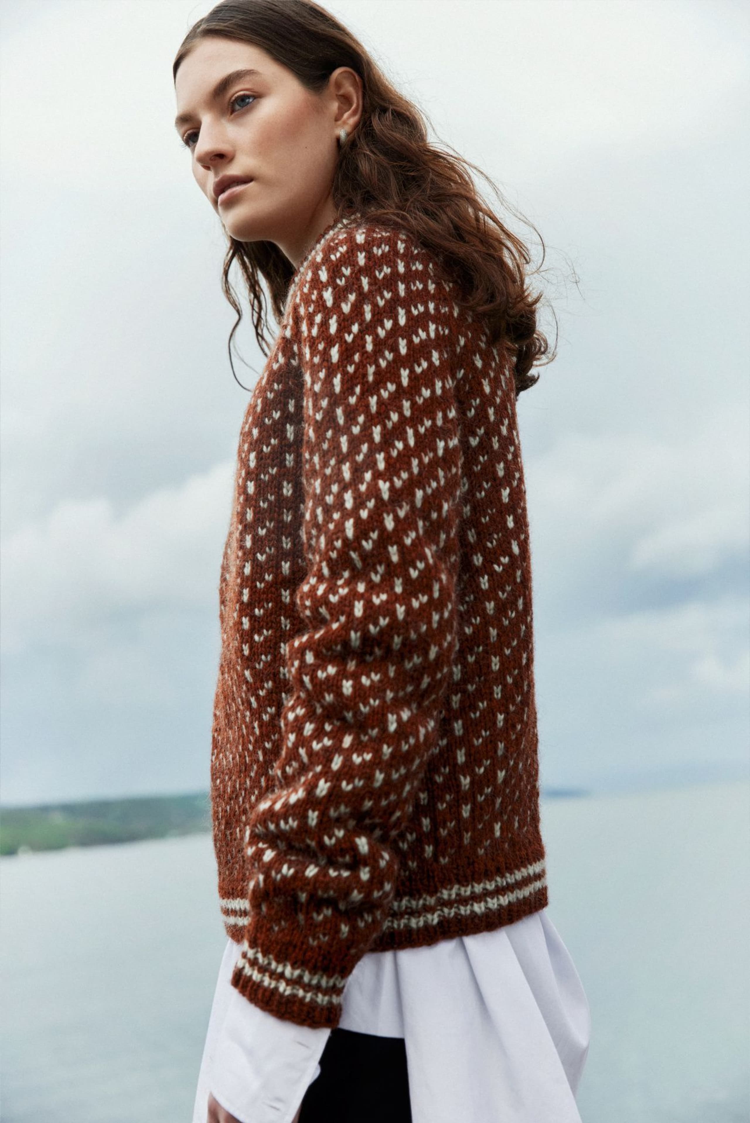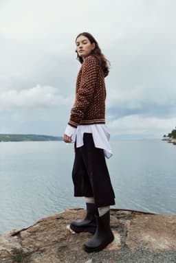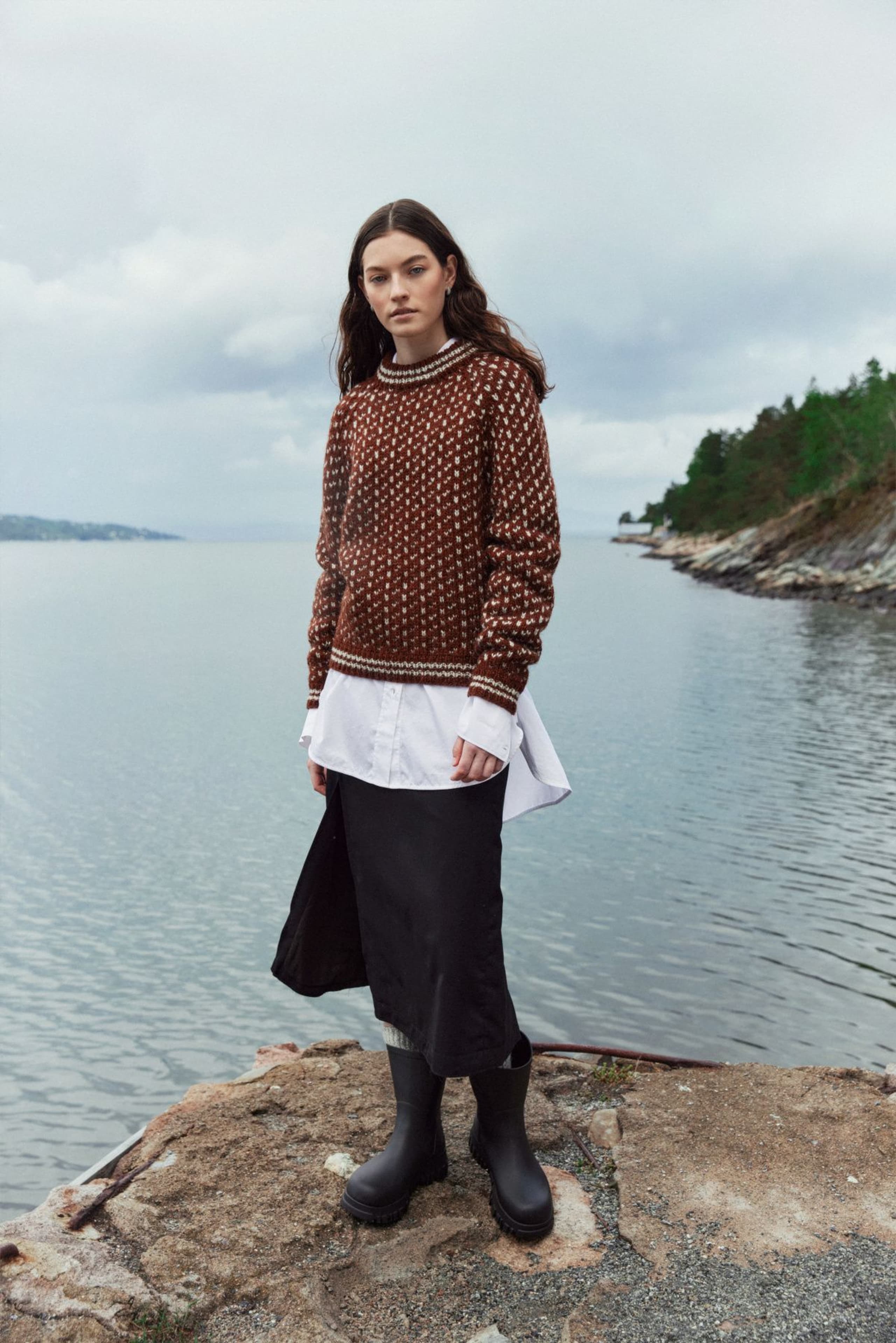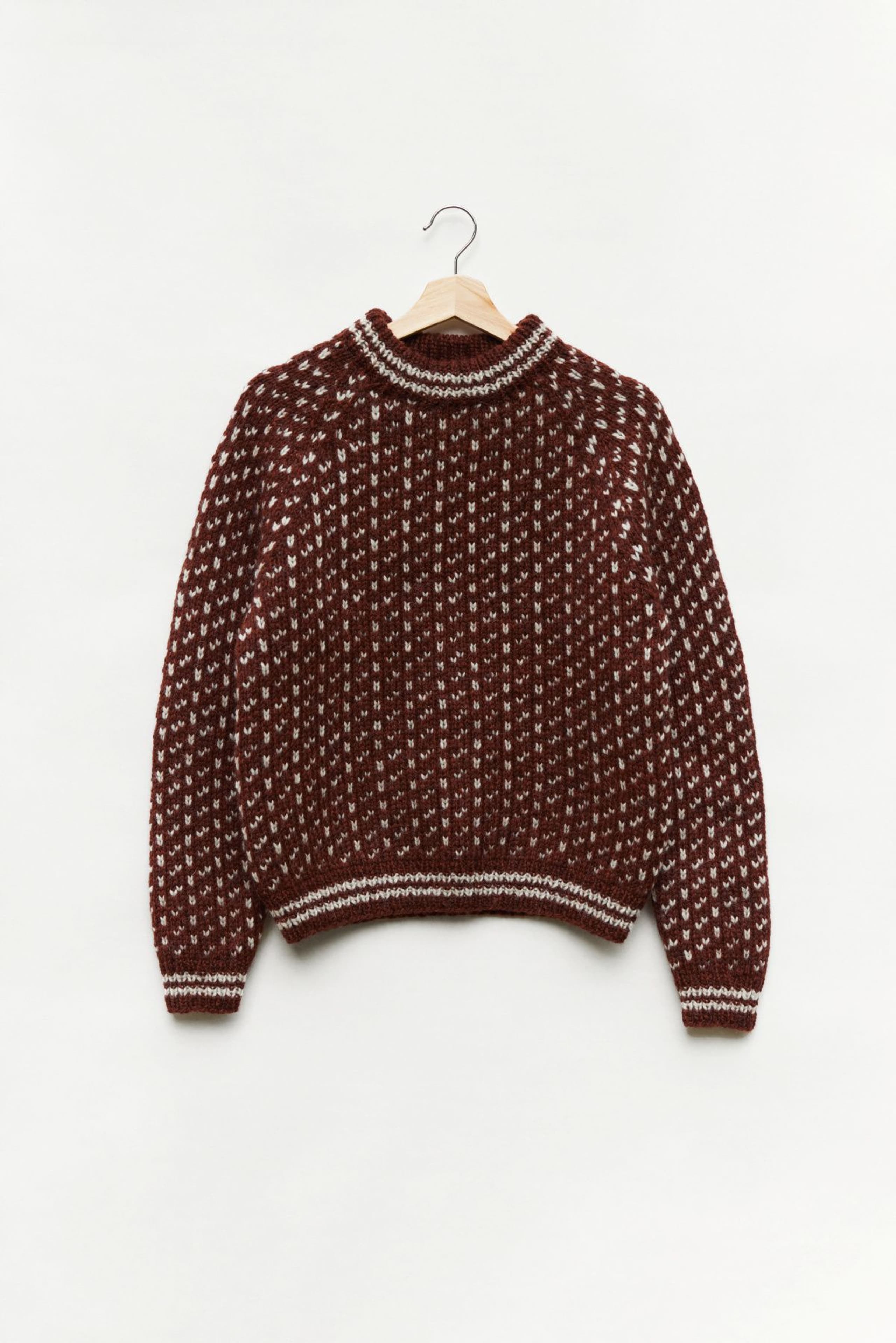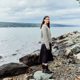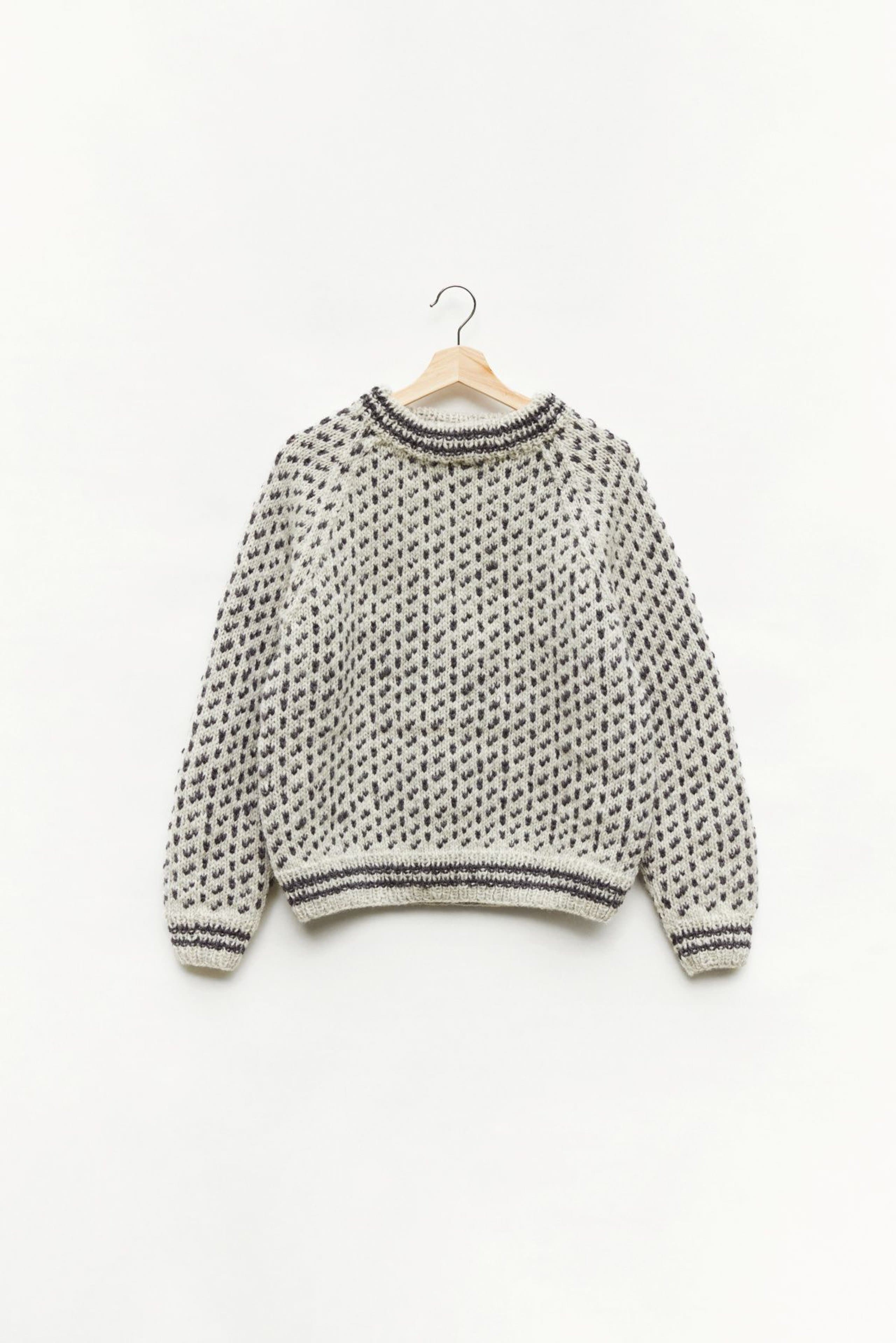 Islenderen er en klassisk genser med mønster i to farger. Den har en rett og ledig passform med raglan og ribbestrikkede kanter med striper. Genseren strikkes nedenfra og opp. Raglanfellingene strikkes på hver side av en mønsterbord. Halsringningen formes ved å strikke vendepinner og halskanten brettes dobbel innover. For å få en ledig passform, velg en størrelse som har en brystvidde som er 10-18 cm større enn din egen.