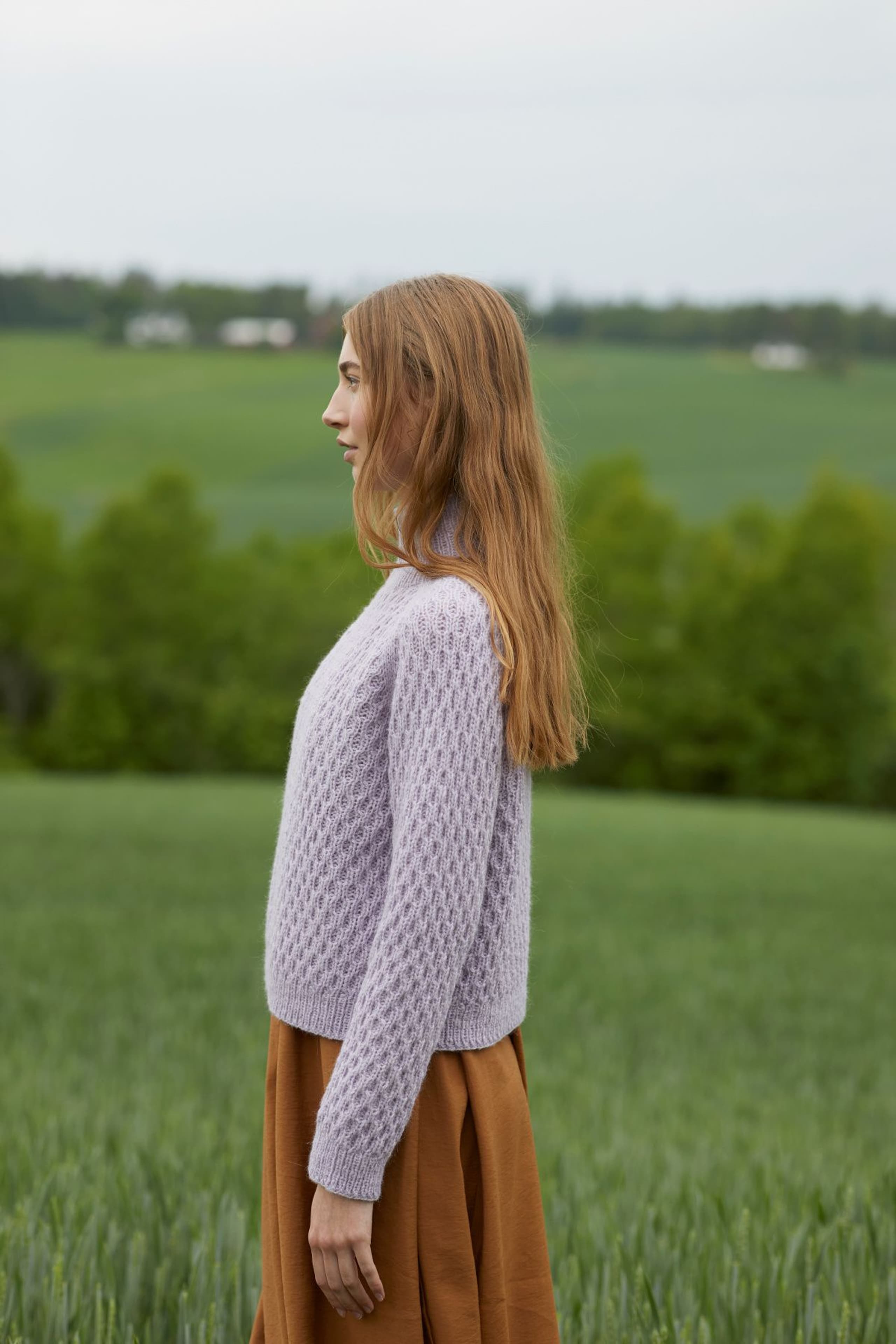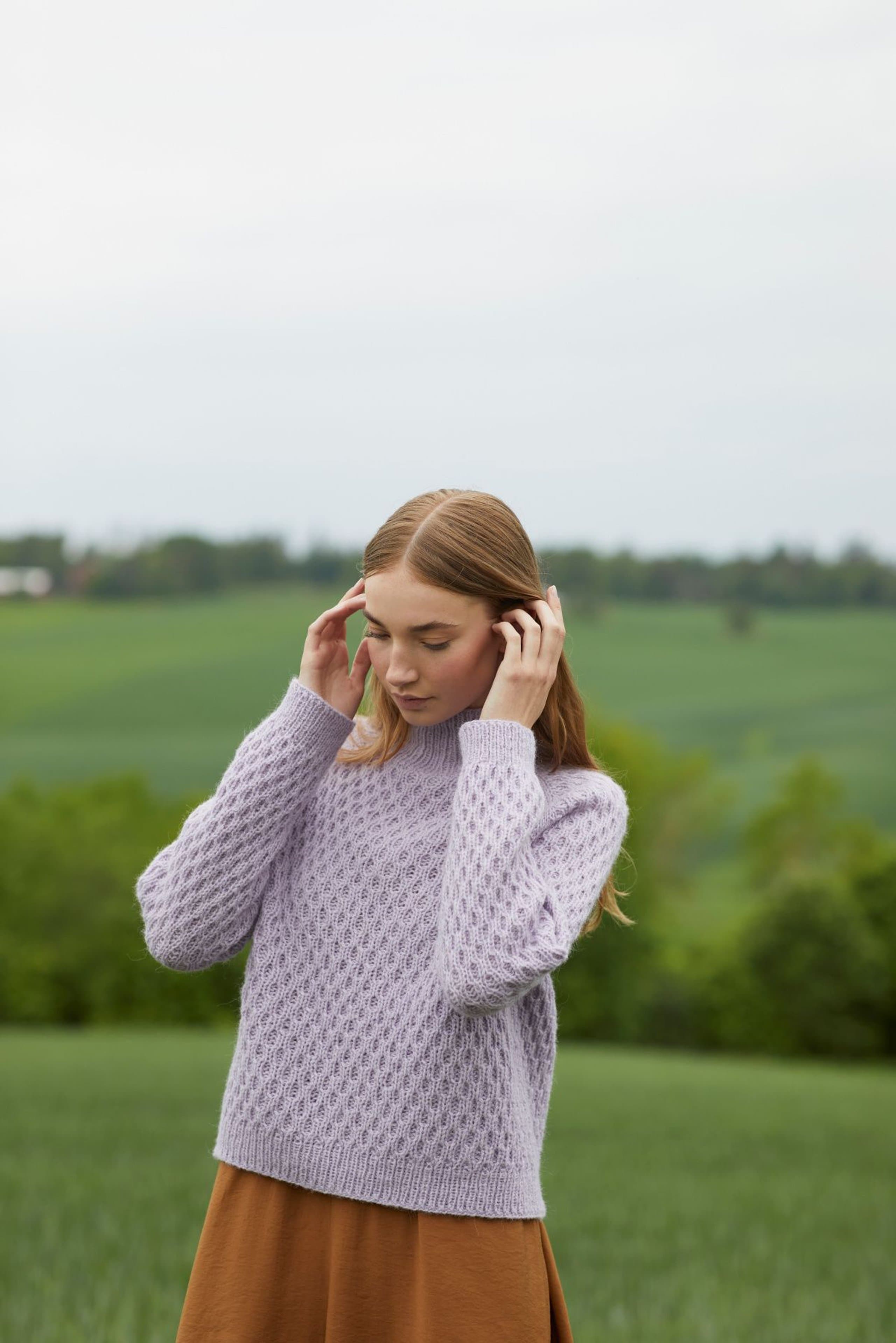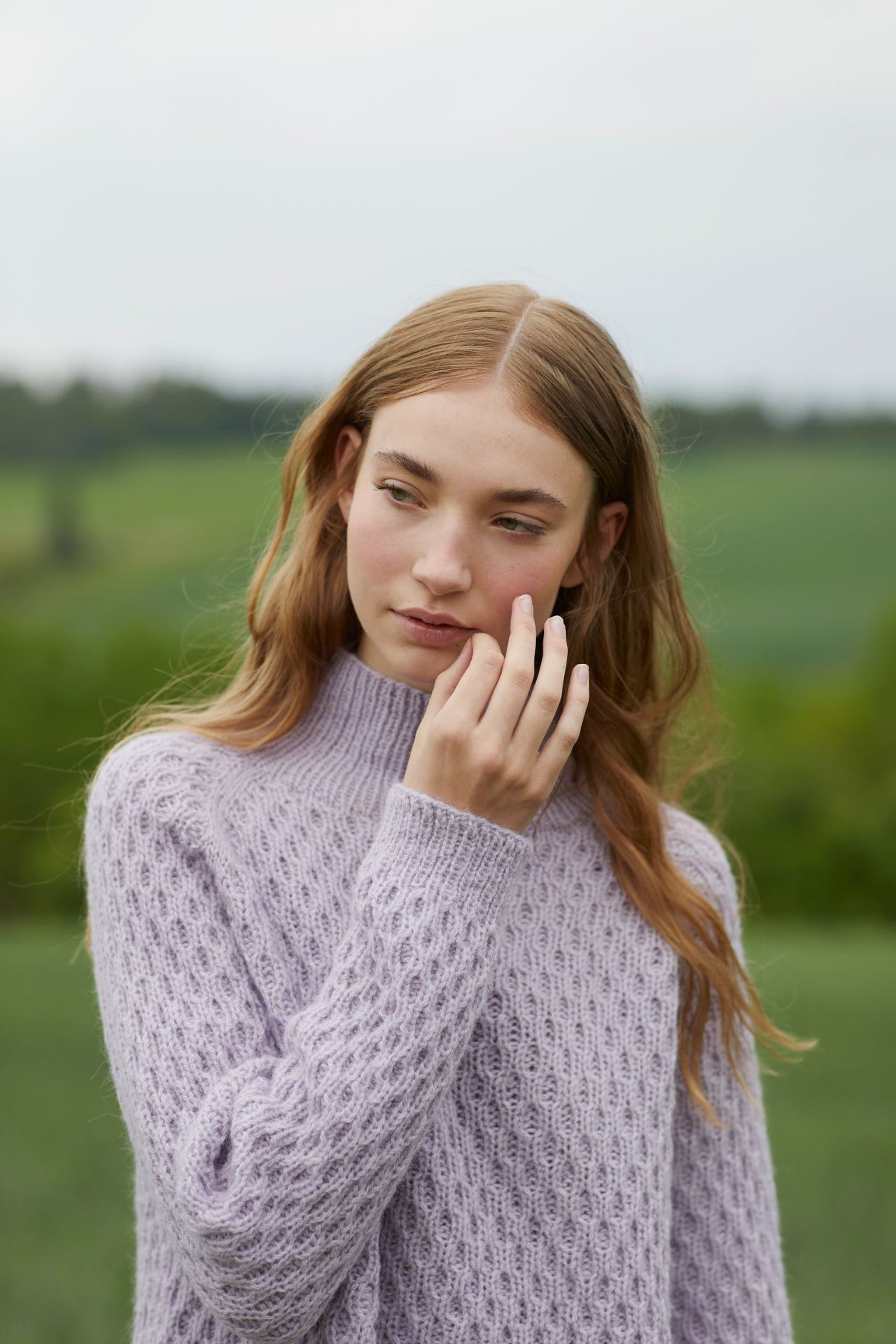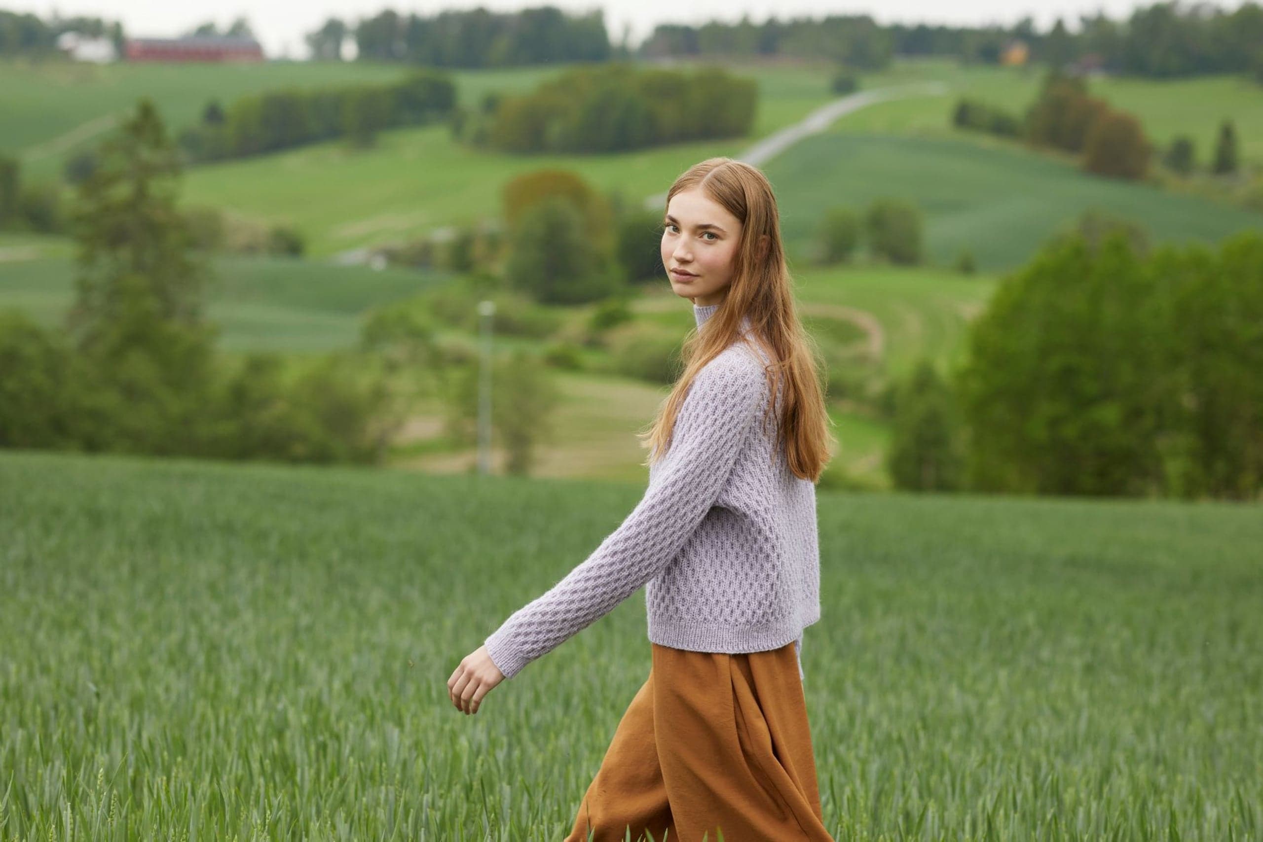 Dilon strukturgenser er en raglangenser i flettestruktur, med halvhøy hals og ribbestrikkede kanter. Den har en klassisk passform og finnes i kort og lang versjon.Genseren strikkes ovenfra og ned med 1 tråd Finull og 1 tråd Alpaca Silk. Halsringningen formes ved å strikke vendepinner, og det økes til raglan på hver side av 3 glattstrikkede m. For å få en avslappet passform, velg en størrelse som har en brystvidde som er 10- 16 cm større enn din egen.