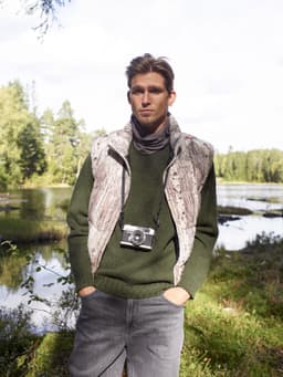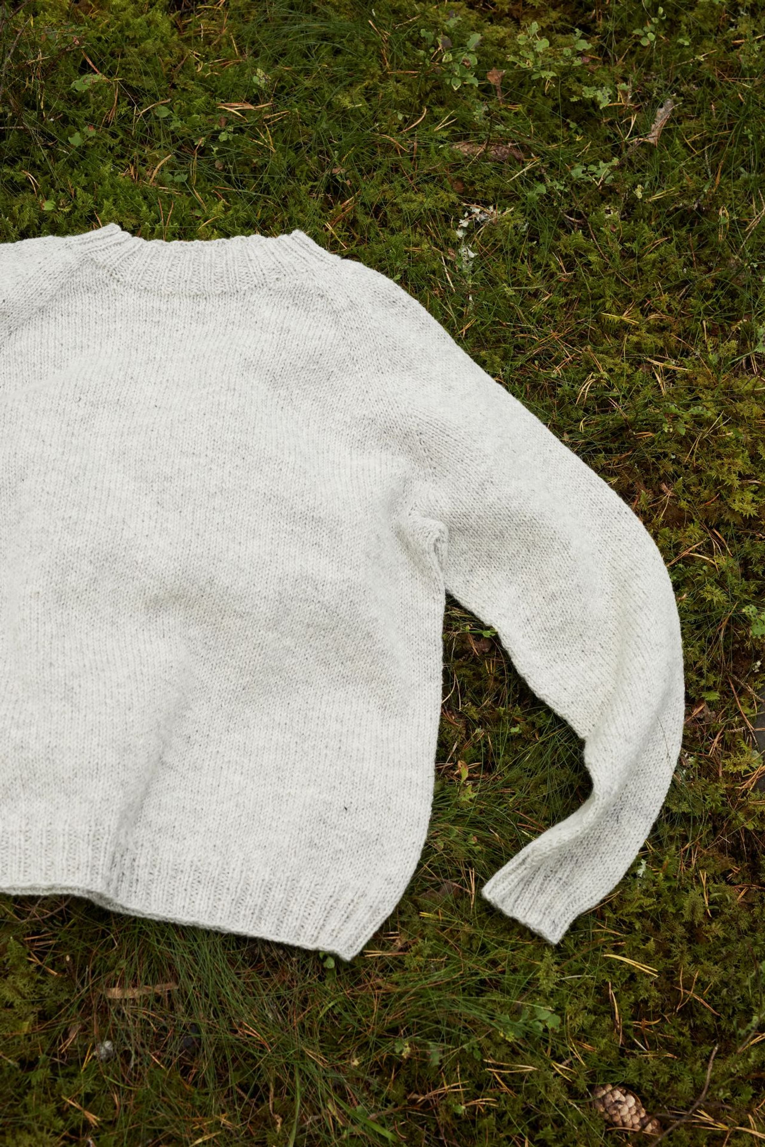 Grimgenser er en klassisk glattstrikket raglangenser, med dobbel ribbestrikkete kanter. Den er strikket ovenfra og ned. Halsringningen er formet med vendepinner. For å få en klassisk passform, velg en størrelse som har en brystvidde som er 8-14 cm større enn kroppens brystmål.
