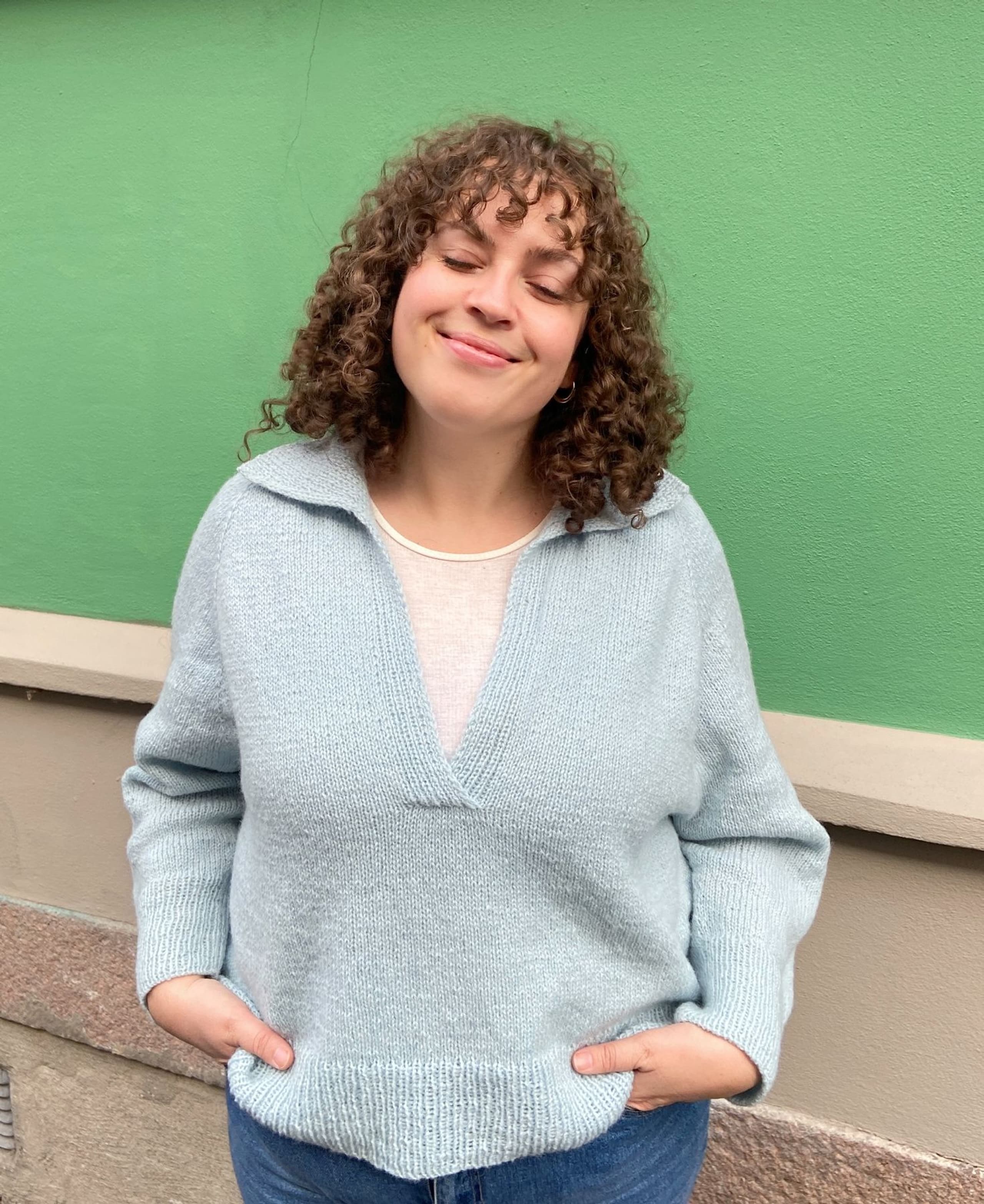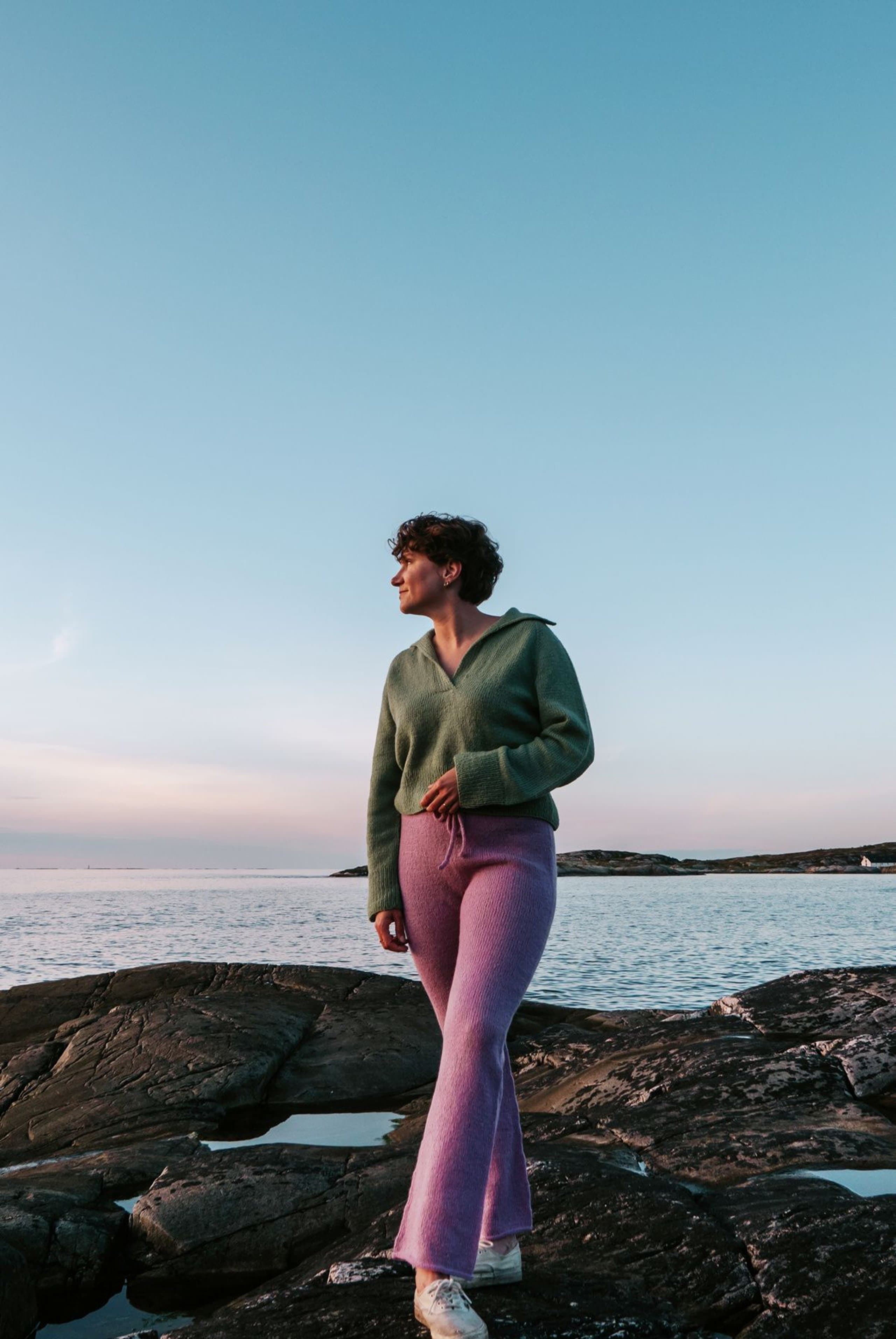 Genseren er en raglangenser med krage og splitt foran. Den strikkes ovenfra og ned. Først strikkes kragen frem og tilbake i en half-milano-ribb som gjør kragen tett og stabil. Så strikkes glattstrikk med vendepinner i halsen og økninger til raglan, frem og tilbake, til splitten er ferdig. Splitten strikkes så sammen med en overlapp. Arbeidet deles til bol og ermer og strikkes videre rundt. Genseren passer fint sammen med 422-3 Finullbukse. Fremstrikkerne kan ha gjort egne justeringer på plaggene de har strikket - som å forkorte eller forlenge ermer og bol. **Kjøp magasinet uten garn her: [422 Fremstrikk magasin](https://www.raumagarn.no/produkt/tilbehor/fremstrikk-2)**