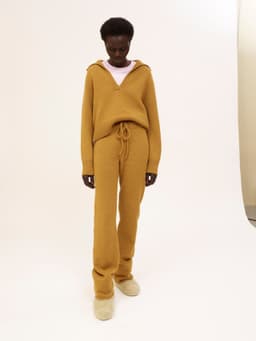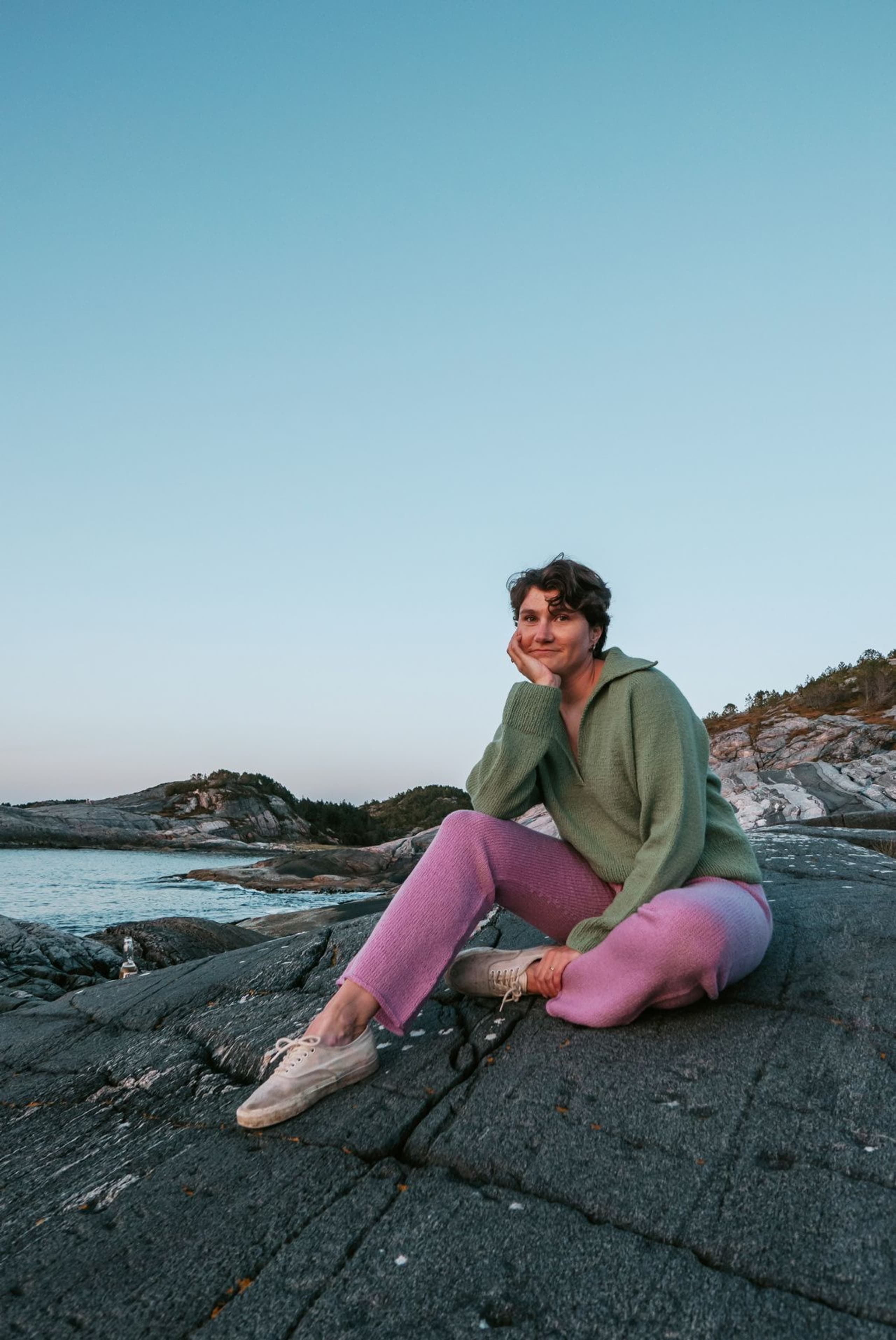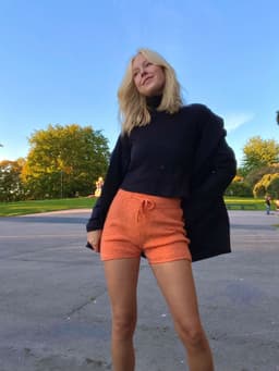 Buksen strikkes ovenfra og ned. Først strikkes linningen med brettekant. Velg mellom strikk i linningen eller knytesnor. Videre fortsetter man i glattstrikk med vendepinner for å gjøre buksen høyere bak. Så økes m til skrittet, før arbeidet deles i 2 deler og bena strikkes hver for seg. Det felles på innsiden av benet ned mot kneet, videre økes ut til en liten sleng. Benet avsluttes med en i-cord-avfelling. Fremstrikkerne kan ha gjort egne justeringer på buksen, noen har strikket kortere bein og fått en fin shorts. Prøv buksen på underveis og strikk den så lang du vil! **Kjøp magasinet uten garn her:** [422 Fremstrikk magasin](https://www.raumagarn.no/produkt/tilbehor/fremstrikk-2)