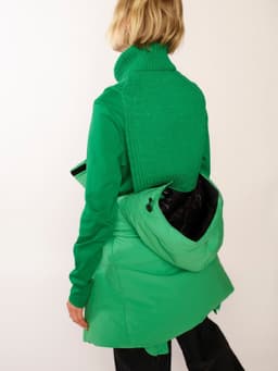 Billie hals er et enkelt tilbehør i glattstrikk og ribbestrikk som strikkes ovenfra og ned. Først strikkes bakstykket frem og tilbake og det økes til skrå skuldre. Deretter strikkes masker opp langs skuldrene og hvert forstykke strikkes for seg. Halsen plukkes opp til slutt og strikkes i ribbestrikk.
