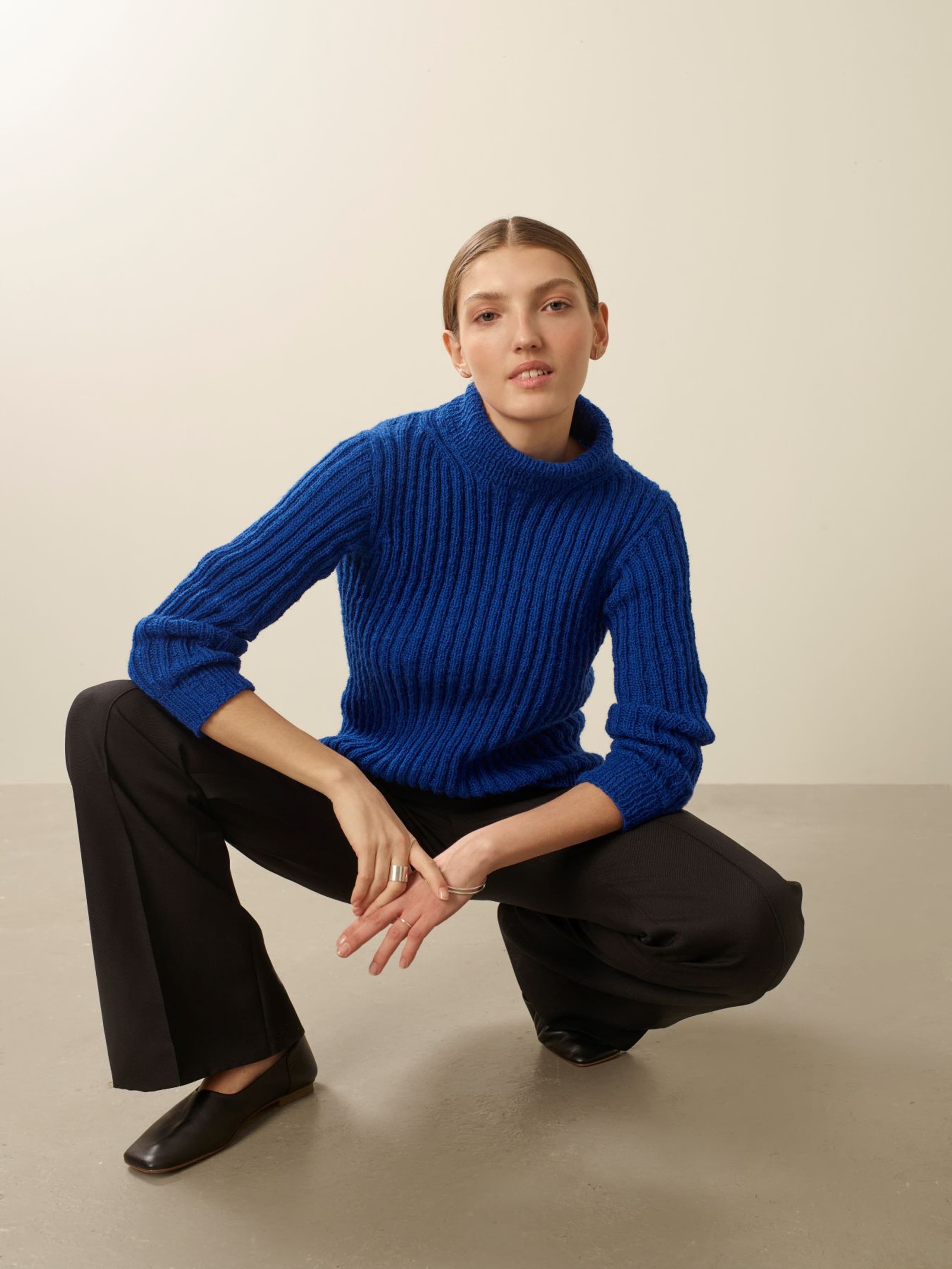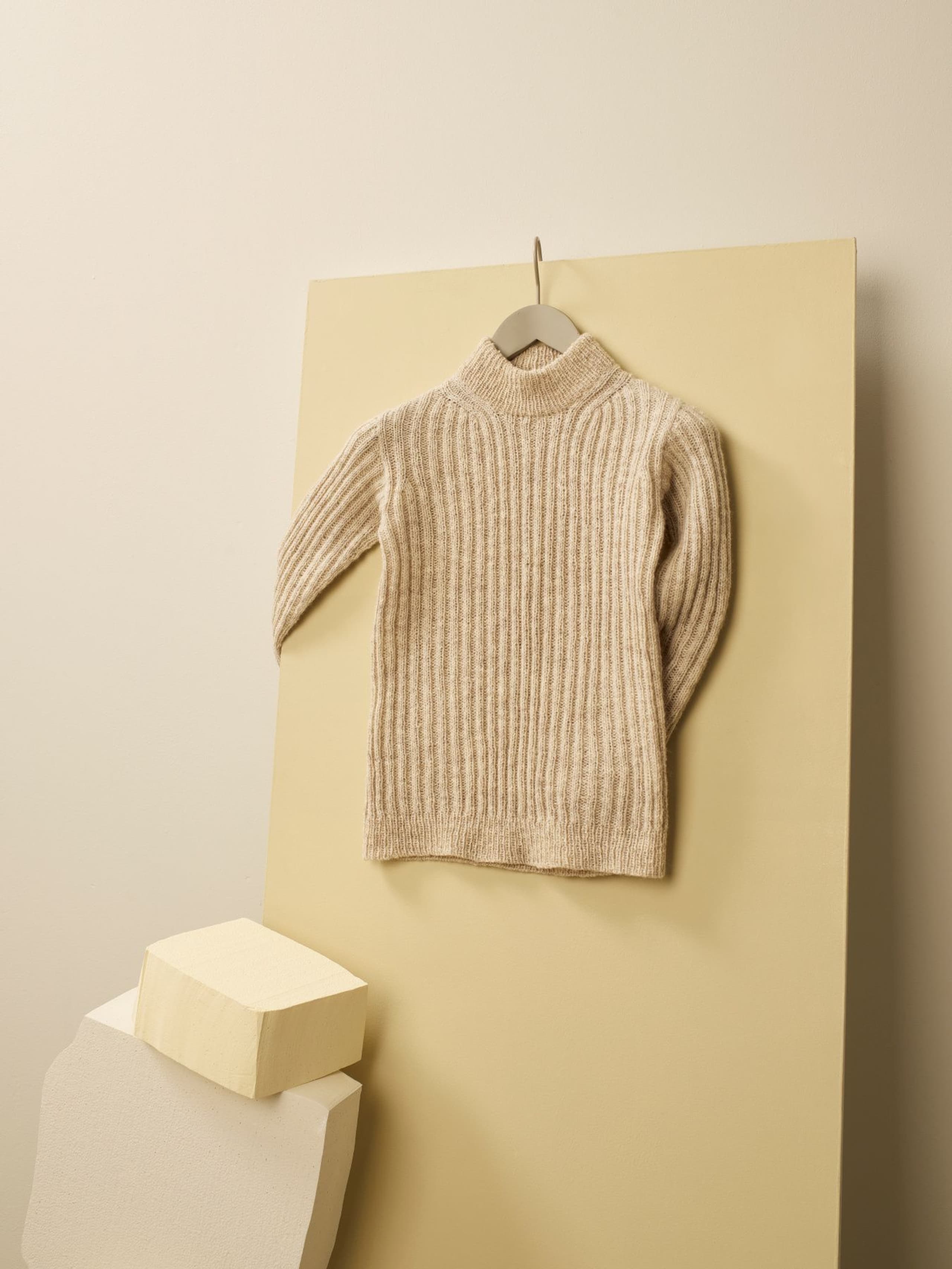 Trane er en ribbestrikket genser som strikkes ovenfra og ned. Først strikkes bakstykket frem og tilbake mens det økes til skrå skuldre. Deretter strikkes masker opp langs skuldrene og hvert forstykke strikkes for seg med økinger til hals. Det legges opp m midt foran og forstykkene strikkes så videre samlet. Under ermene samles maskene på samme pinne, bolen strikkes rundt og avsluttes med vrangbord. Det plukkes opp m til ermer og disse strikkes først frem og tilbake med vendepinner for å forme ermetoppen, og deretter rundt. Halskanten strikkes til slutt.