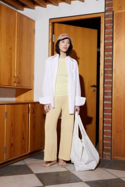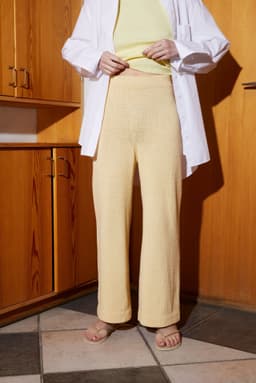 Riviera bukse er en glattstrikket, behagelig bukse med vide ben og strikk i linningen. Den strikkes ovenfra og ned. Først strikkes linningen med brettekant. Videre fortsetter man i glattstrikk med vendepinner for å gjøre buksen høyere bak. Så økes m til skrittet midt foran og midt bak, før arbeidet deles i 2 deler og bena strikkes hver for seg. Benet avsluttes med en brettekant.