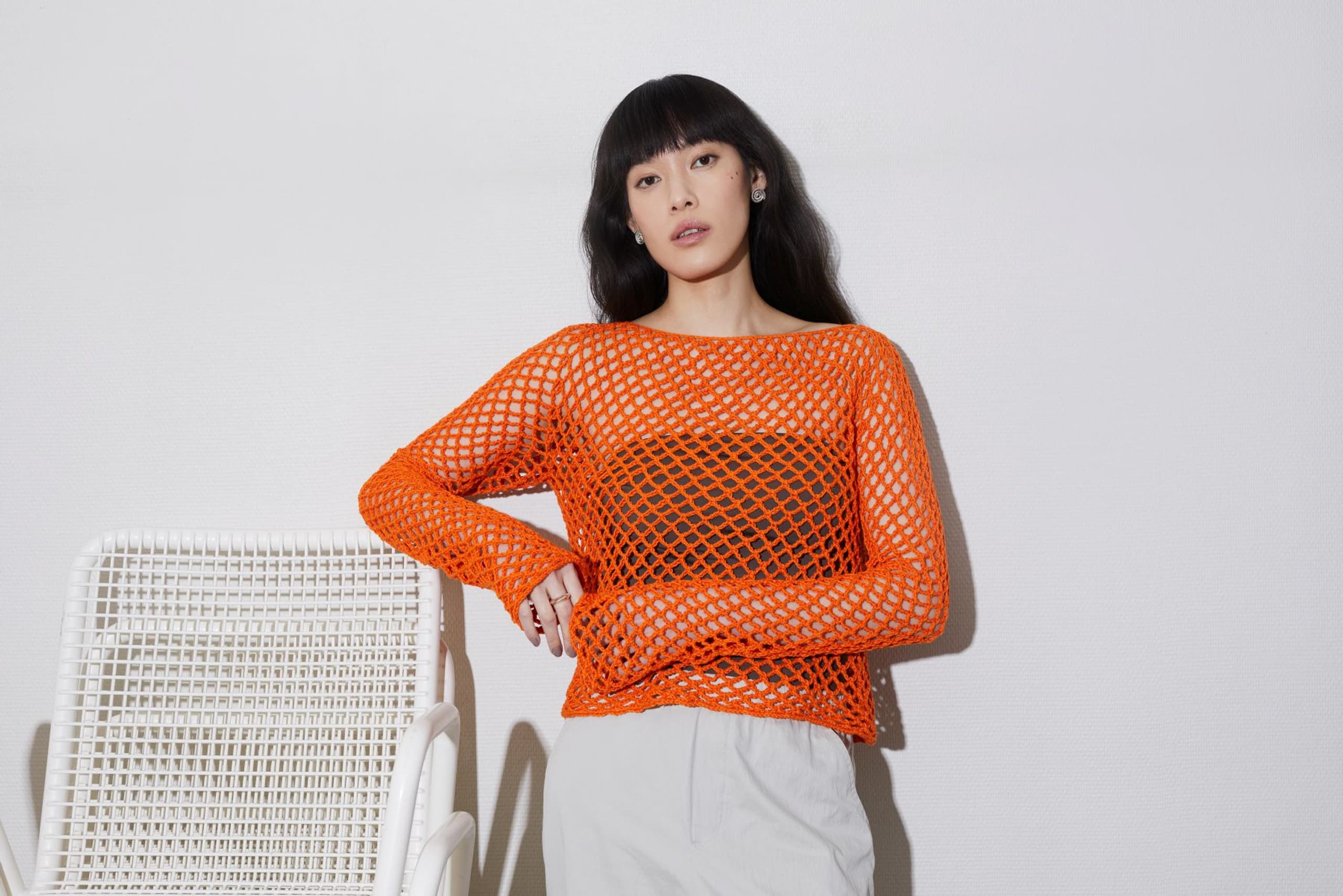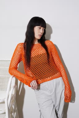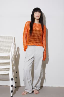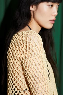 Pacific genser hekles rundt, ovenfra og ned med et hullmønster av luftmaskebuer. Genseren blir svært tøyelig og vil forme seg etter kroppen. Velg en størrelse med en brystvidde som er 2-10 cm større enn din egen.