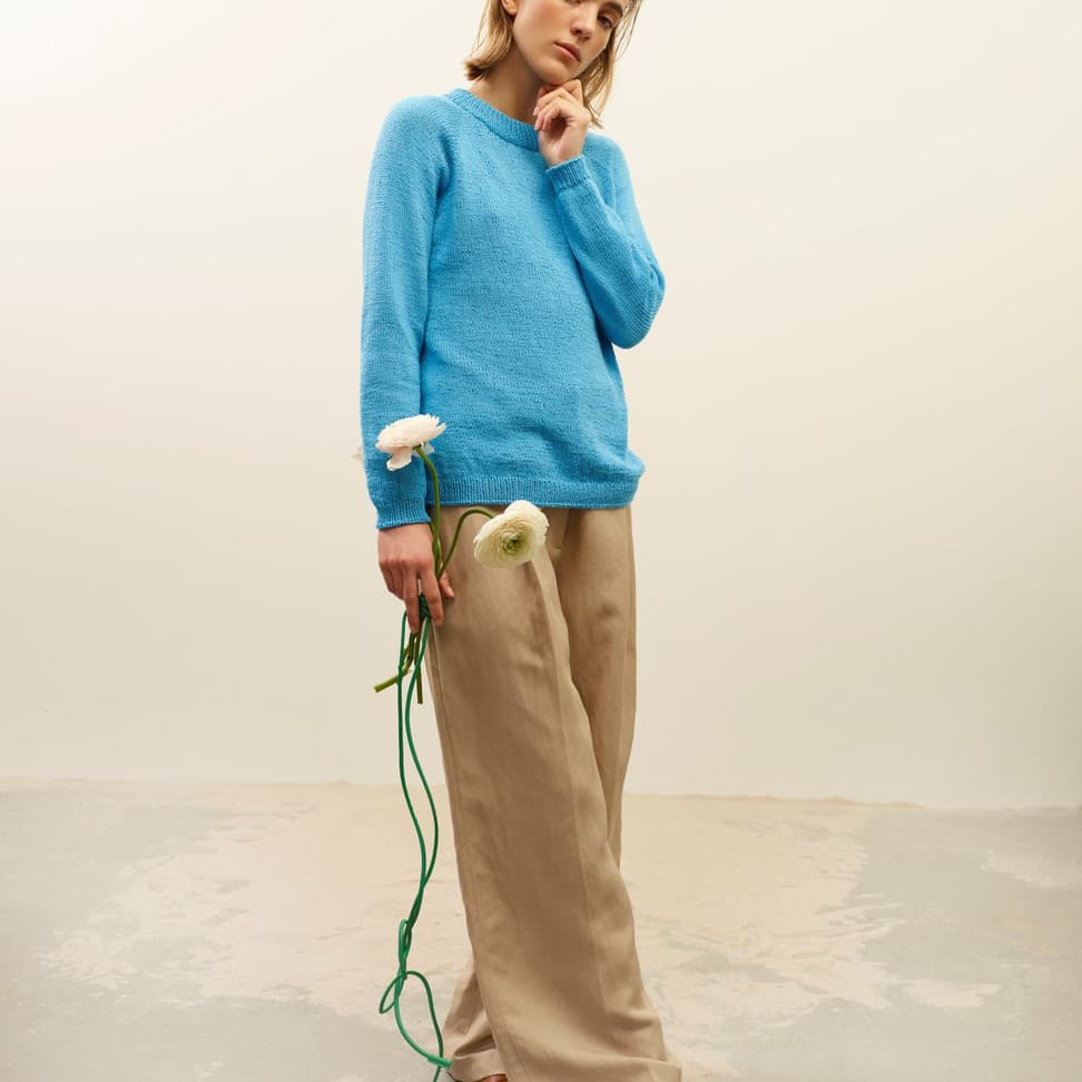 Nella raglangenser er en enkel glattstrikket genser med rund hals, klassisk passform og ribbestrikkede kanter. Genseren strikkes ovenfra og ned med raglanøkninger. Først strikkes halskanten, og videre strikkes bærestykket. Halsringningen formes ved å strikke vendepinner og det økes samtidig til raglan. Etter raglanøkingene deles arbeidet inn i ermer og bol, og hver del strikkes videre hver for seg og avsluttes med ribbekanter. Halskanten brettes dobbel innover og sys til for hånd. For å få en klassisk passform, strikk en størrelse som er 4-10 cm større enn brystvidden din.