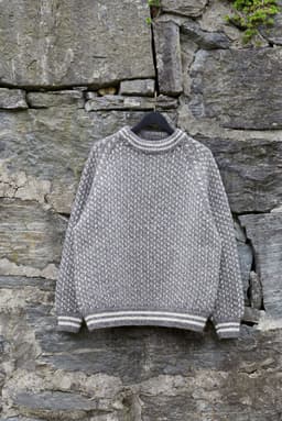 Strikket nedenfra og opp Islender til herre er en helmønstret raglangenser strikket i det klassiske islender-mønsteret. Genseren har en rett og avslappet fasong med rund hals. Den strikkes nedenfra og opp. Først strikkes vrangbord med striper, før man strikker mønster på bolen. Ermene strikkes på samme måte, før delene settes på samme pinne og strikkes sammen. Mellom raglanfellingene strikkes en liten mønsterbord. For en avslappet passform, velg en størrelse som er 14-22 cm større enn din egen brystvidde.