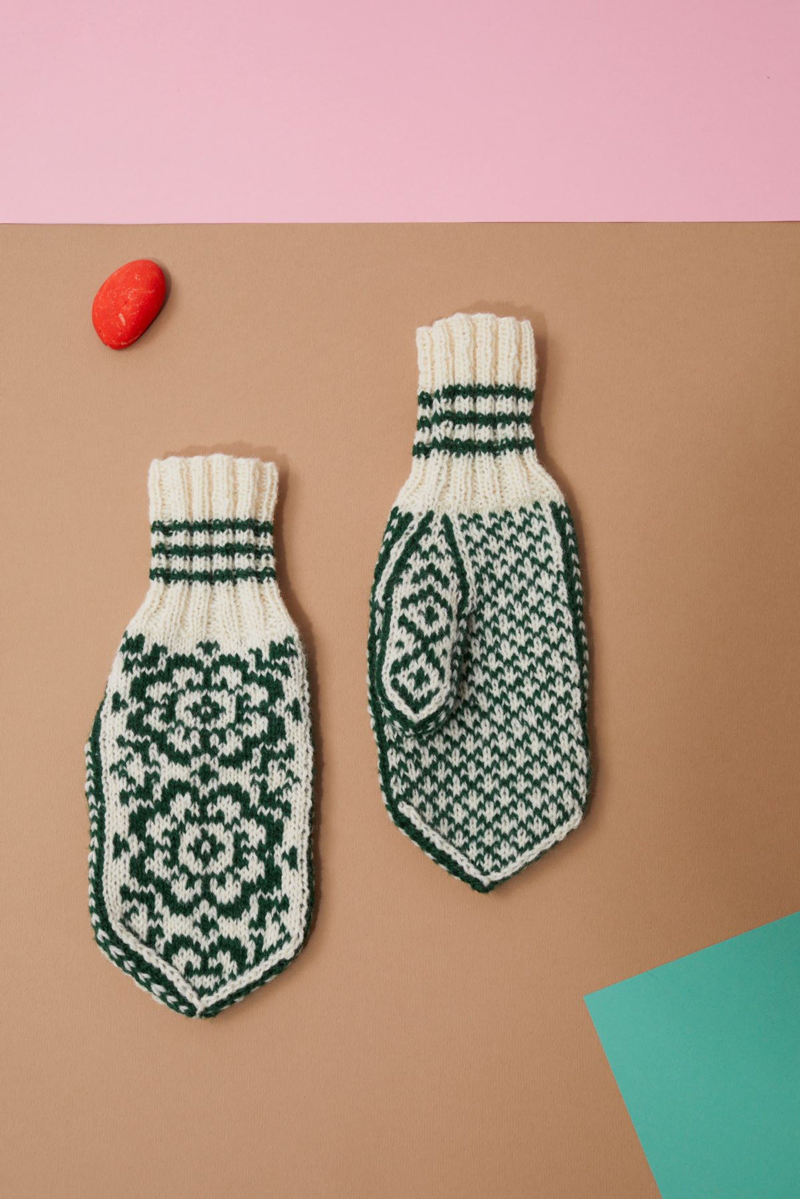 Vottene er strikket med en klassisk vakker rose kalt Appelsinarose på oversiden av votten og en småmønstret håndflate på innsiden. Vottene er strikket med vrangbord slik at vottene skal sitte godt rundt håndleddet. Det er økt ut til tommelkile.