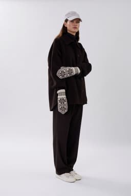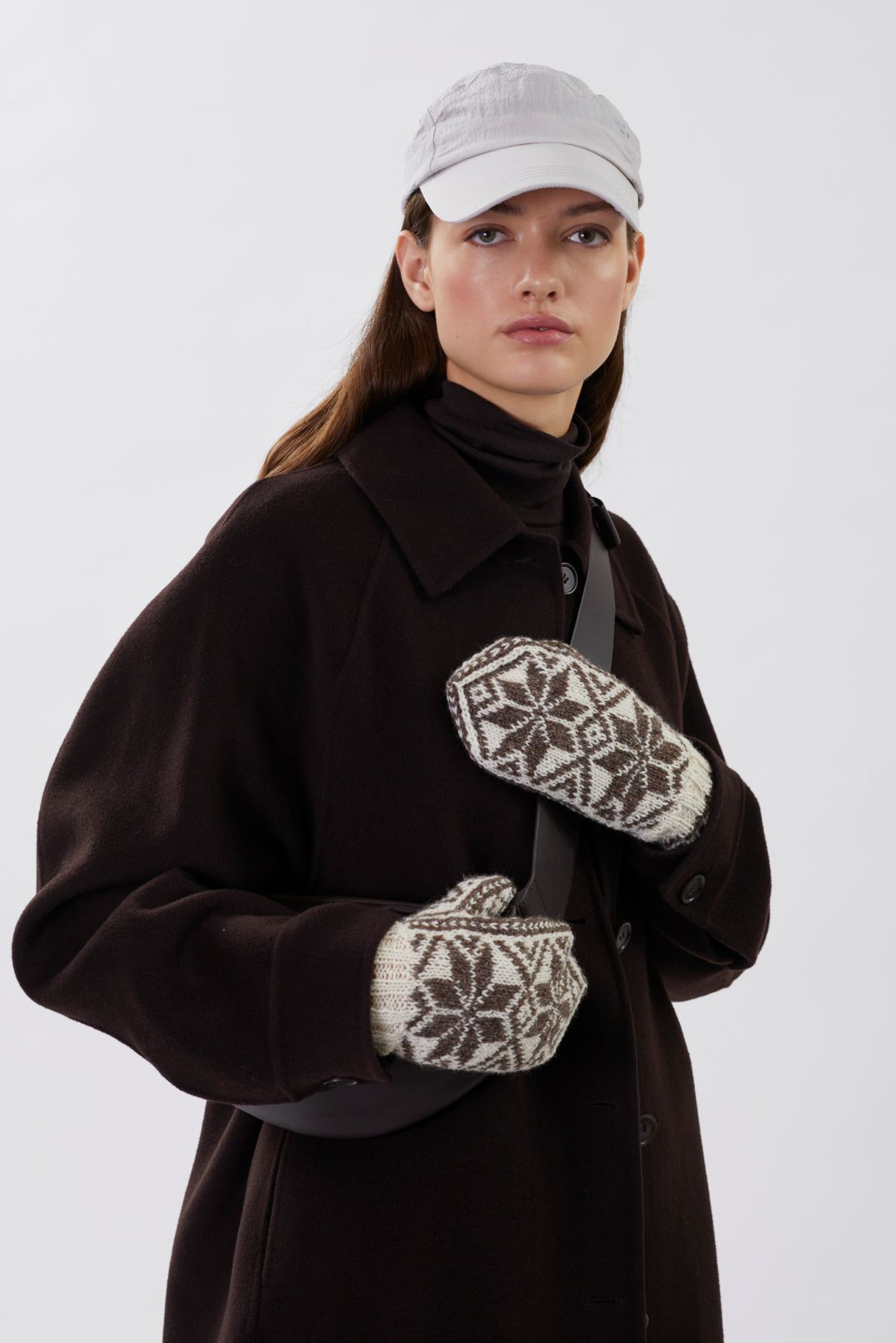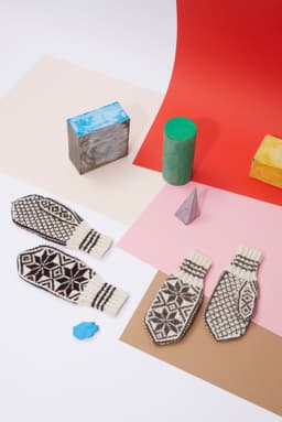 Vottene er strikket med en klassisk vakker Åttebladsrose på oversiden av votten og en småmønstret håndflate. Vottene er strikket med vrangbord så vottene skal sitte godt rundt håndleddet. Det er økt ut til tommelkile.