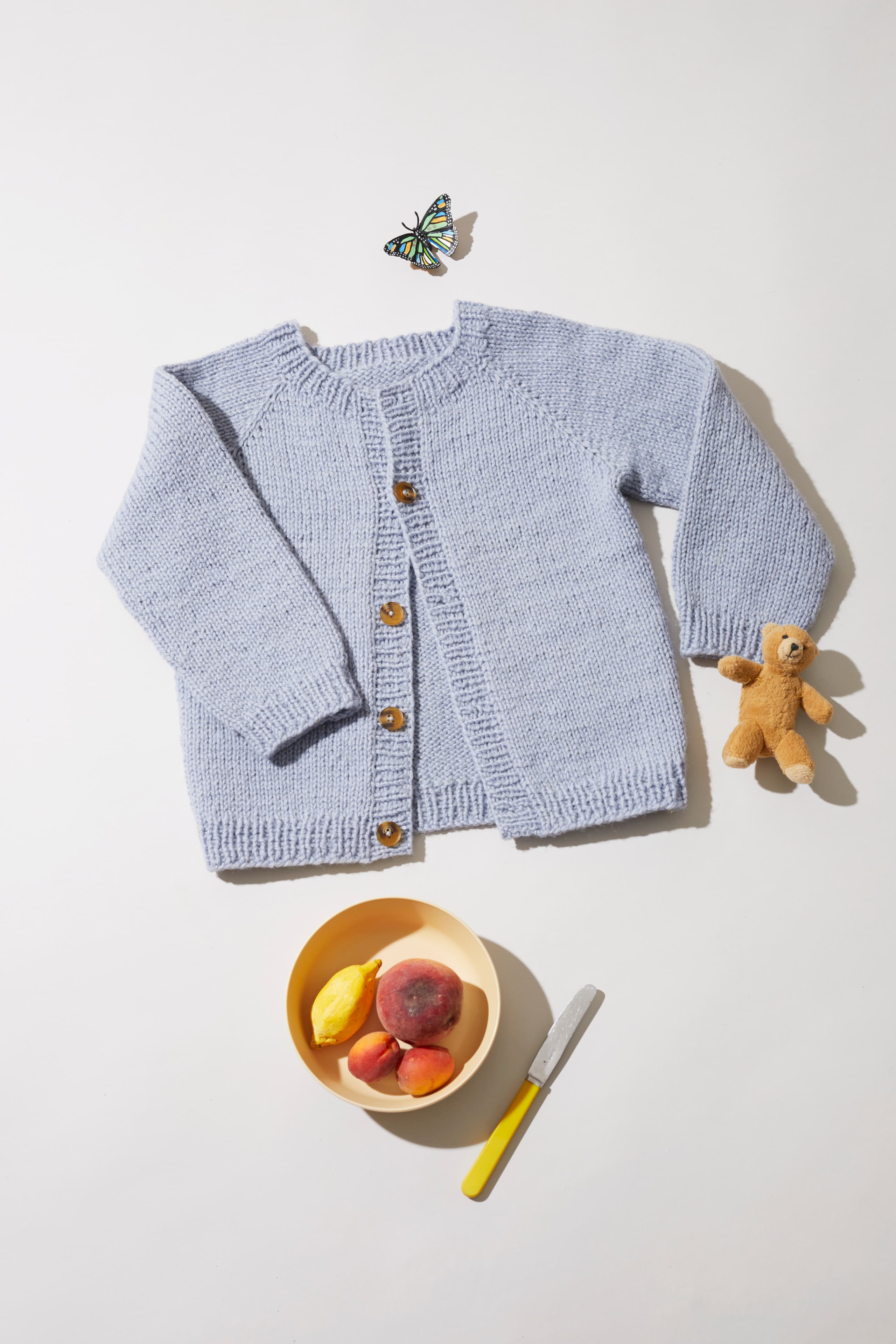 Saltojakke er en glattstrikket raglanjakke, som strikkes ovenfra og ned. Jakken har en klassisk passform med vrangborder i 1x1 ribb. Arbeidet starter i halsen og strikkes frem og tilbake. Videre formes halsutringningen ved å strikke vendepinner, samtidig som det økes til raglan på hver side av raglanmaskene. Når raglanøkningene er ferdige, strikkes bolen frem og tilbake og avsluttes med vrangbord. Deretter strikkes ermer rundt, hver for seg og avsluttes med vrangbord. Stolpene plukkes opp til slutt, en på hver side av jakkeåpningen, og strikkes i vrangbord. Det strikkes knapphull på den ene og sys knapper på den andre.