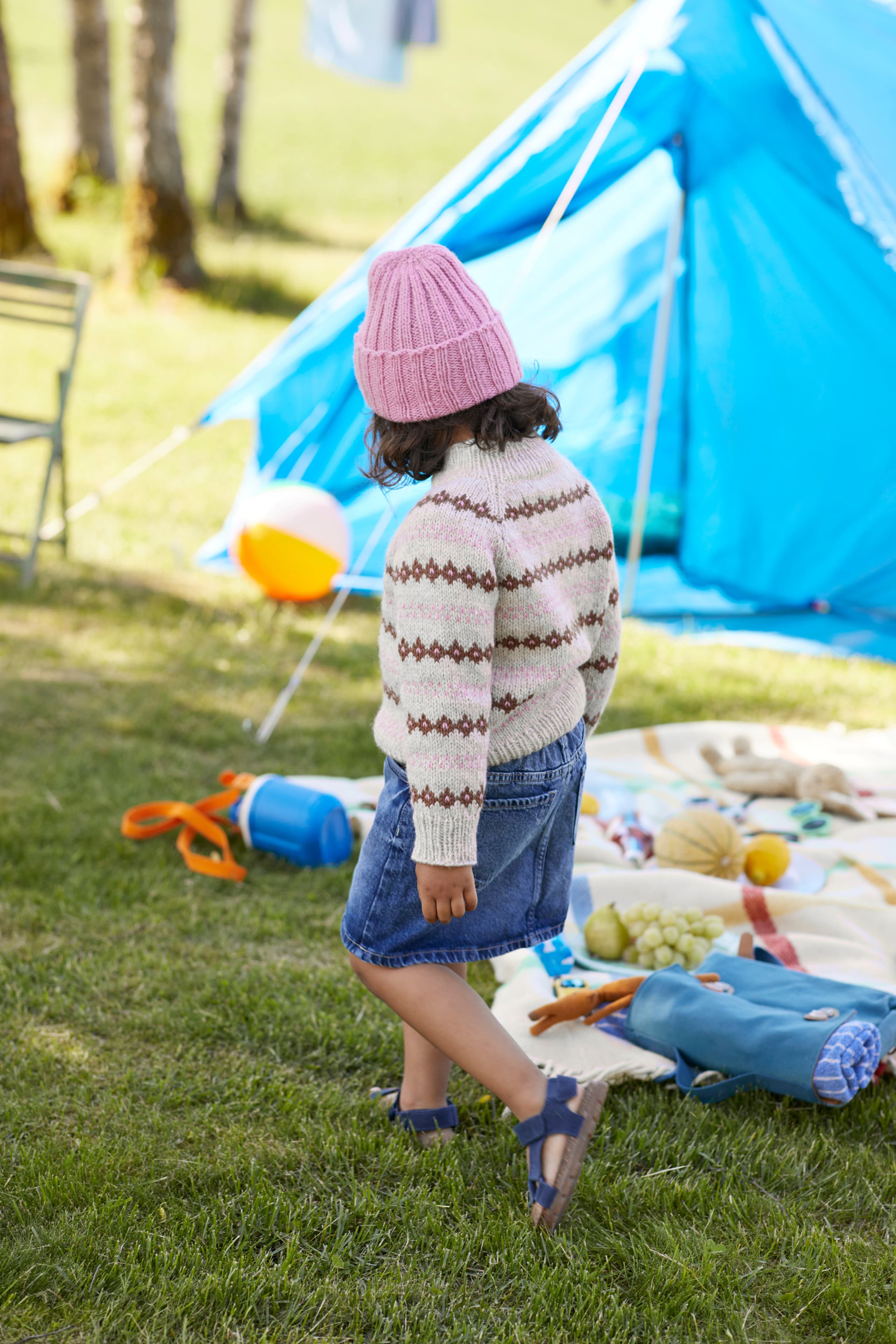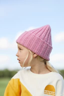 Kikkilue er en stilig lue i 2x2 ribbestrikk og oppbrettet kant. Arbeidet starter nederst i lueåpningen og strikkes rundt. I toppen felles maskene jevnt fordelt. Avslutt med å trekke tråden gjennom de siste maskene og fest tråden på innsiden.