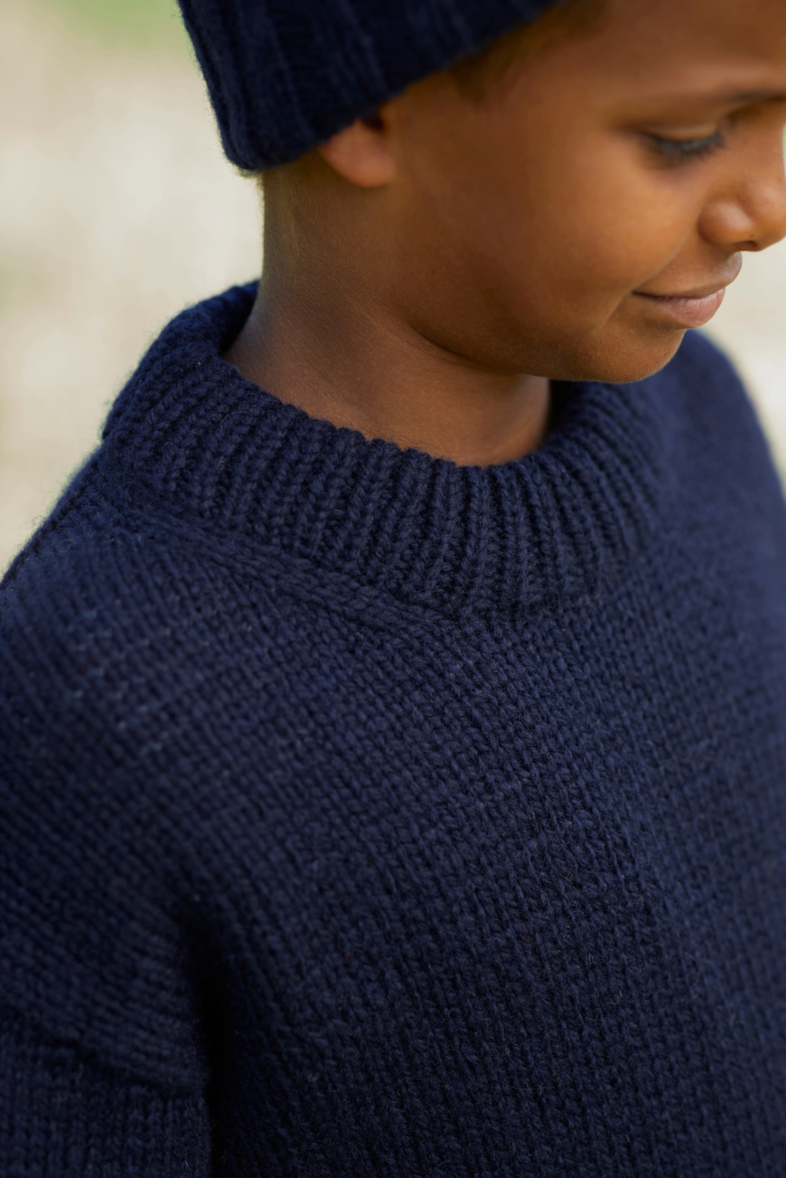 Teltusgenser er en glattstrikket genser med «European shoulders» (skrå skuldre) som strikkes ovenfra og ned. Genseren har en ledig passform, rund hals og kanter i vrangbord i 1x1 ribb. Arbeidet starter med bakstykket, som strikkes frem og tilbake, samtidig som det økes til skrå skuldre. Deretter strikkes det opp masker langs skuldrene og hvert forstykke strikkes hver for seg med økninger til halsutrigning. De to forstykkene strikkes så sammen til ett forstykke og det fortsettes i glattstrikk, frem og tilbake. Videre samles forstykket og bakstykket på samme pinne. Bolen strikkes rundt og avsluttes med vrangbord. Deretter strikkes det opp masker til ermer rundt ermehullet. Ermene strikkes først frem og tilbake med vendepinner for å forme ermetoppen, deretter strikkes de rundt og avsluttes med vrangbord. Til slutt strikkes halskanten i vrangbord og brettes dobbel innover og sys fast med løse sting.
