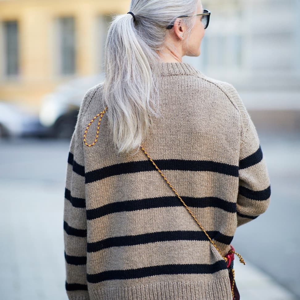 Uni stripegenser er en glattstrikket stripegenser med European shoulder (skrå skuldre bak), som strikkes ovenfra og ned. Den har en ledig passform, rund hals og kanter i 1x1 ribb. Uni stripegenser kan strikkes i forskjellige stripemønster. Velg mellom stripemønster A, B, C eller ABC som er en kombinasjon av alle tre. Du får tilgang til alle kombinasjonene og oppskriftene i denne oppskriften.