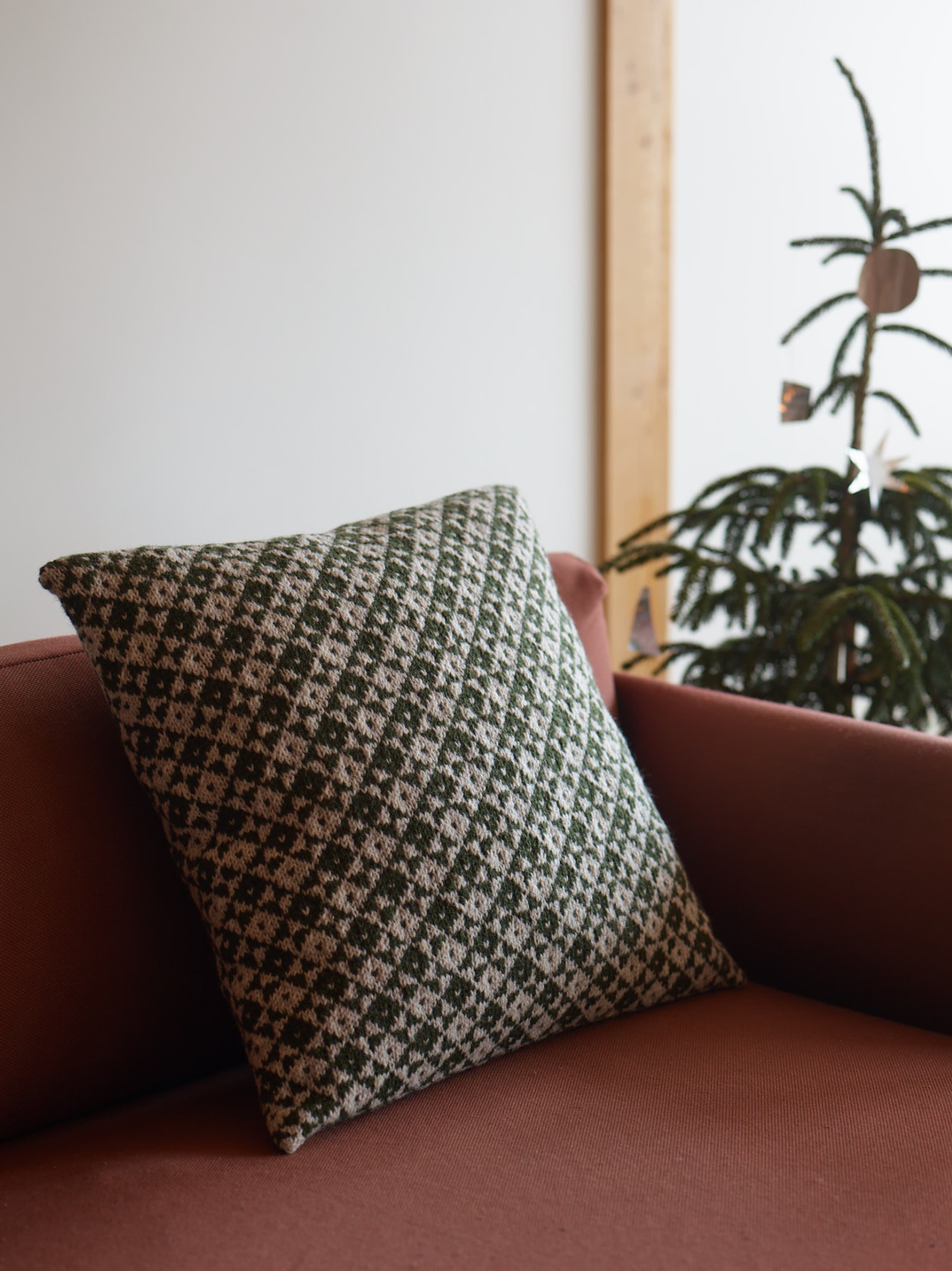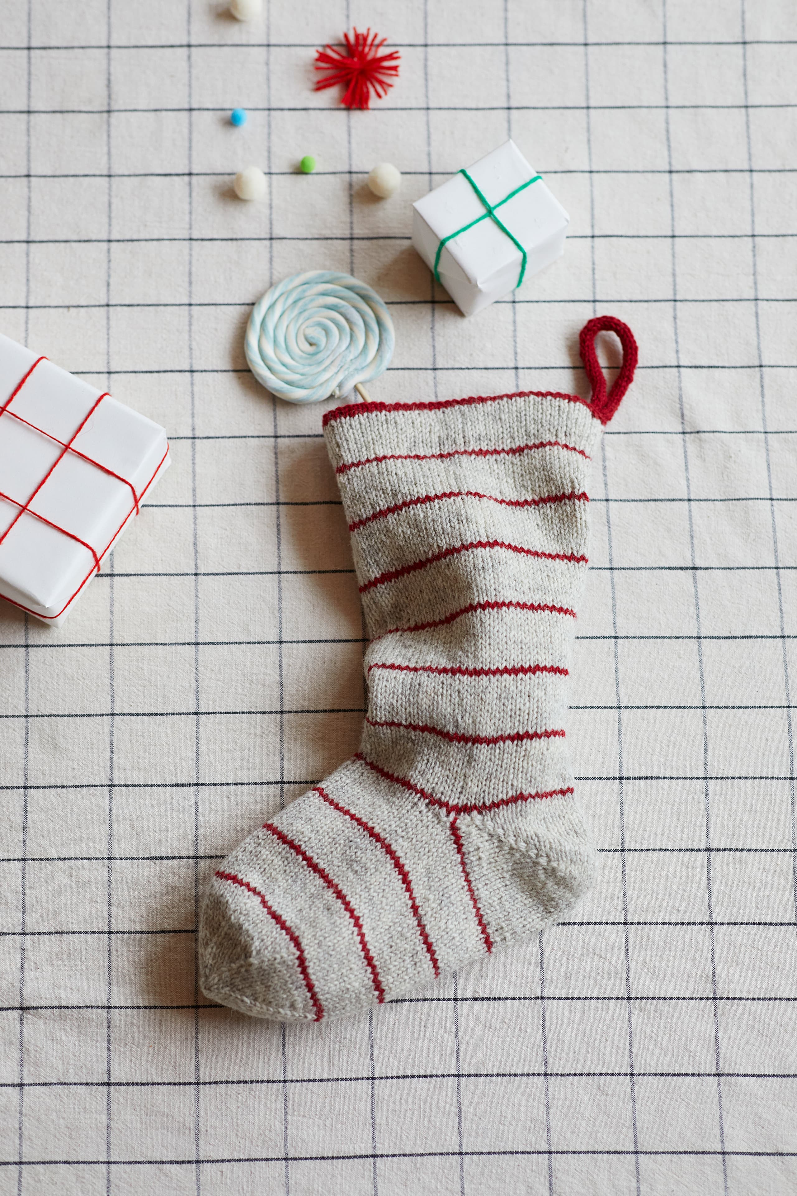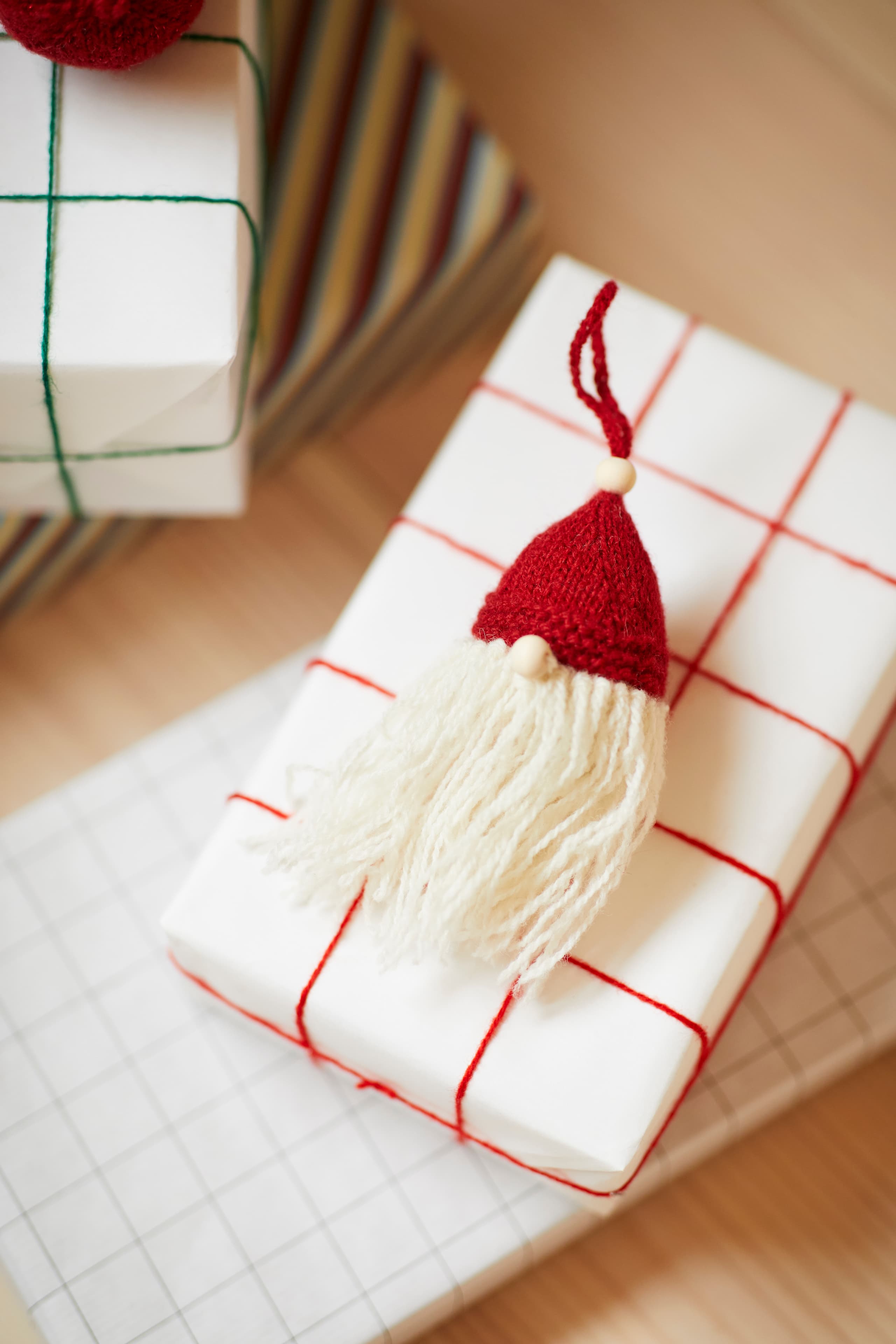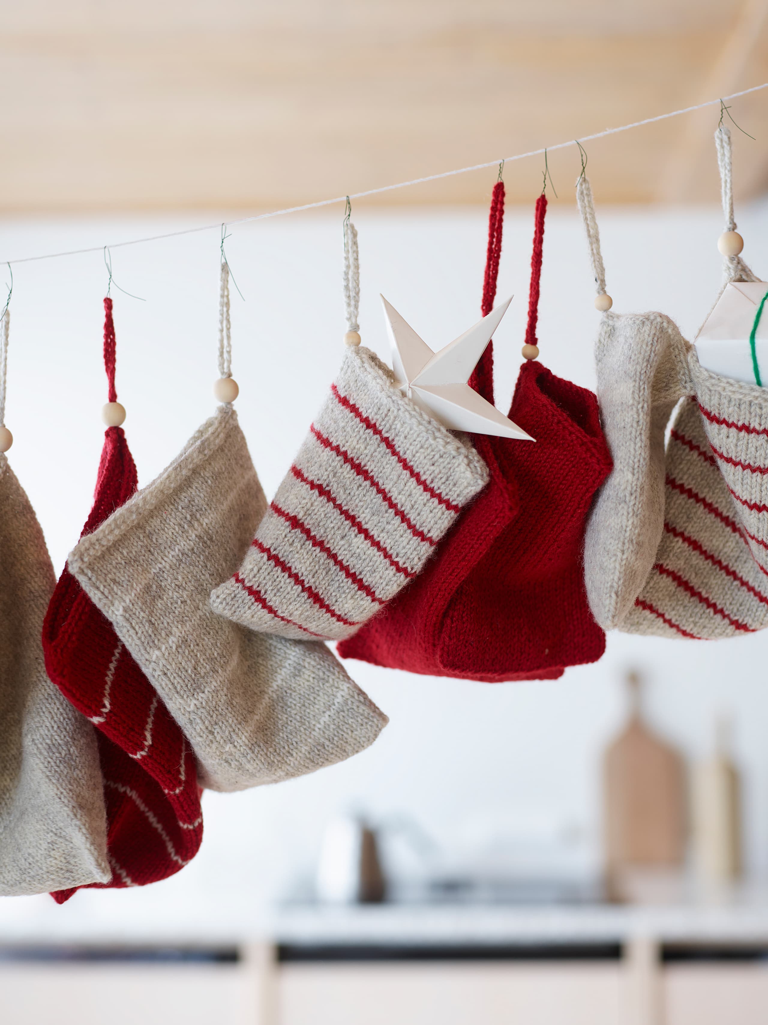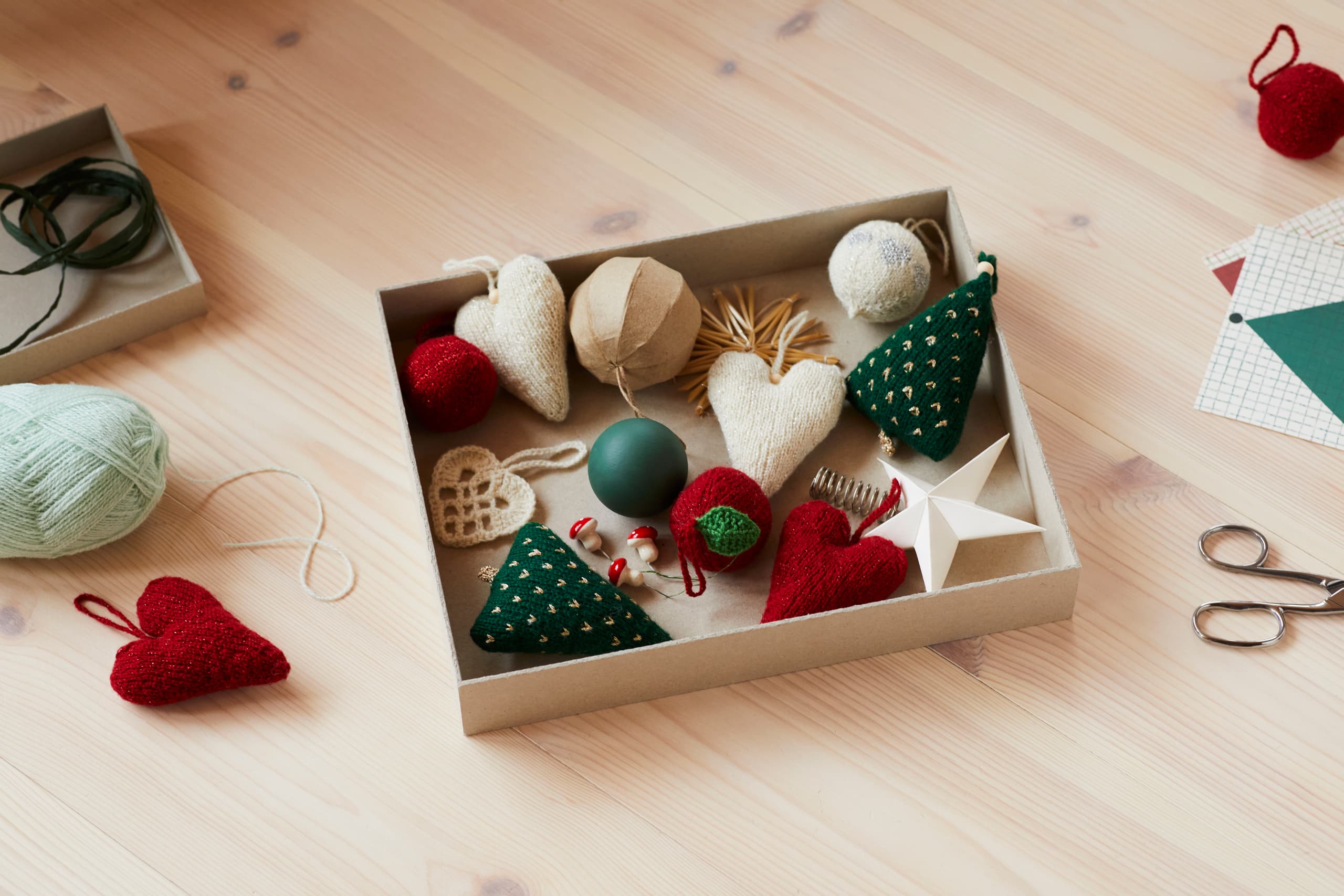 Eplene er glattstrikket og strikkes fra bunnen og opp med en tråd av hver av Lamull og Metallic sammen. Det fylles med ullflor før de siste m snurpes sammen i toppen. I toppen hekles en hempe av luftmasker. Blader strikkes til slutt av Finull, og festes øverst på eplet ved hempen.