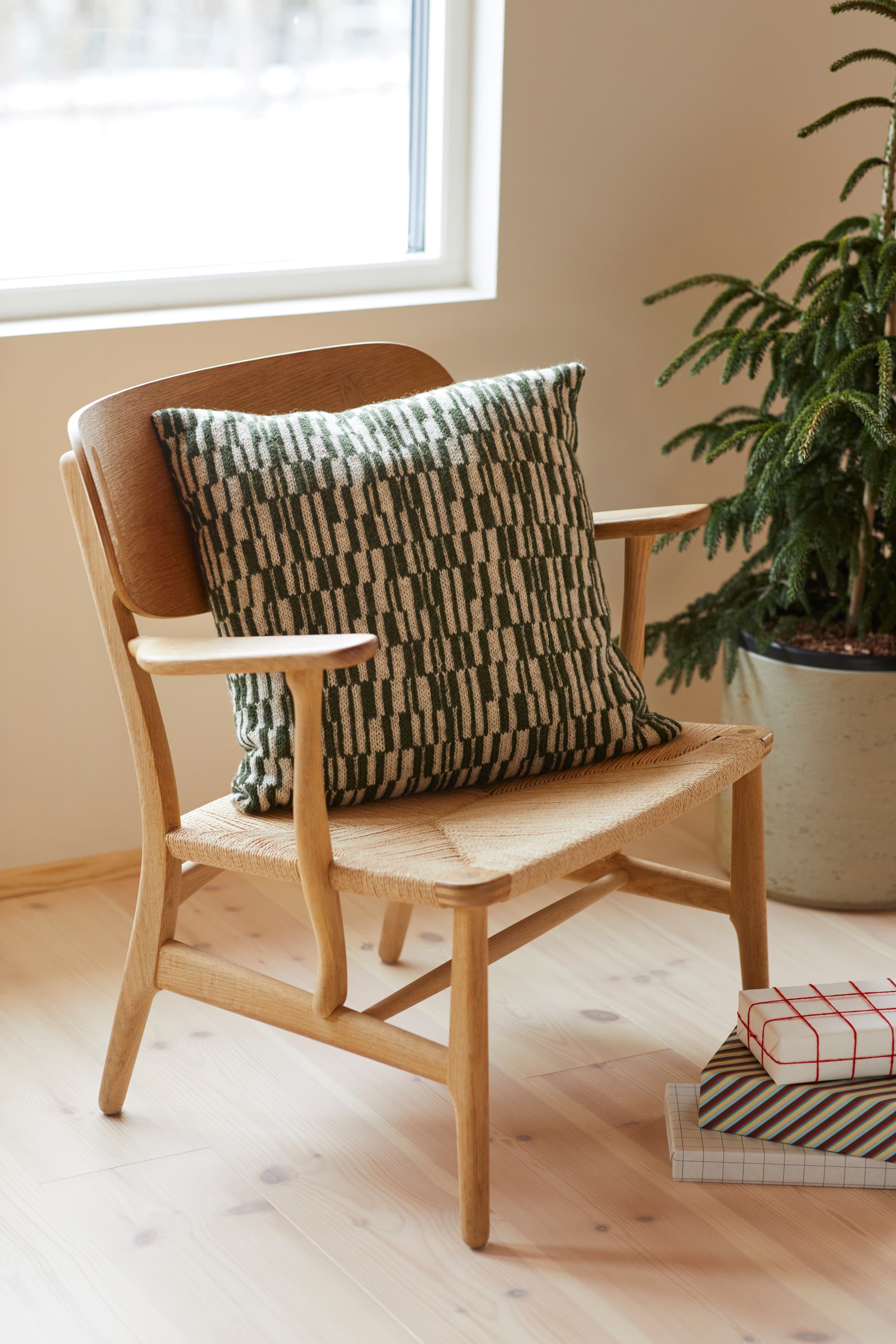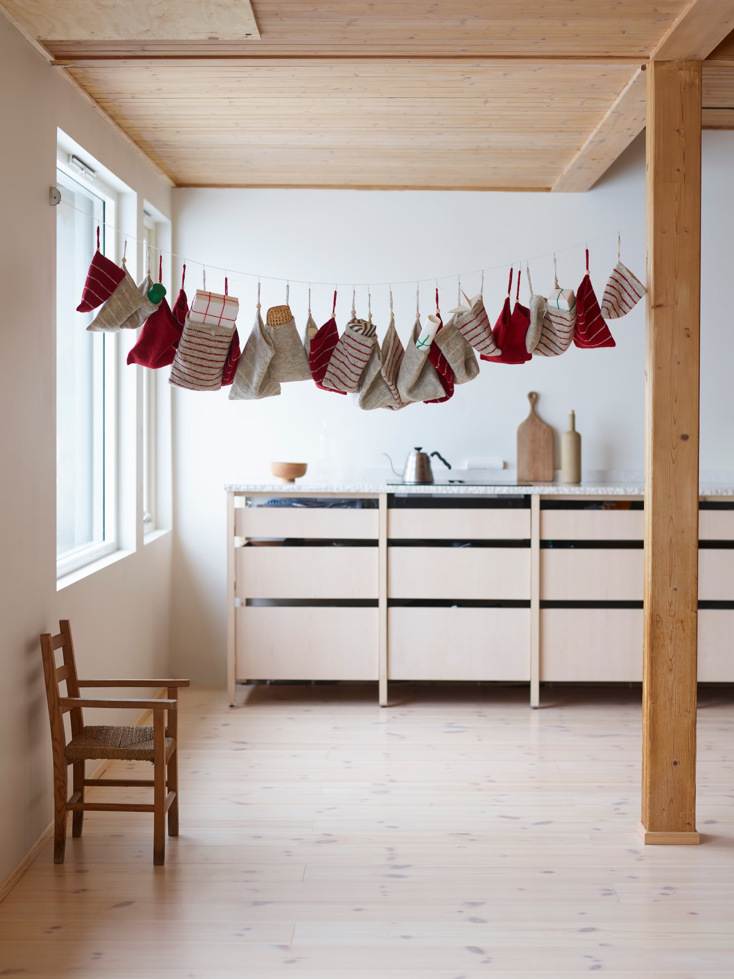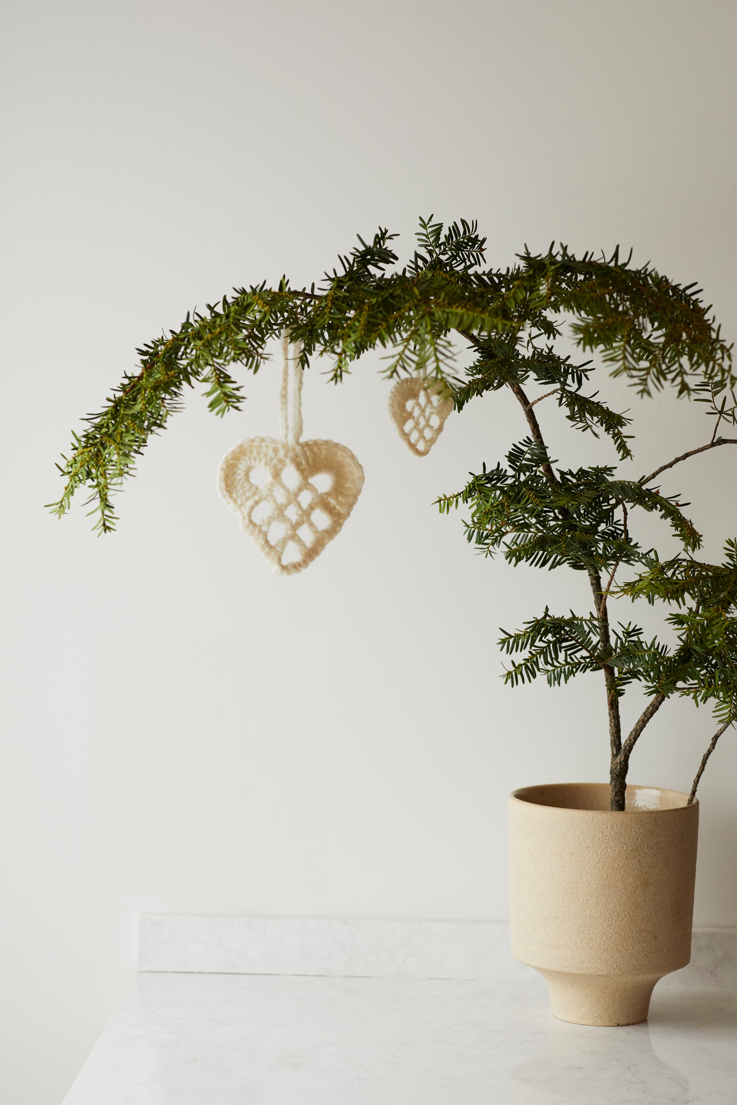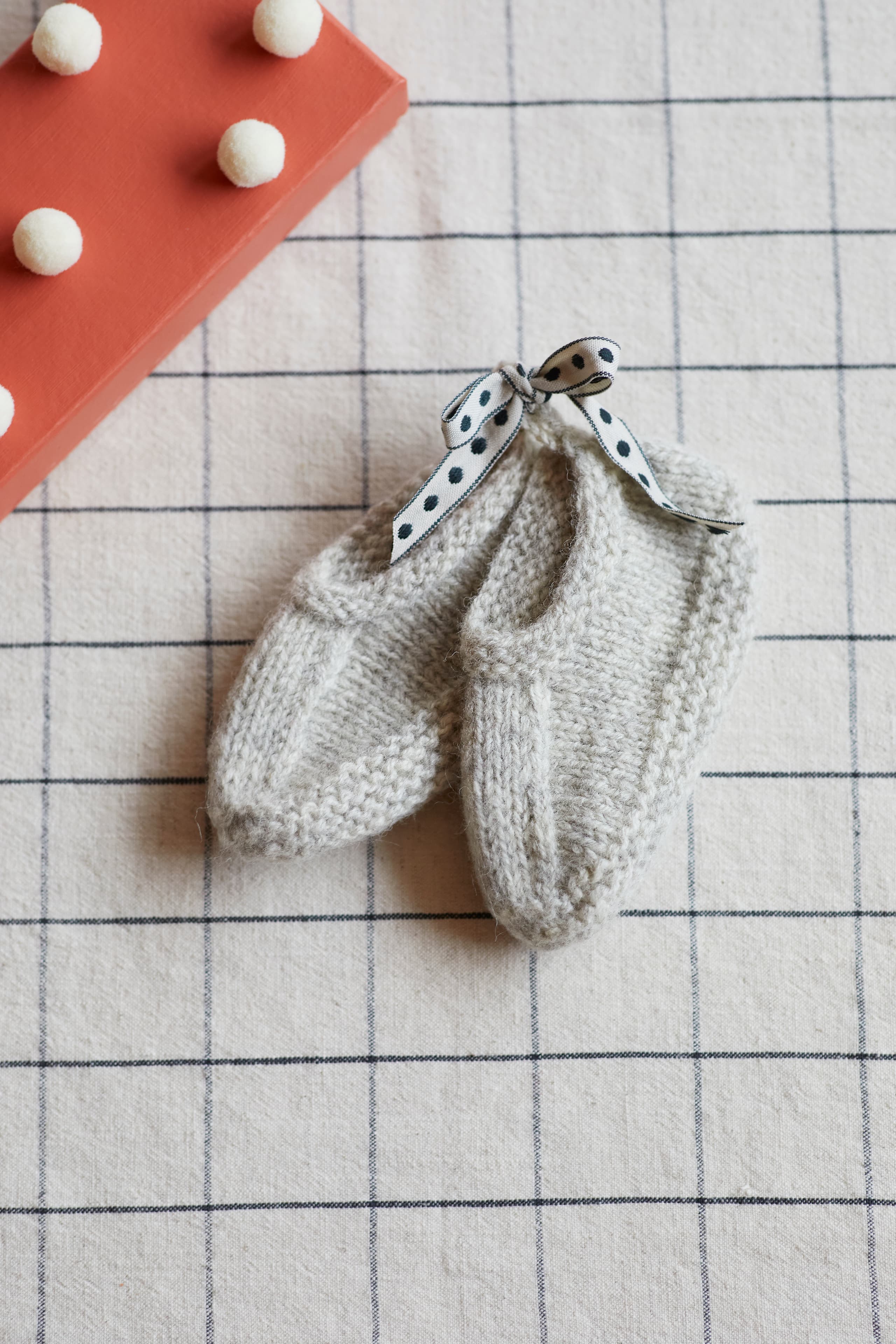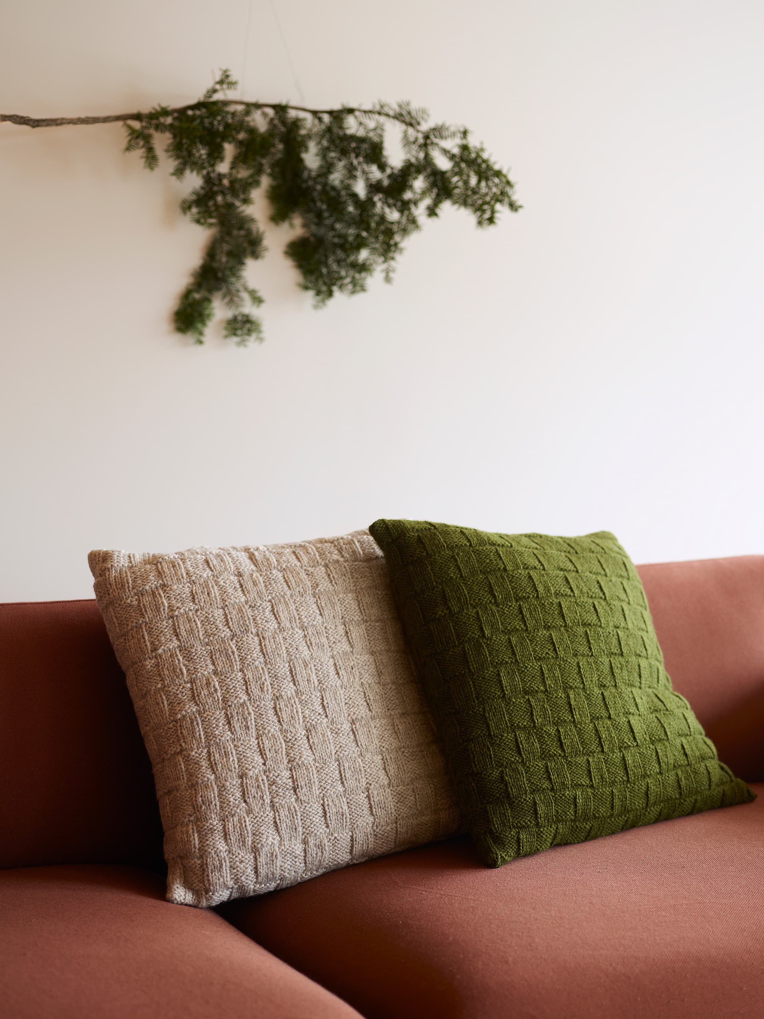 Eplene er glattstrikket og strikkes fra bunnen og opp med en tråd av hver av Lamull og Metallic sammen. Det fylles med ullflor før de siste m snurpes sammen i toppen. I toppen hekles en hempe av luftmasker. Blader strikkes til slutt av Finull, og festes øverst på eplet ved hempen.