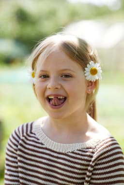 Flora stripegenser er en enkel glattstrikket genser med smale striper, rund hals og klassisk passform. Genseren strikkes ovenfra og ned med raglanøkninger og ribbestrikkede kanter. Først strikkes halskanten, og videre strikkes bærestykket. Halsringningen formes ved å strikke vendepinner og det økes samtidig til raglan. Etter raglanøkningene, deles arbeidet til ermer og bol, og hver del strikkes videre hver for seg og avsluttes med ribbekanter.