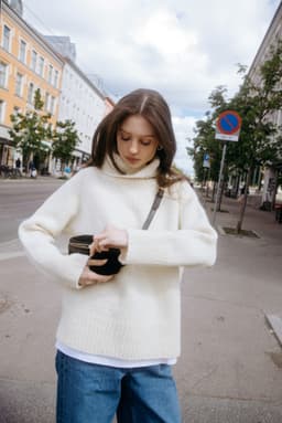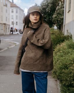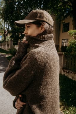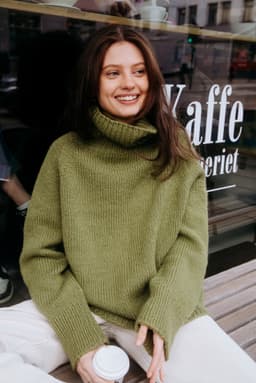 Heia raglangenser is an oversized and soft autumn sweater made from 100% Norwegian wool. It is knitted in Vams, a thick and airy yarn, making this a perfect project for beginners. A modern basic sweater with a high neckline and a fit that suits most. You can choose to fold down the collar, or let it keep you really warm on cold days.