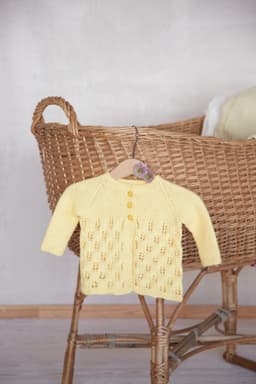 Denne søte jakken med hullmønster er strikket i bomullsgarnet Pandora. Alternativt kan man bruke Inca eller Panda Baby.