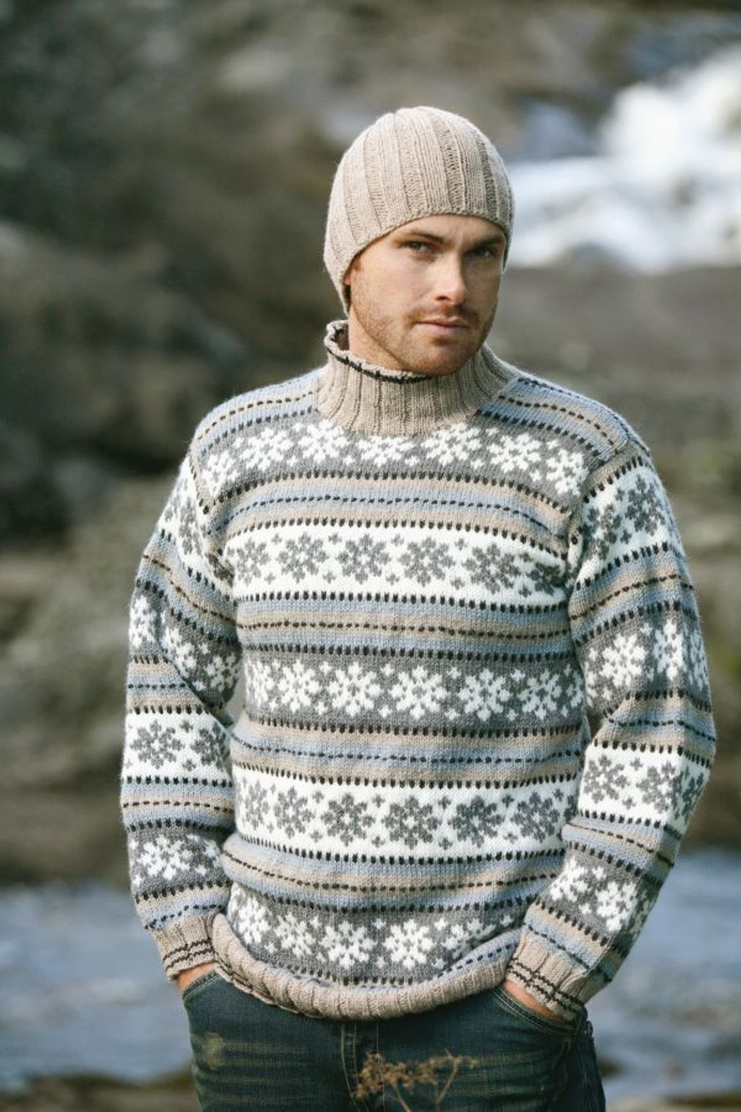 Genser med mønster & ensfarget lue