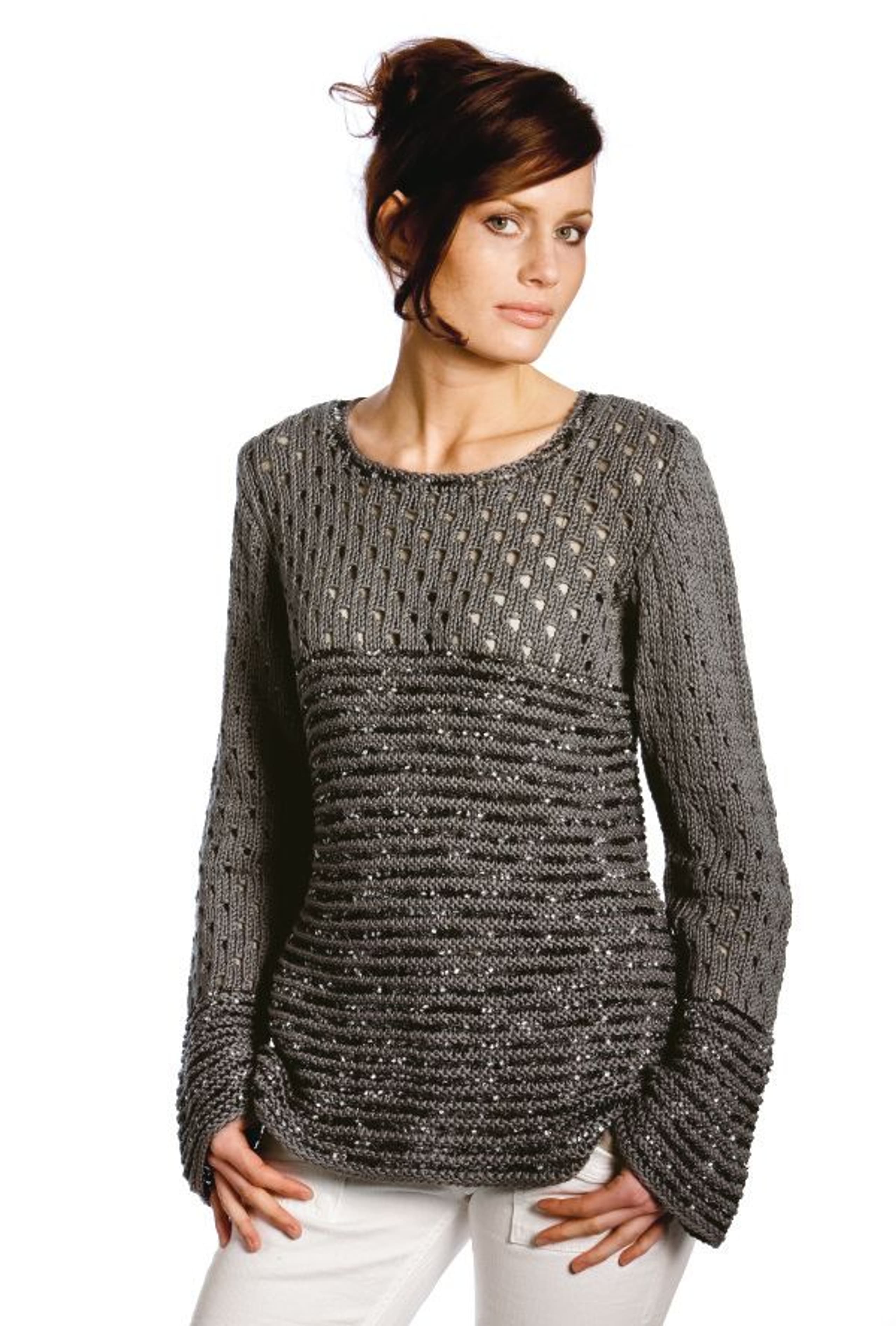 Genser med riller og hullmønster