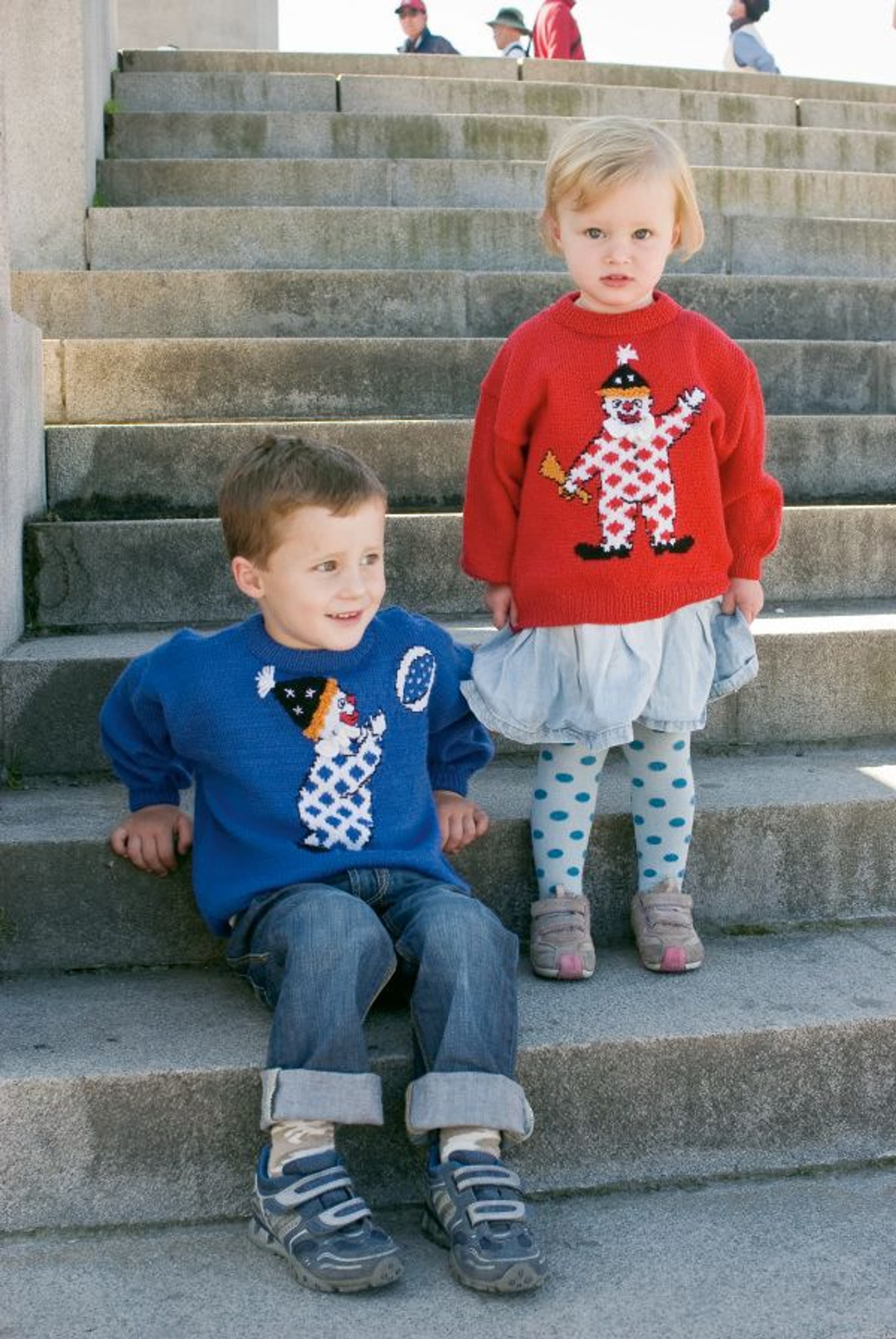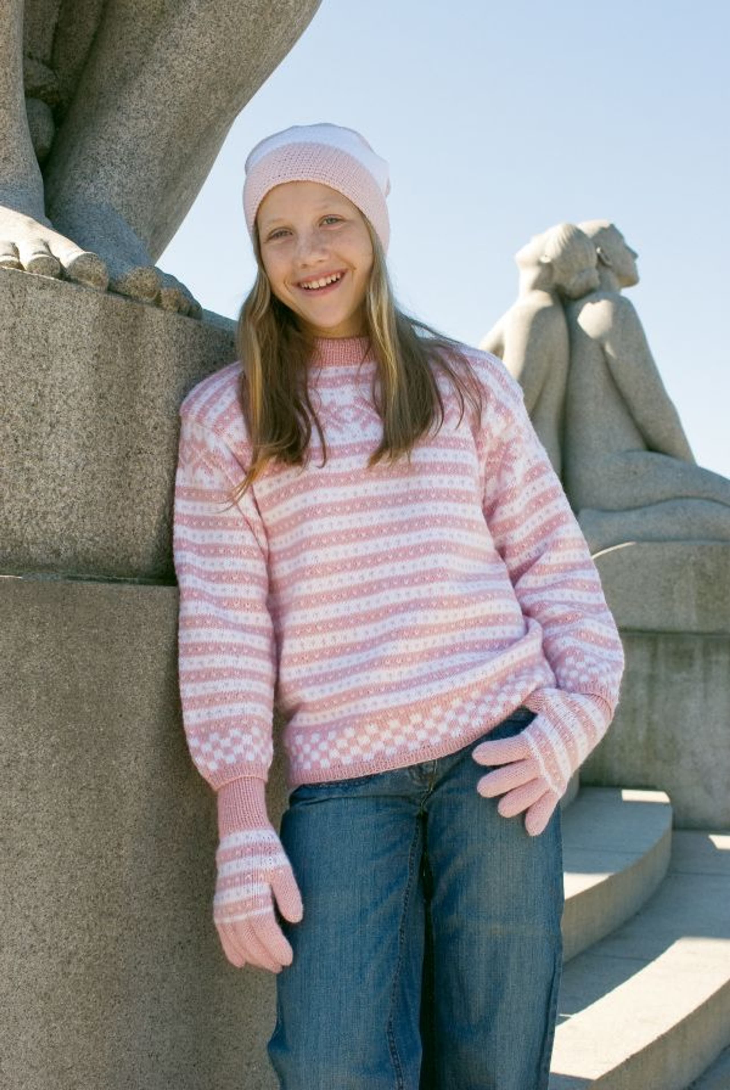 Rettstrikkede jakker, gensere, vest, luer og skjerf.