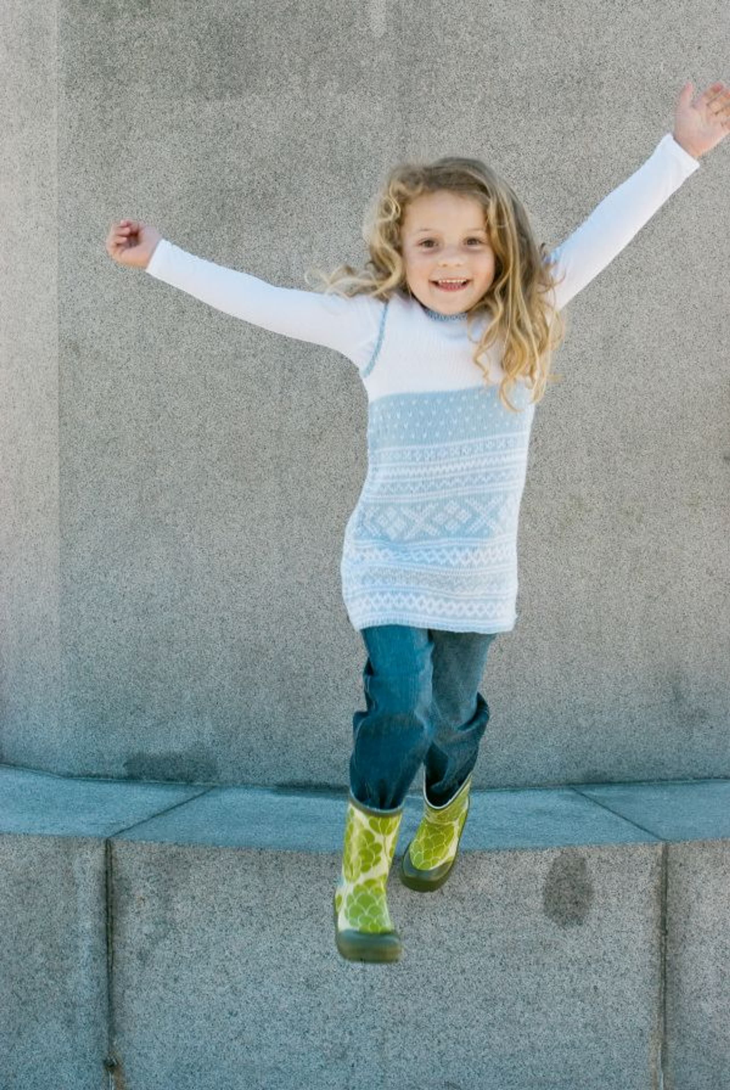 Tunika med kaniner, bukse, votter, ørevarmere og pyntesokker