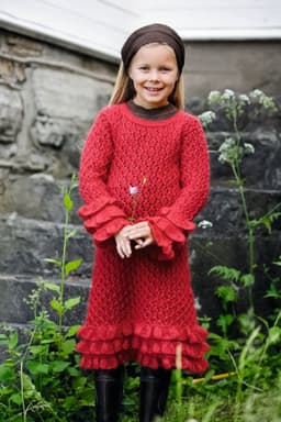 Lue med fletter og skjerf i vrbordstrikk