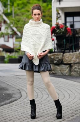Pt106-1659 - Poncho med fletter og vr-bord-hals og løs hals med fletter - Mod A - Poncho: Puno