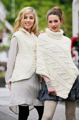 Pt106-1659 - Poncho med fletter og vr-bord-hals og løs hals med fletter - Mod A - Poncho: Vams Pt3