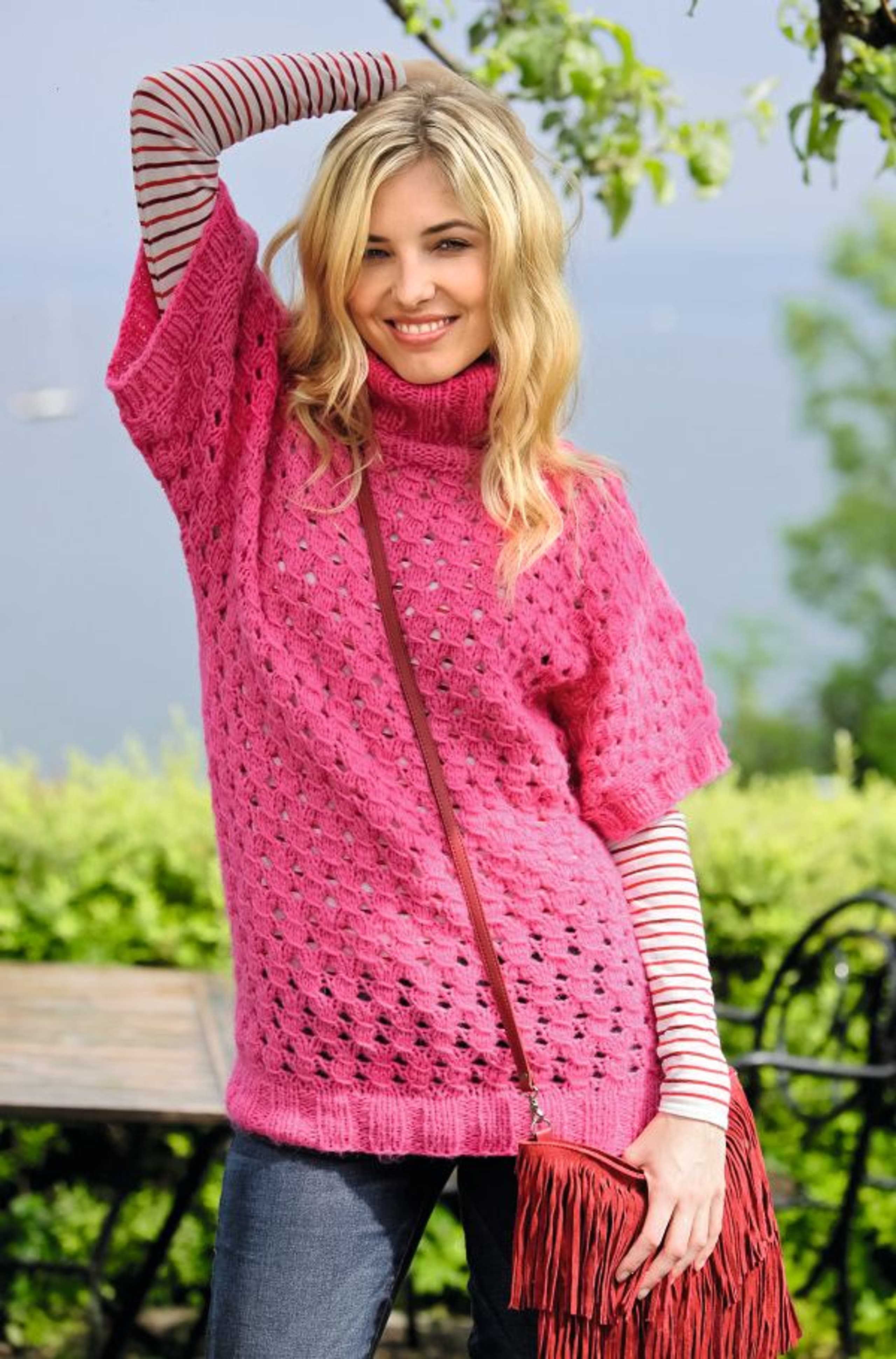 Jumper med høy hals og hullmønster