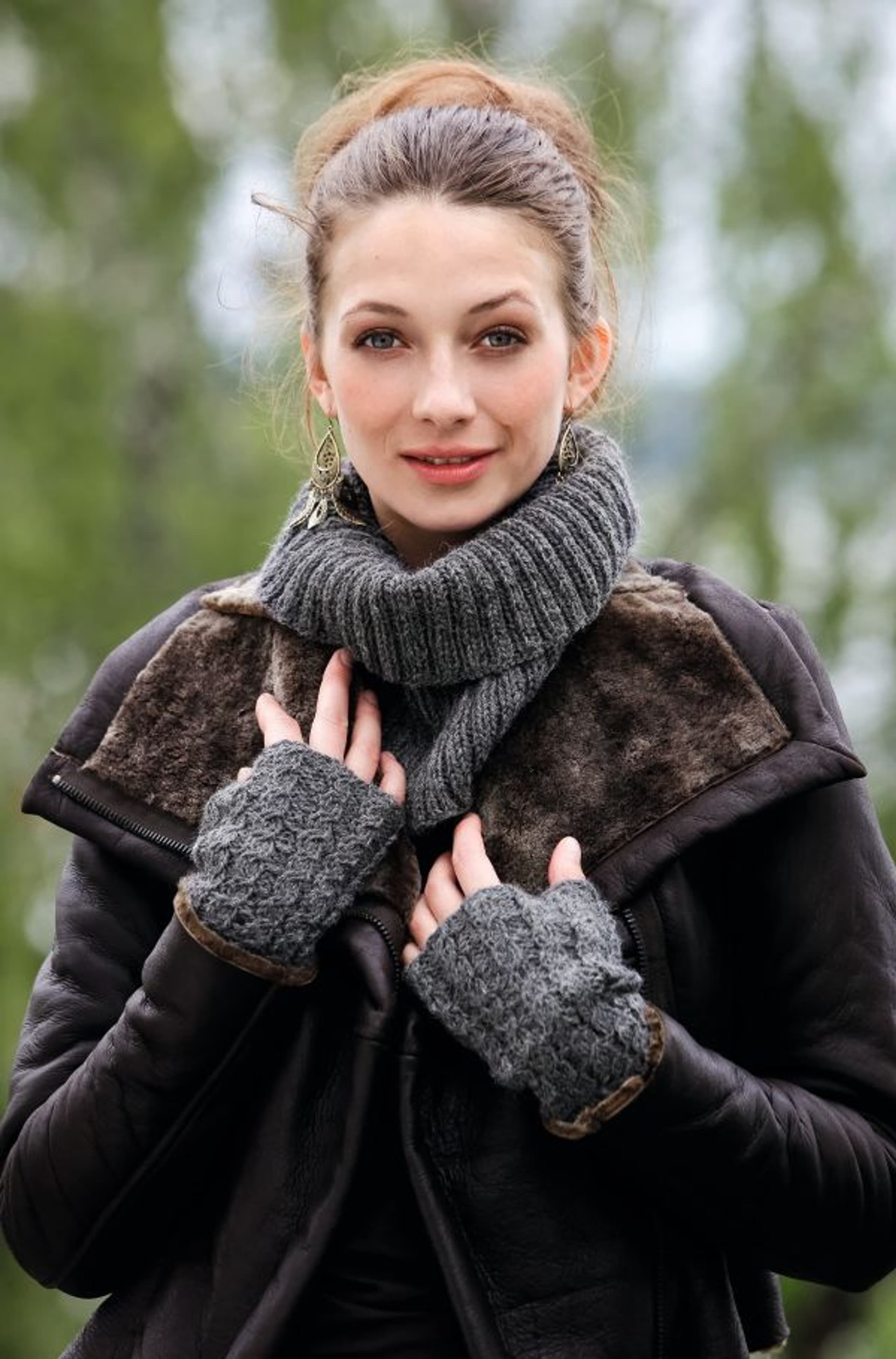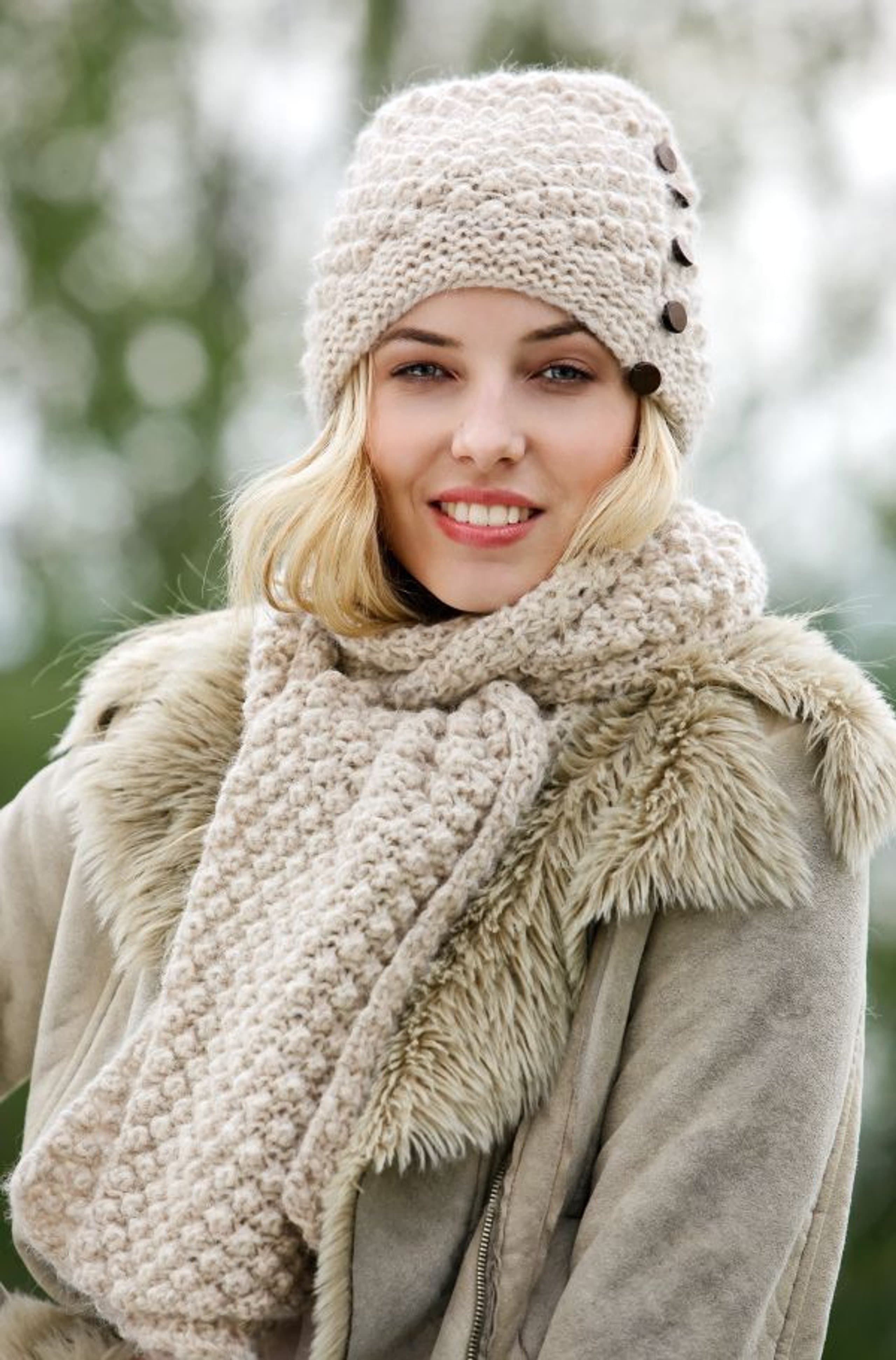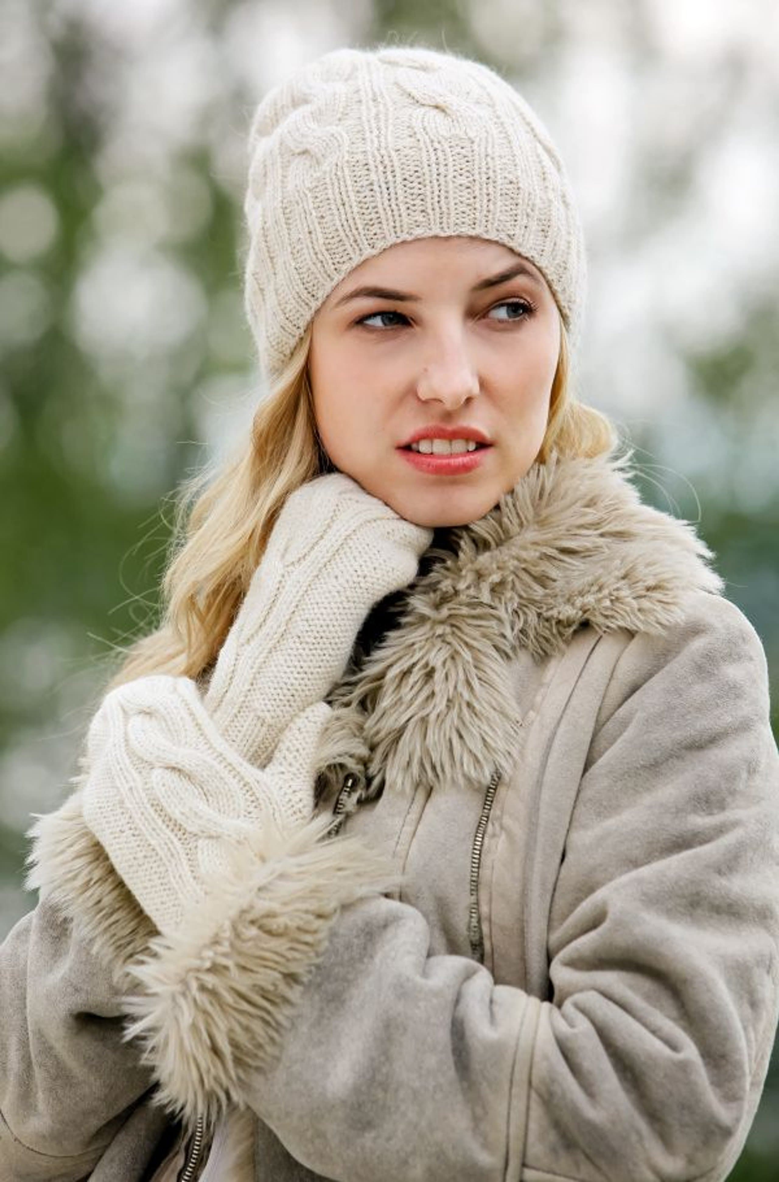Lue og votter med fletter