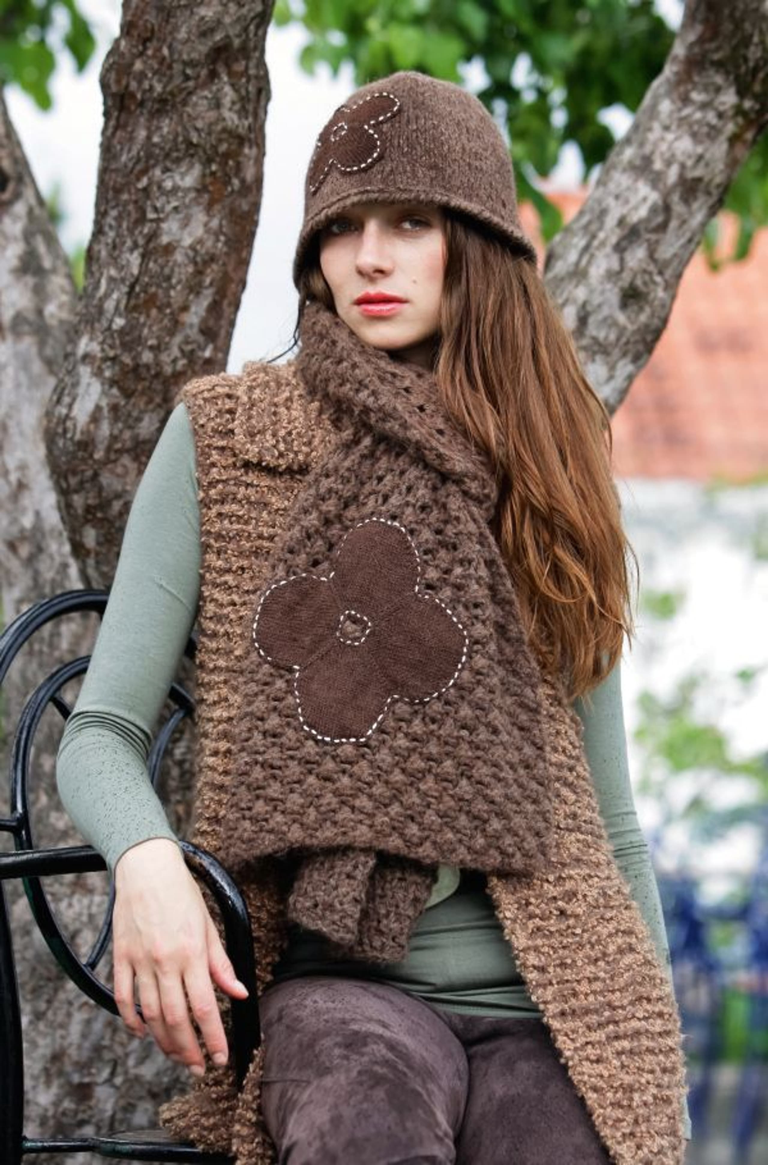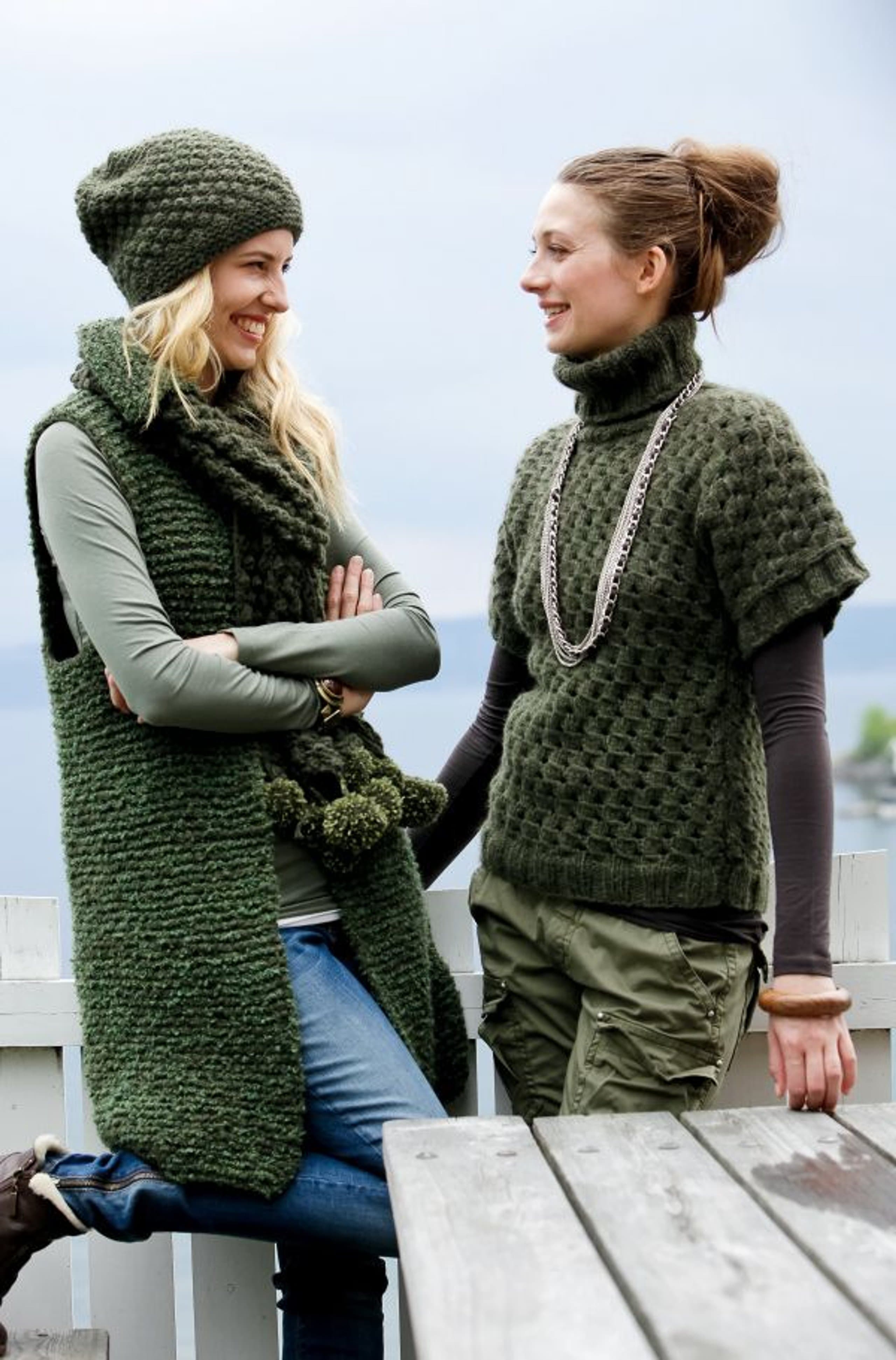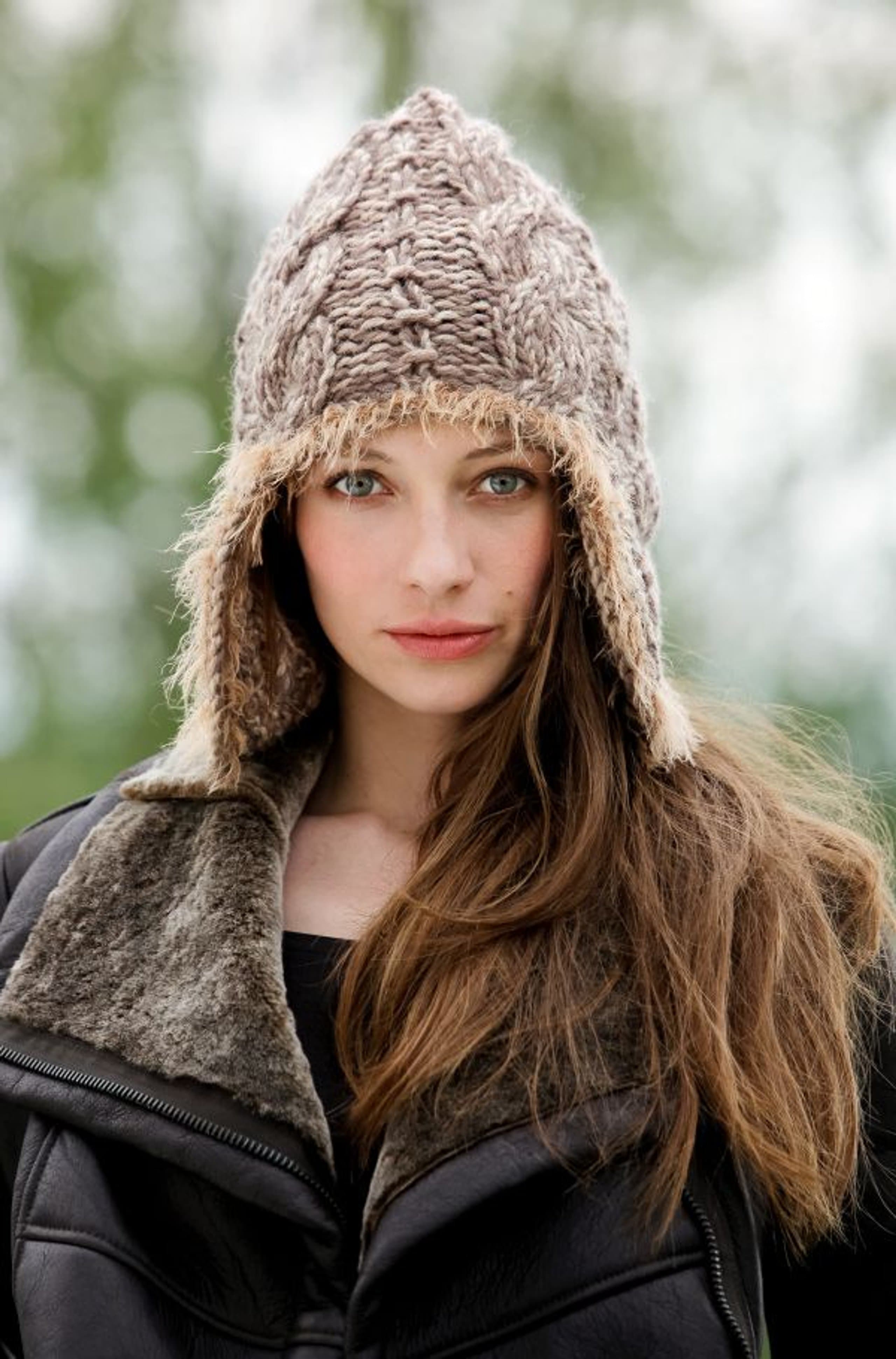 Lue og votter med fletter
