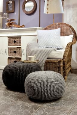 Pute med flettemønster og knapper