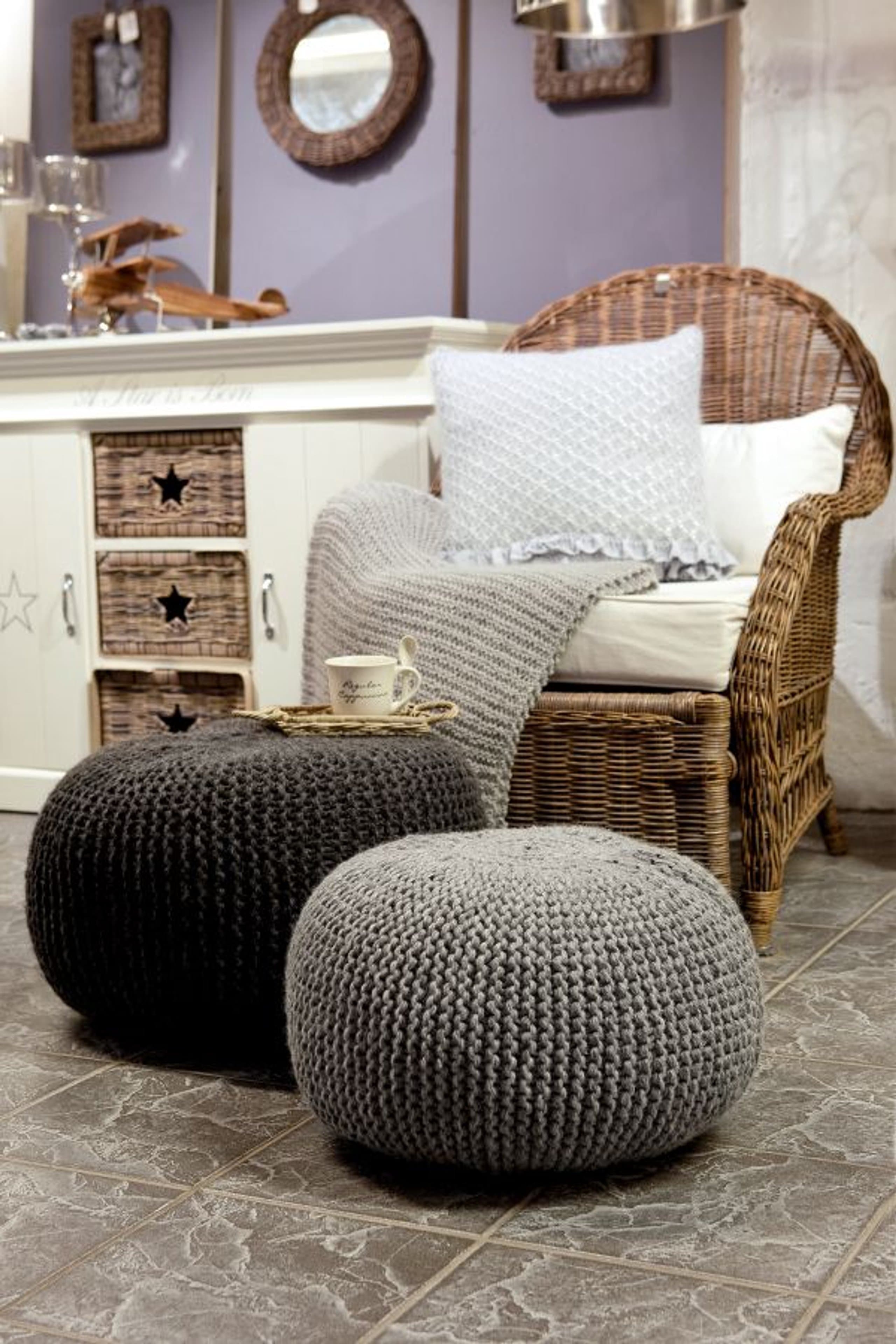 Strikket lampeskjerm og pute
