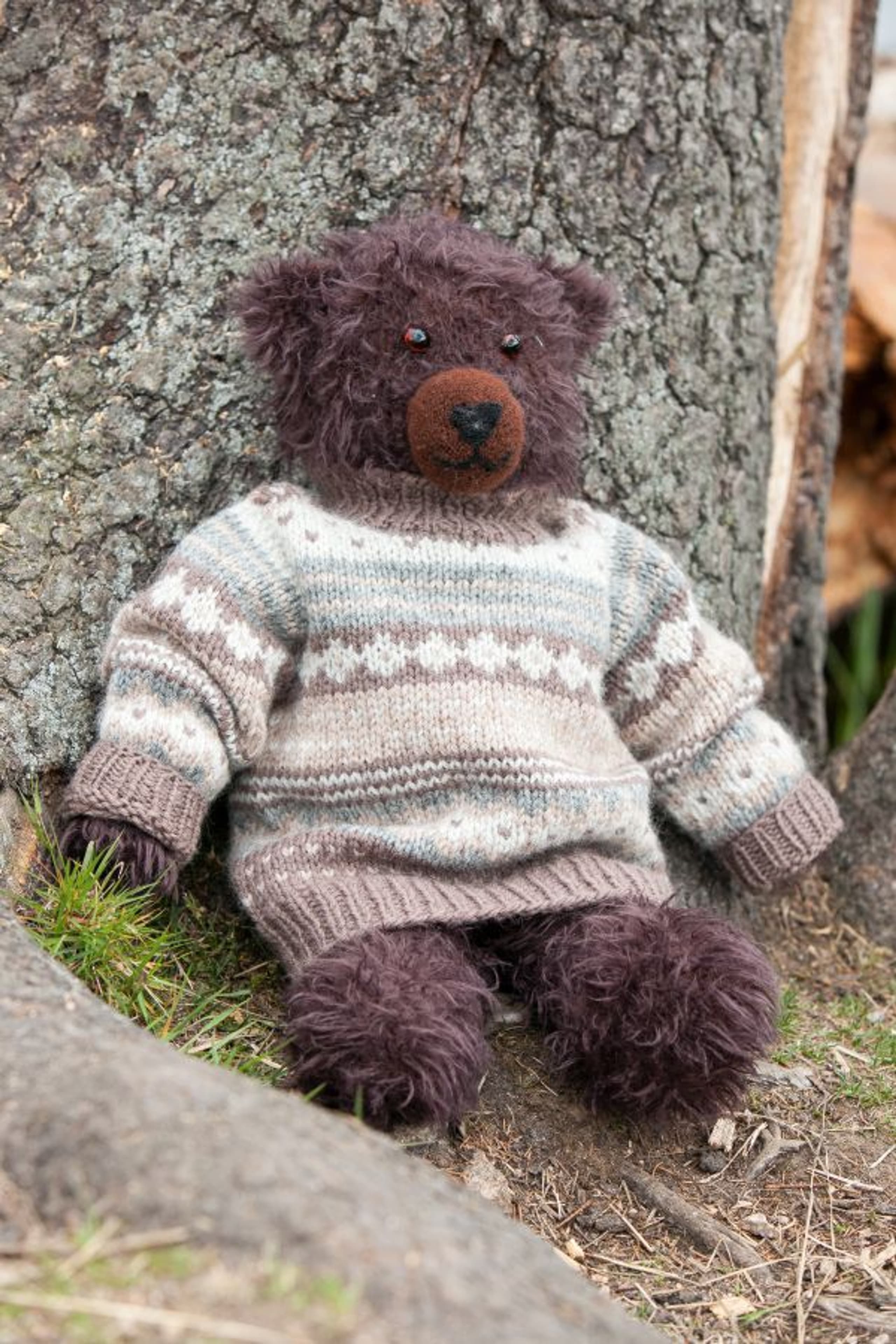 Strikket og tovet bamse med genser