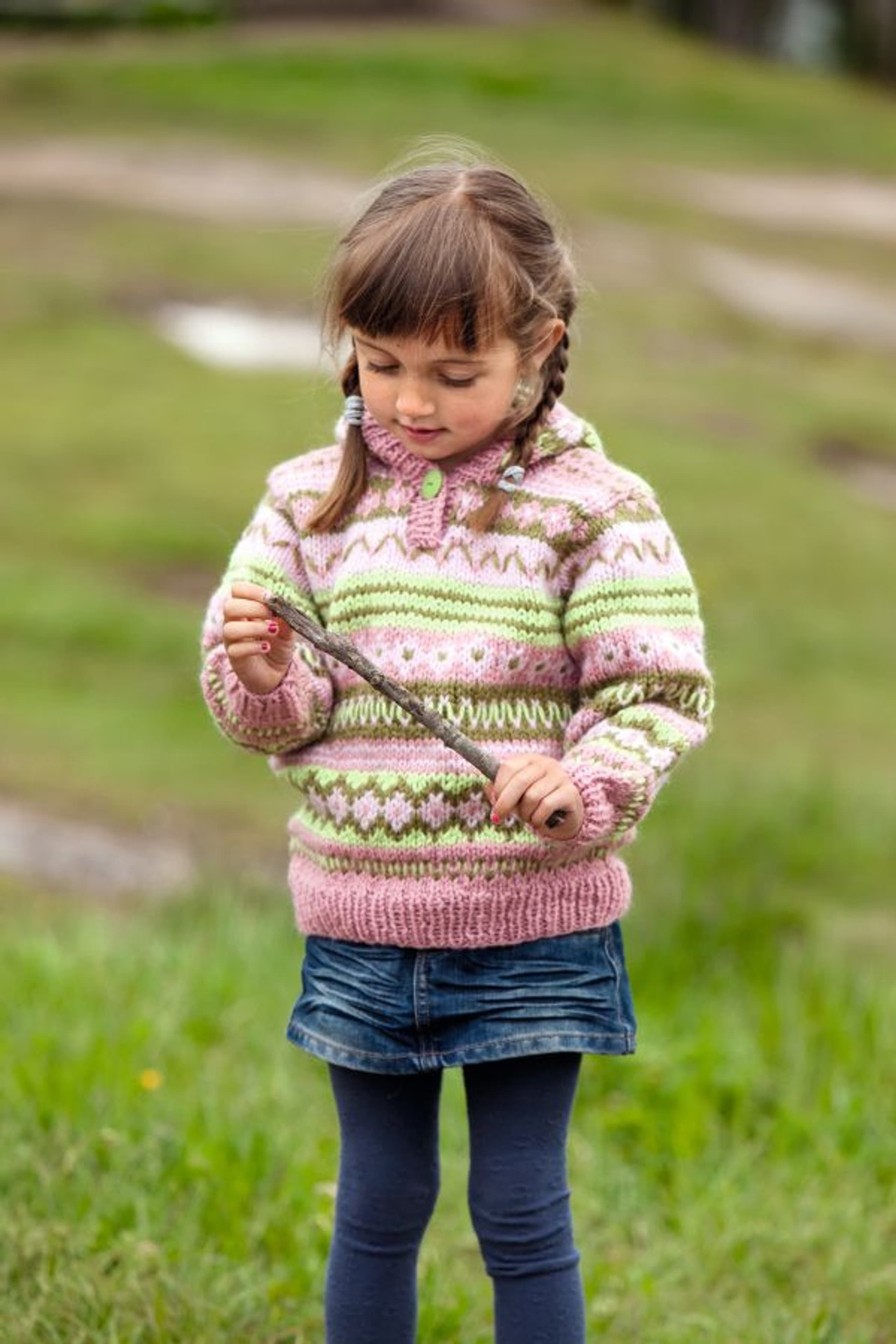 Genser med fletter og sjalskrage