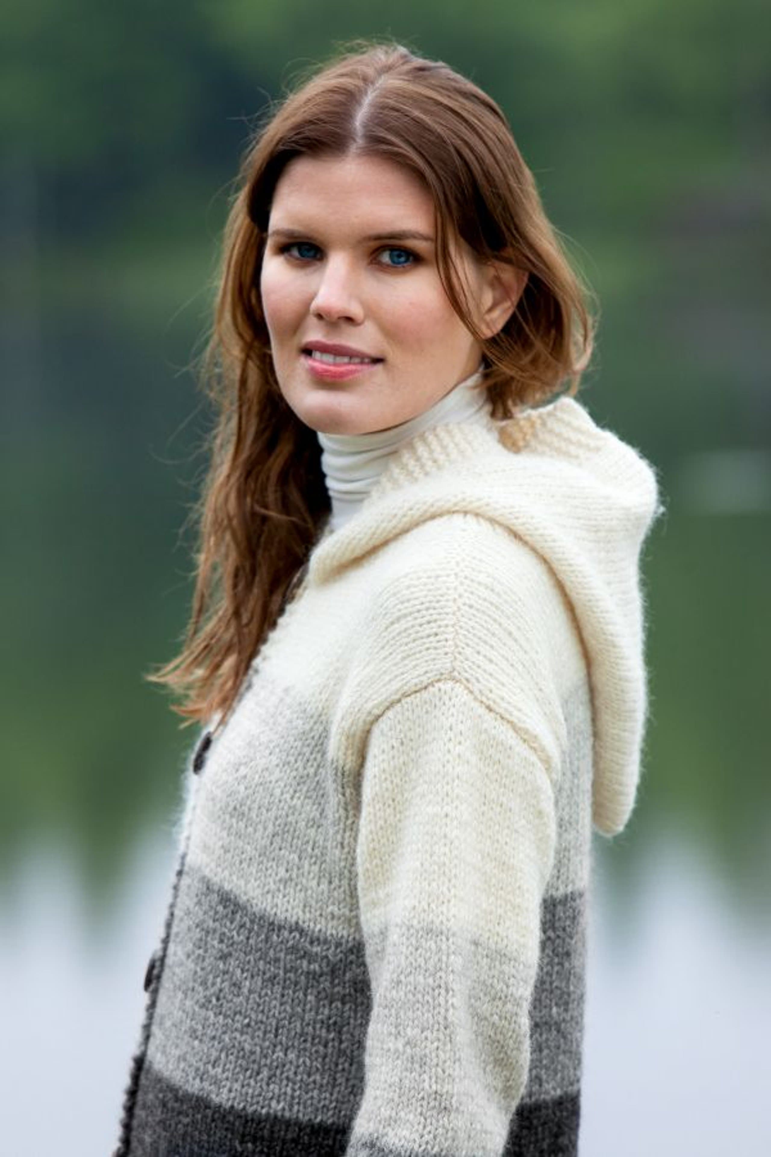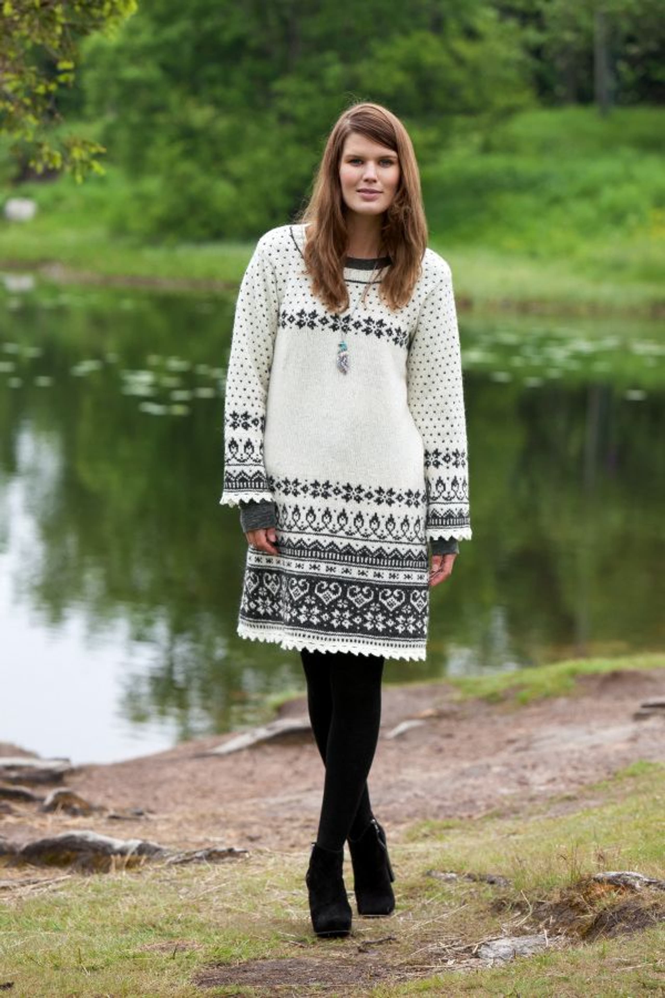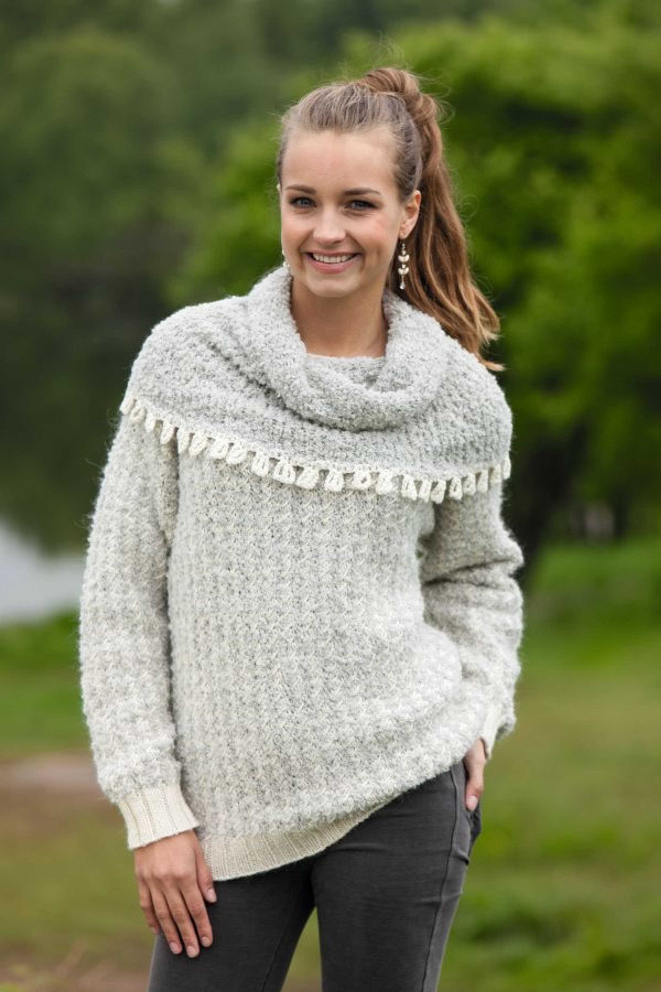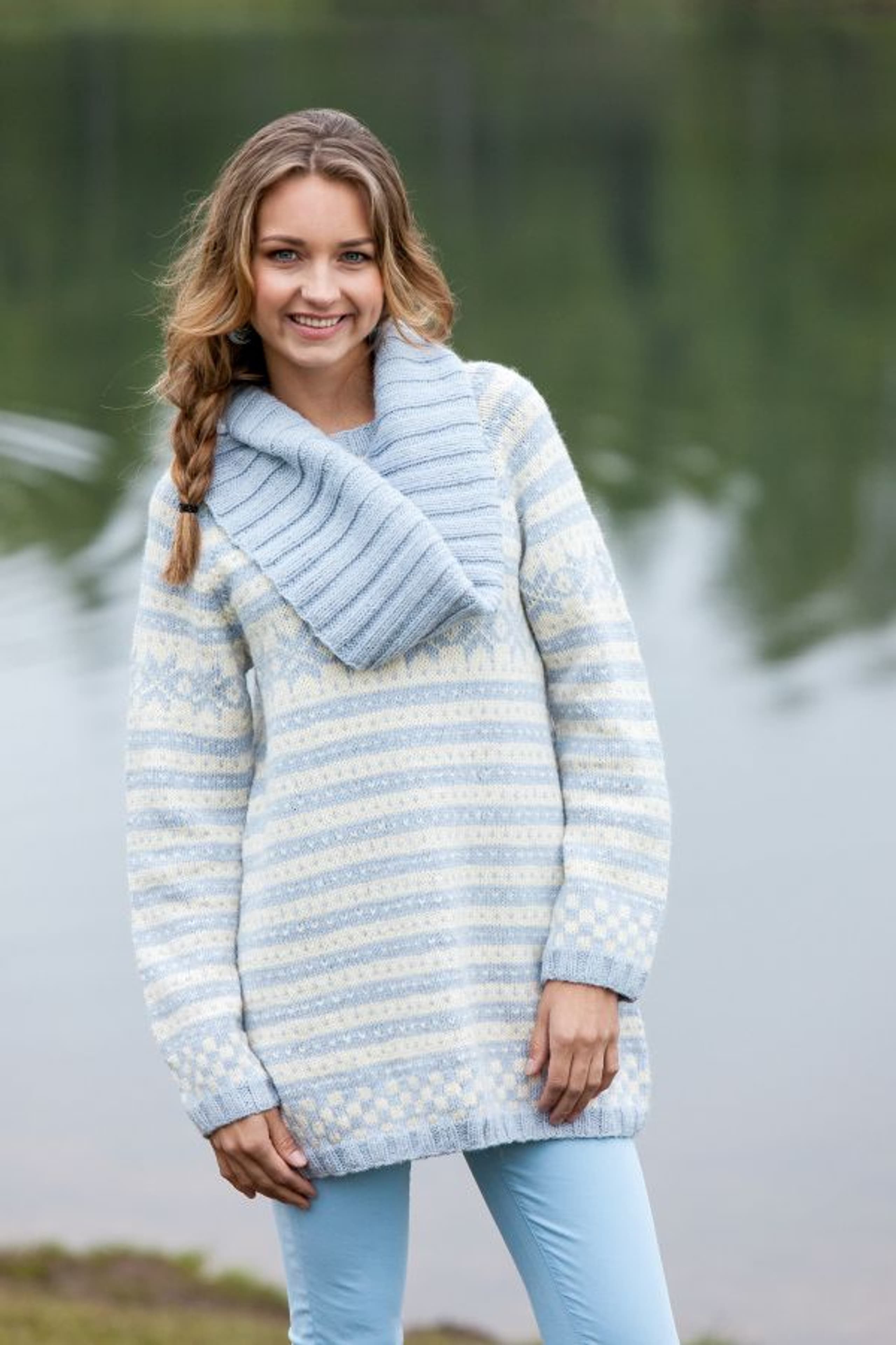 Genser med fletter og sjalskrage