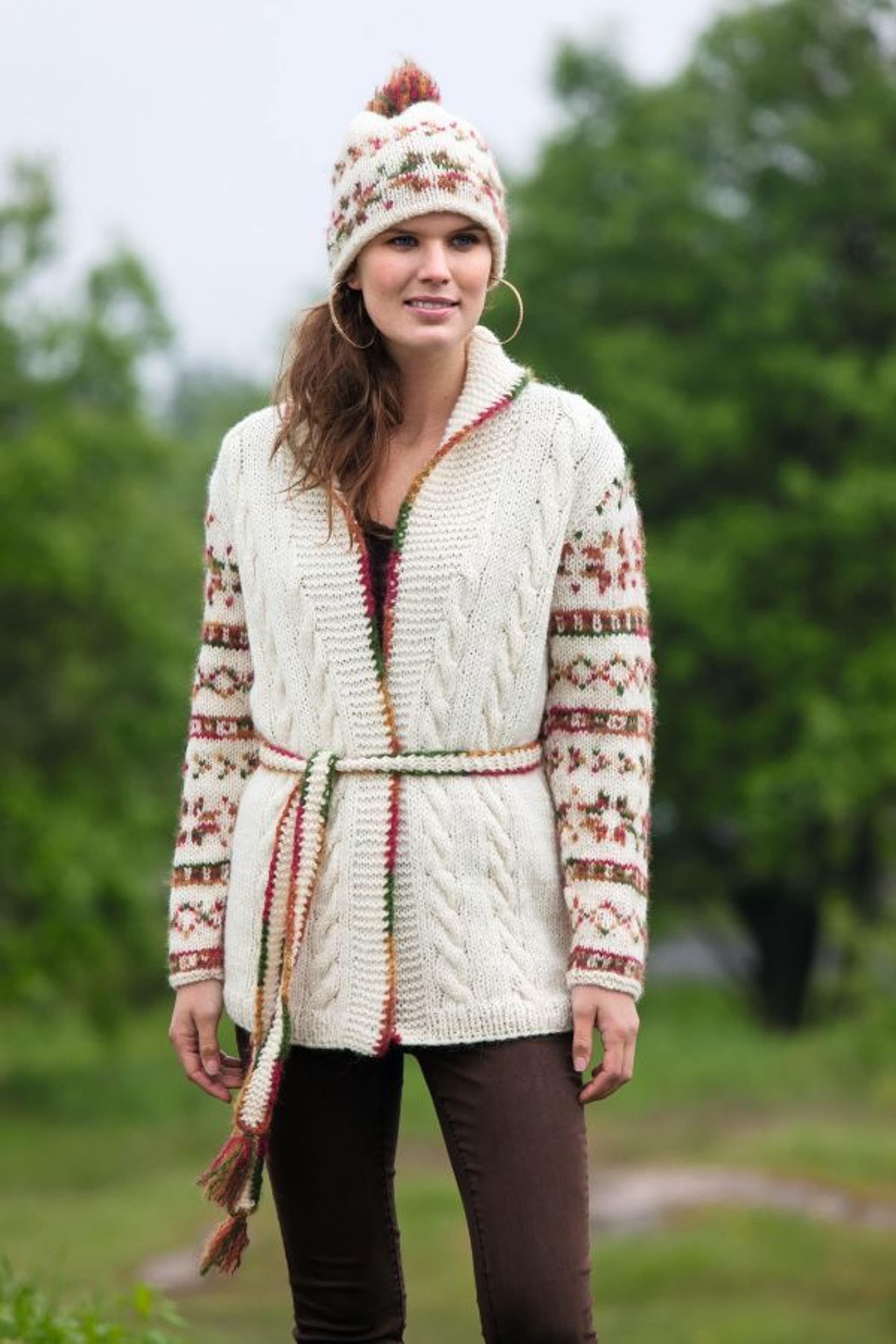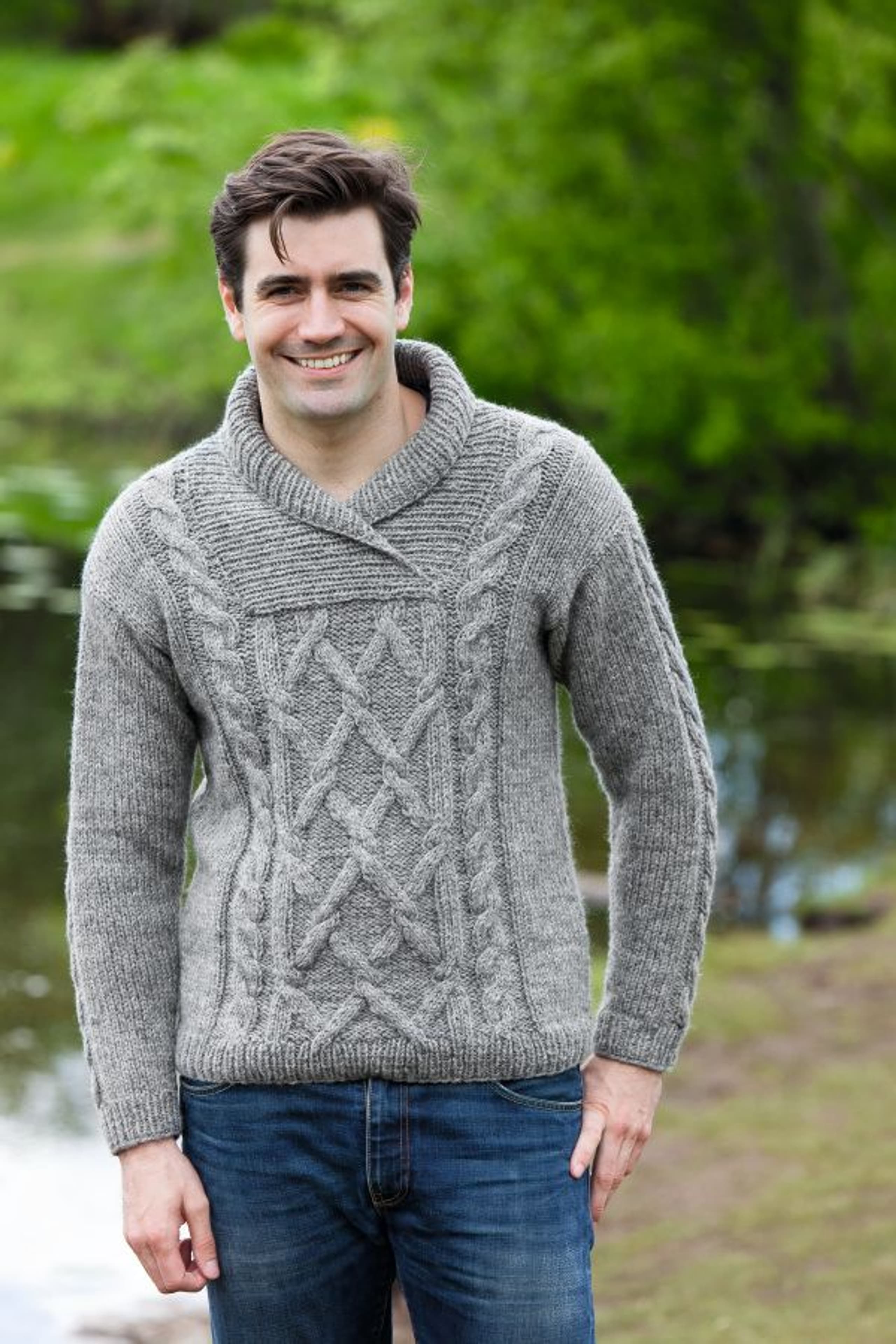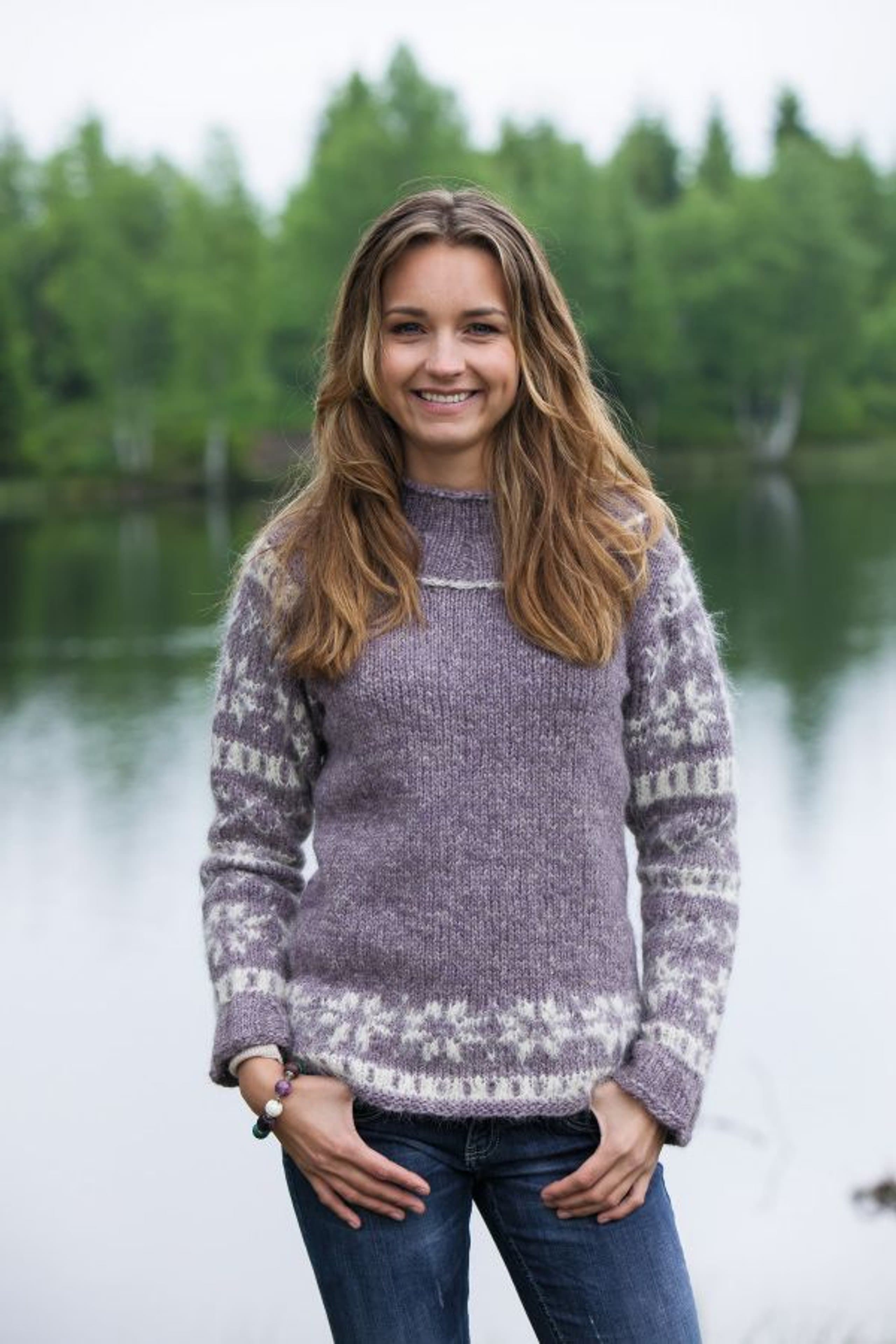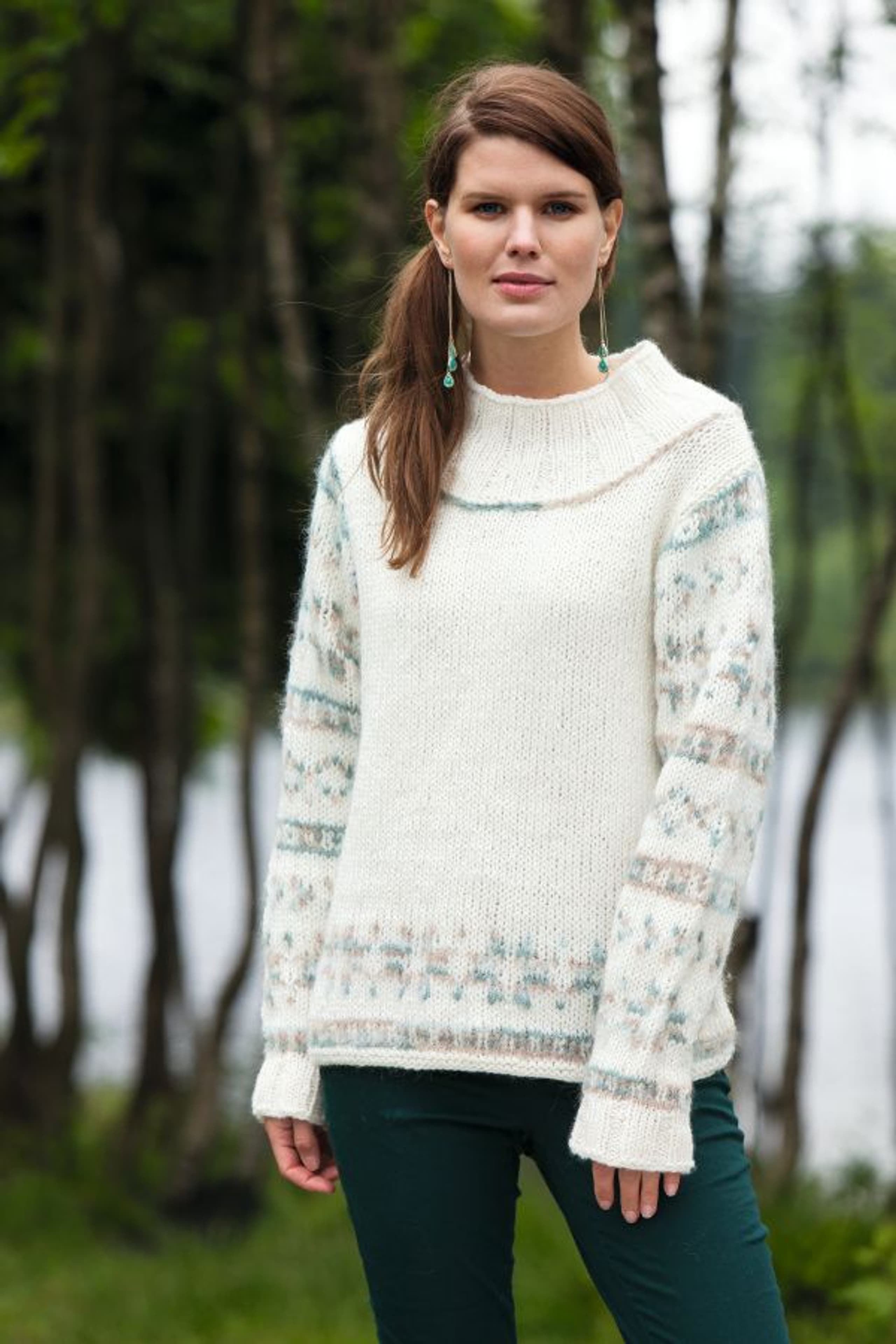 Genser med fletter og sjalskrage